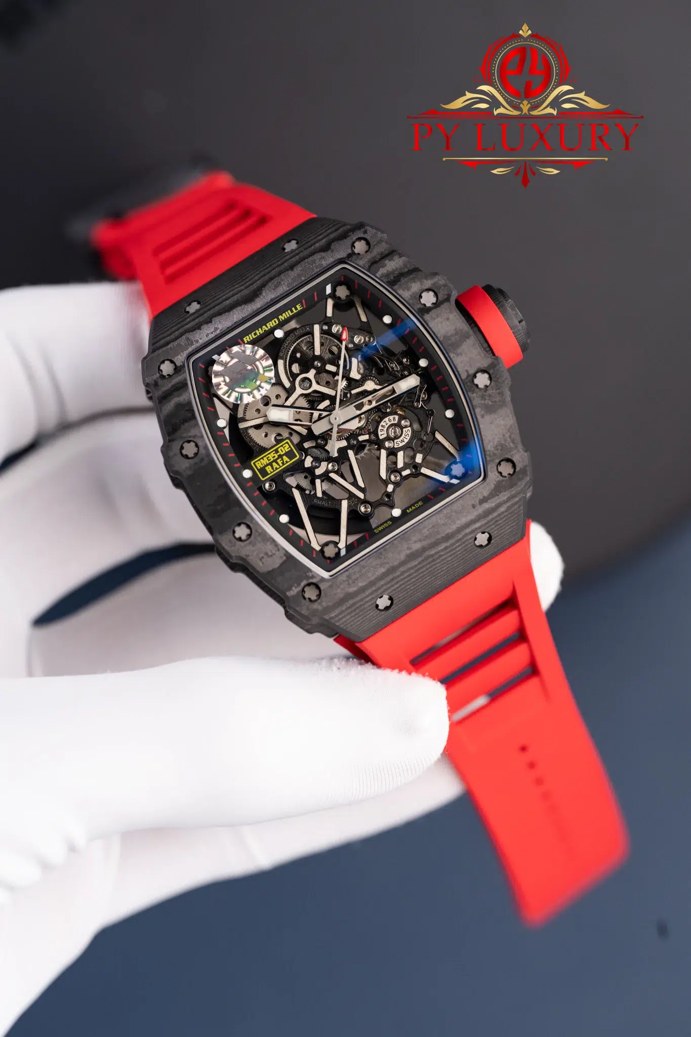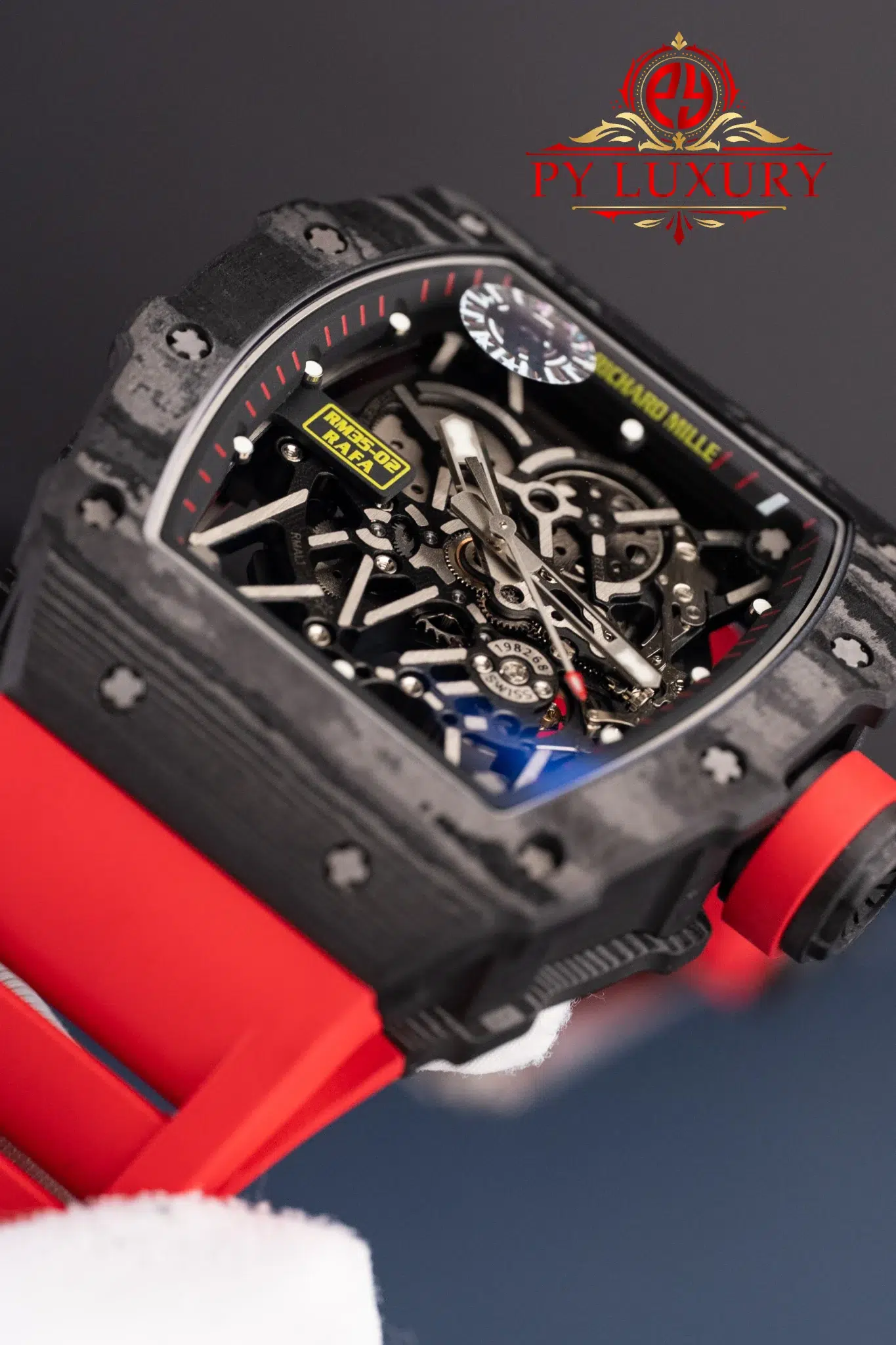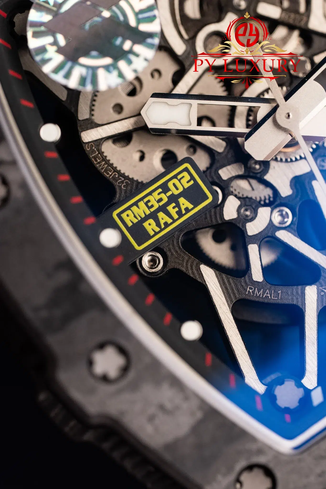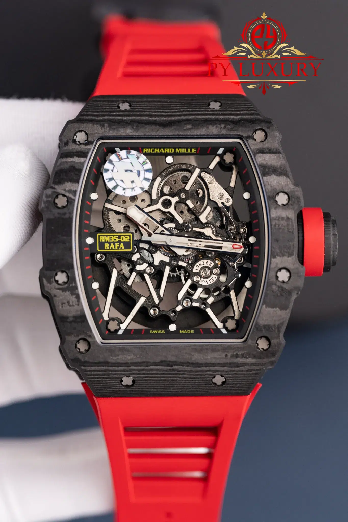 Đồng Hồ Richard Mille RM35-02 Rafael Nadal Vỏ Carbon TPT Đen Replica 1:1 V7 ZF 49.94mm x 44.5mm