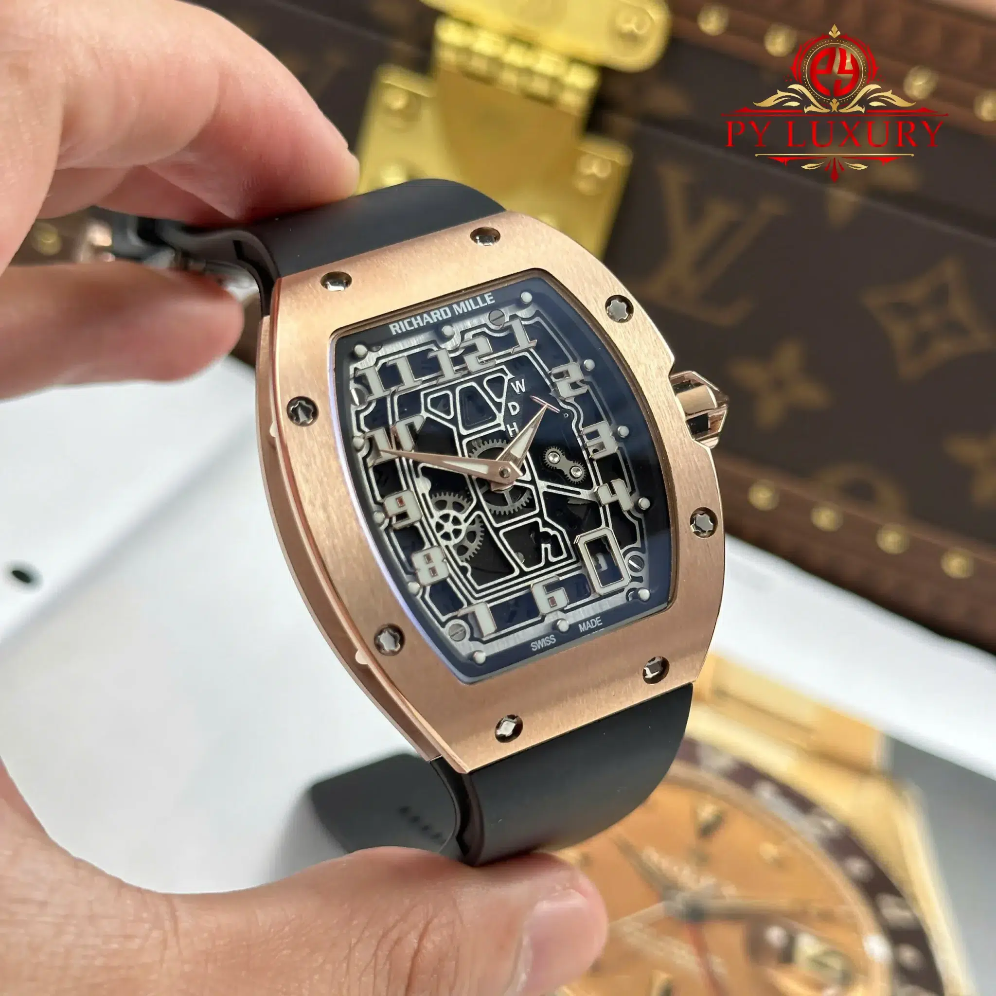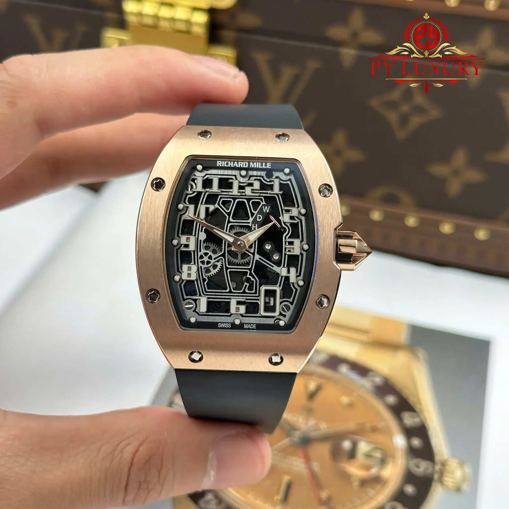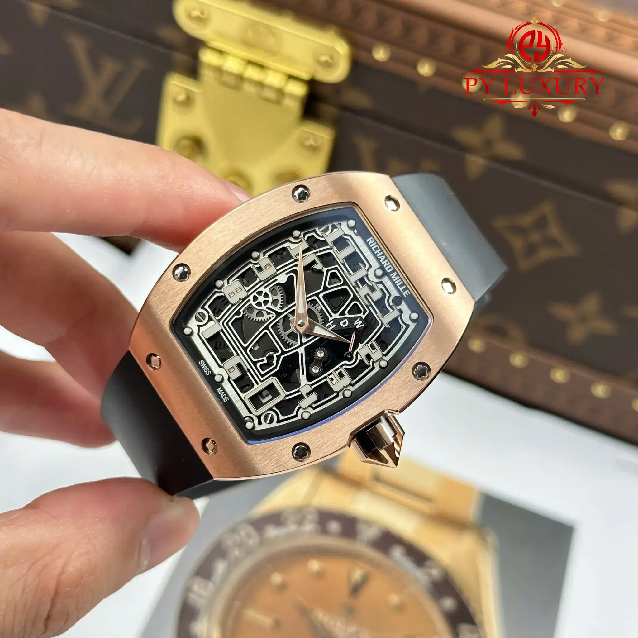 Đồng Hồ Richard Mille RM67-01 Extra-Flat Vàng Hồng Dây Cao Su Replica Cao Cấp 38.7mm x 47.5mm