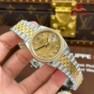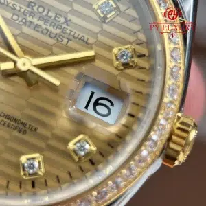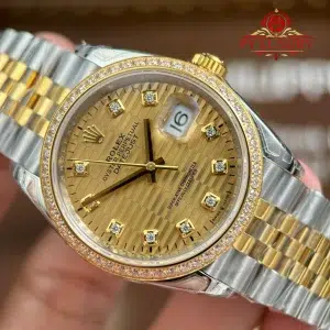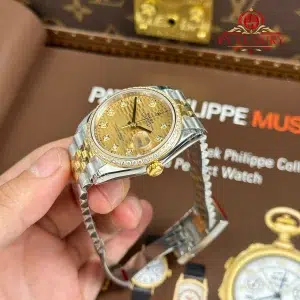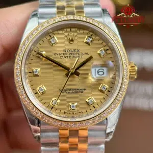 Đồng Hồ Rolex Datejust 126283RBR Demi Vàng Mặt Số Nếp Gấp Vàng Cọc Số Đá Viền Đá Dây Jubilee Replica 1:1 VSF 36mm