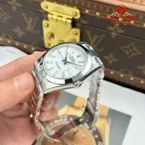 Đồng Hồ Rolex Datejust 126300 Mặt Trắng Cọc Dạ Quang Viền Trơn Dây Oyster Replica 1:1 VSF 41mm
