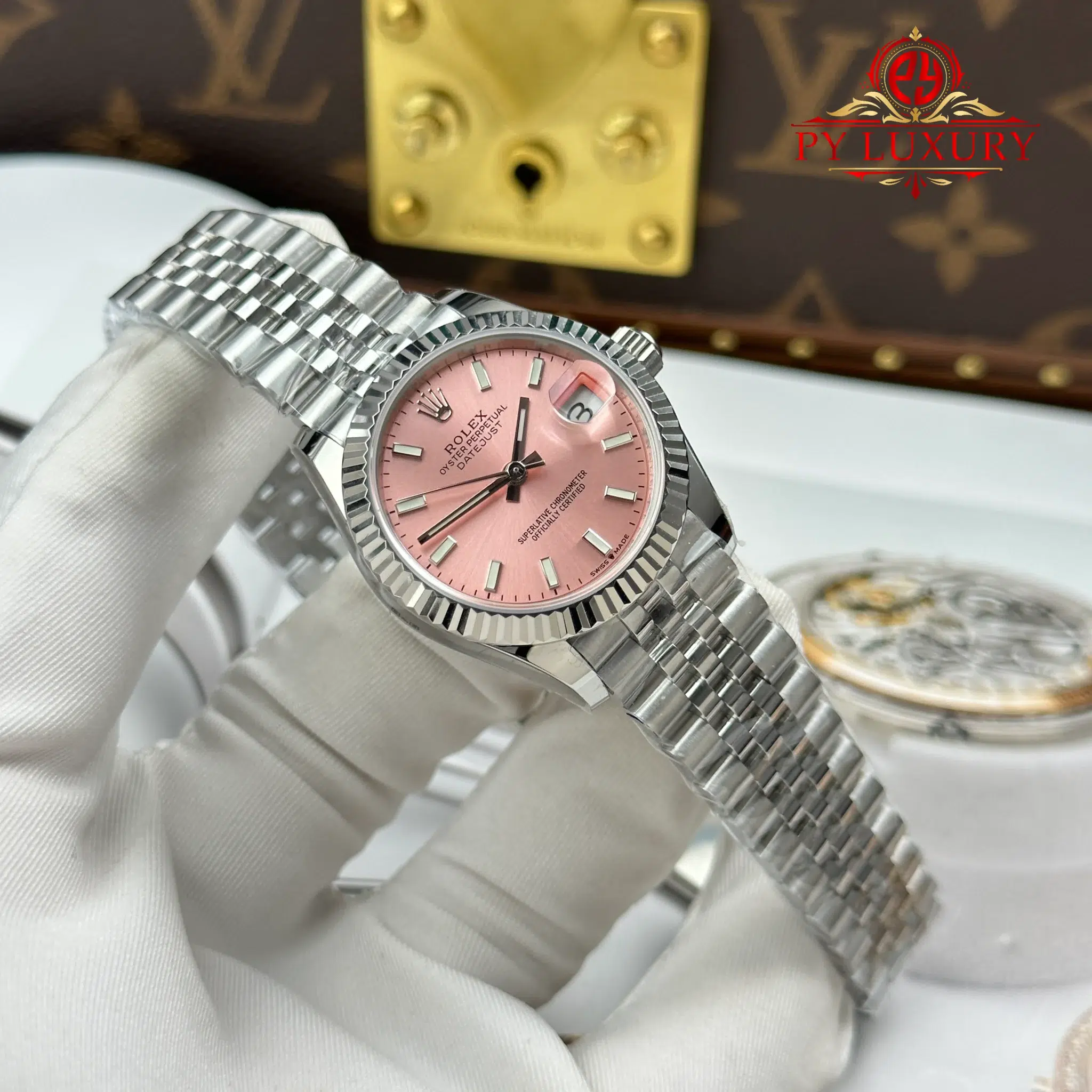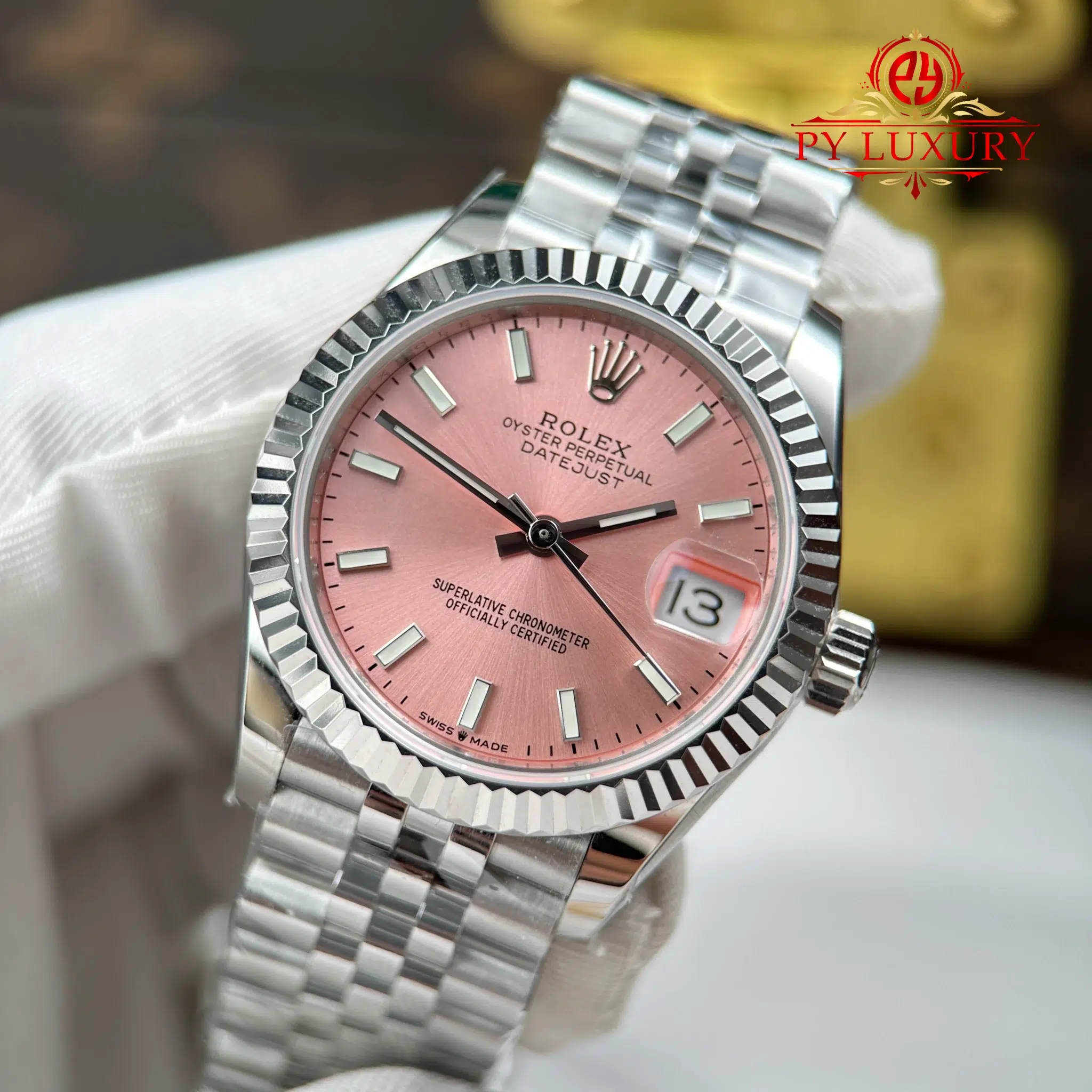 Đồng Hồ Rolex Datejust Nữ Mặt Số Hồng Cọc Số Dạ Quang Jubilee Replica 31mm