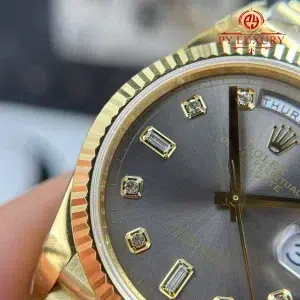 Đồng Hồ Rolex Day-Date 128238-0022 Vàng Gold Mặt Xám Đậm Cọc Số Đính Đá 158g Rep 1:1 QF 36mm