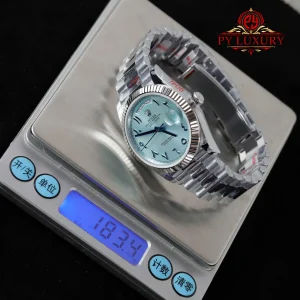 Py-Luxury giới thiệu Đồng Hồ Rolex Day-Date 228236 Mặt Số Xanh Băng Cọc Số Arabic Replica 1:1 40mm bản V3 của nhà máy GM sử dụng bộ máy ETA 2836: