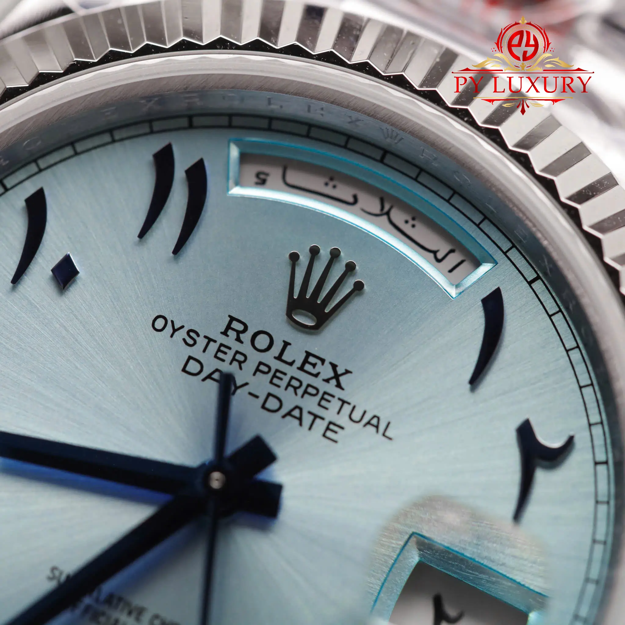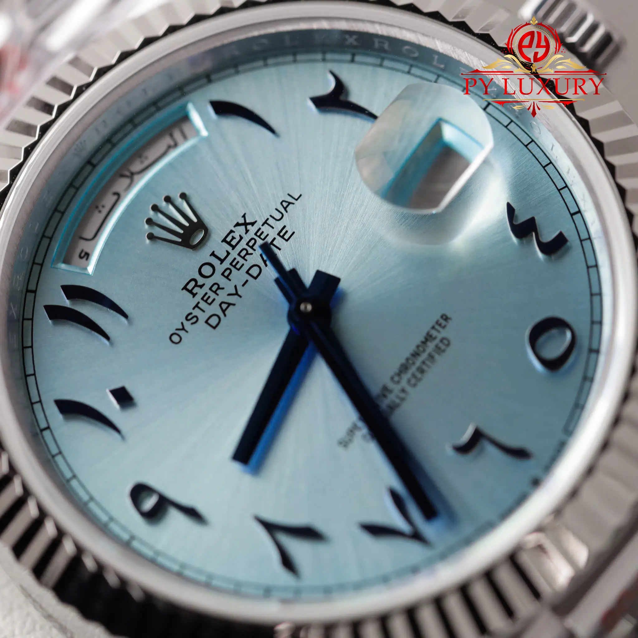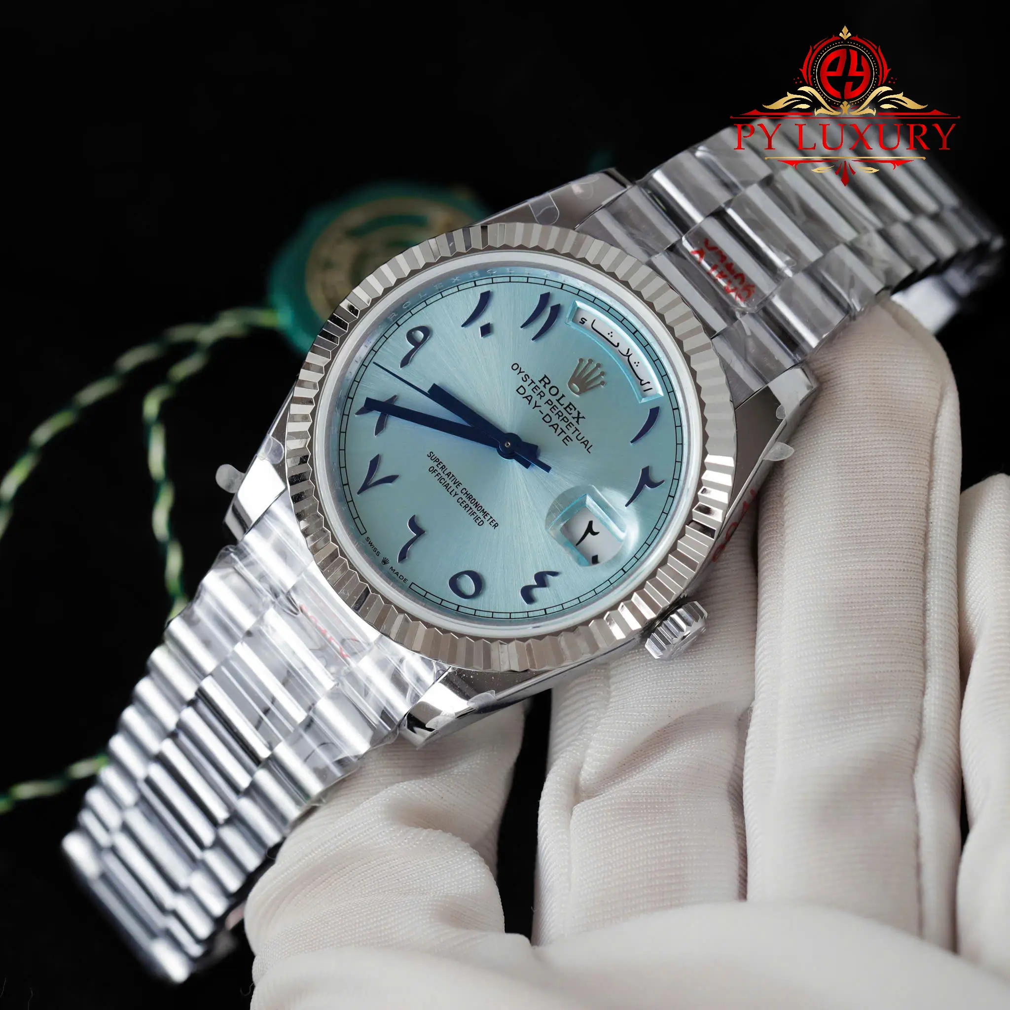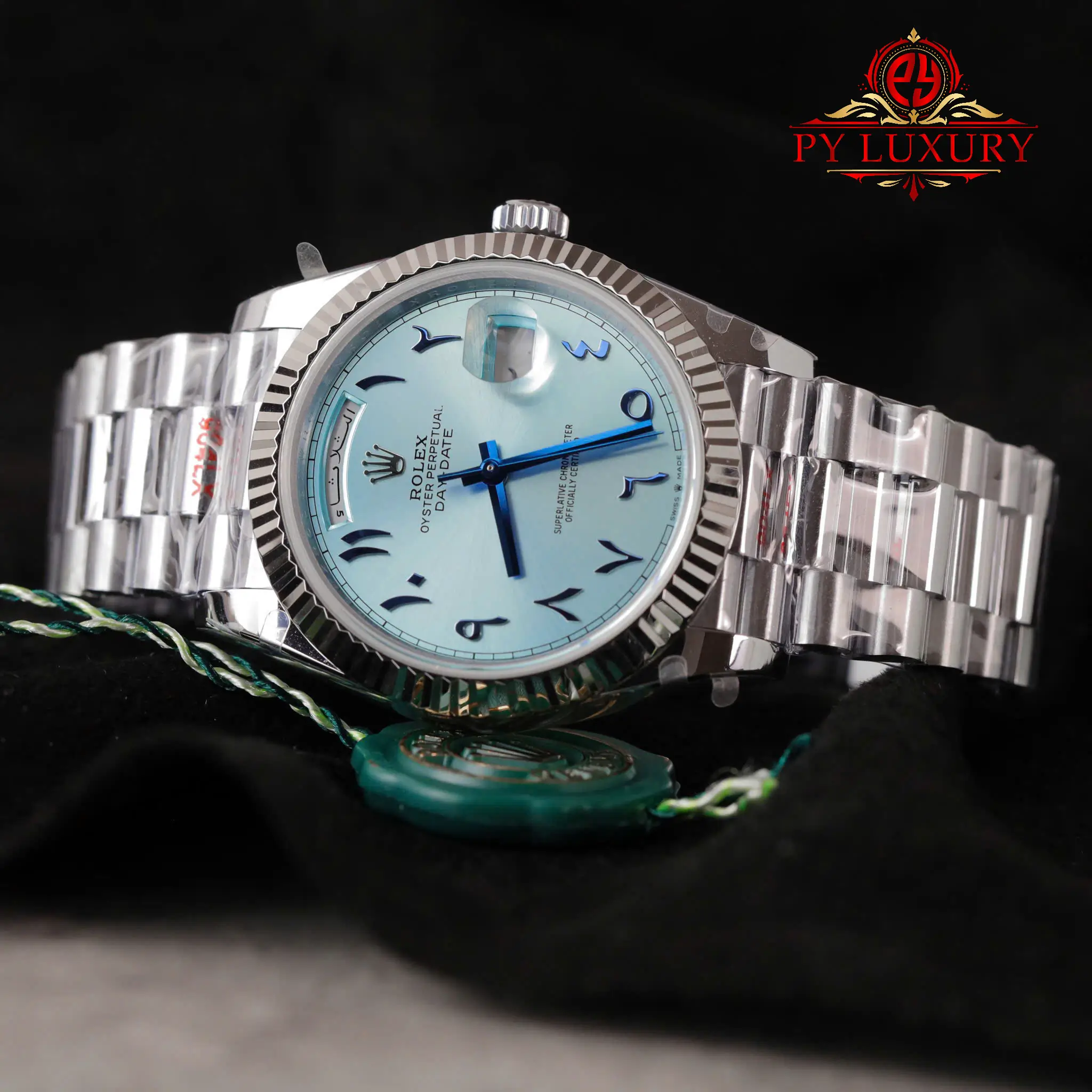 Py-Luxury giới thiệu Đồng Hồ Rolex Day-Date 228236 Mặt Số Xanh Băng Cọc Số Arabic Replica 1:1 40mm bản V3 của nhà máy GM sử dụng bộ máy ETA 2836: