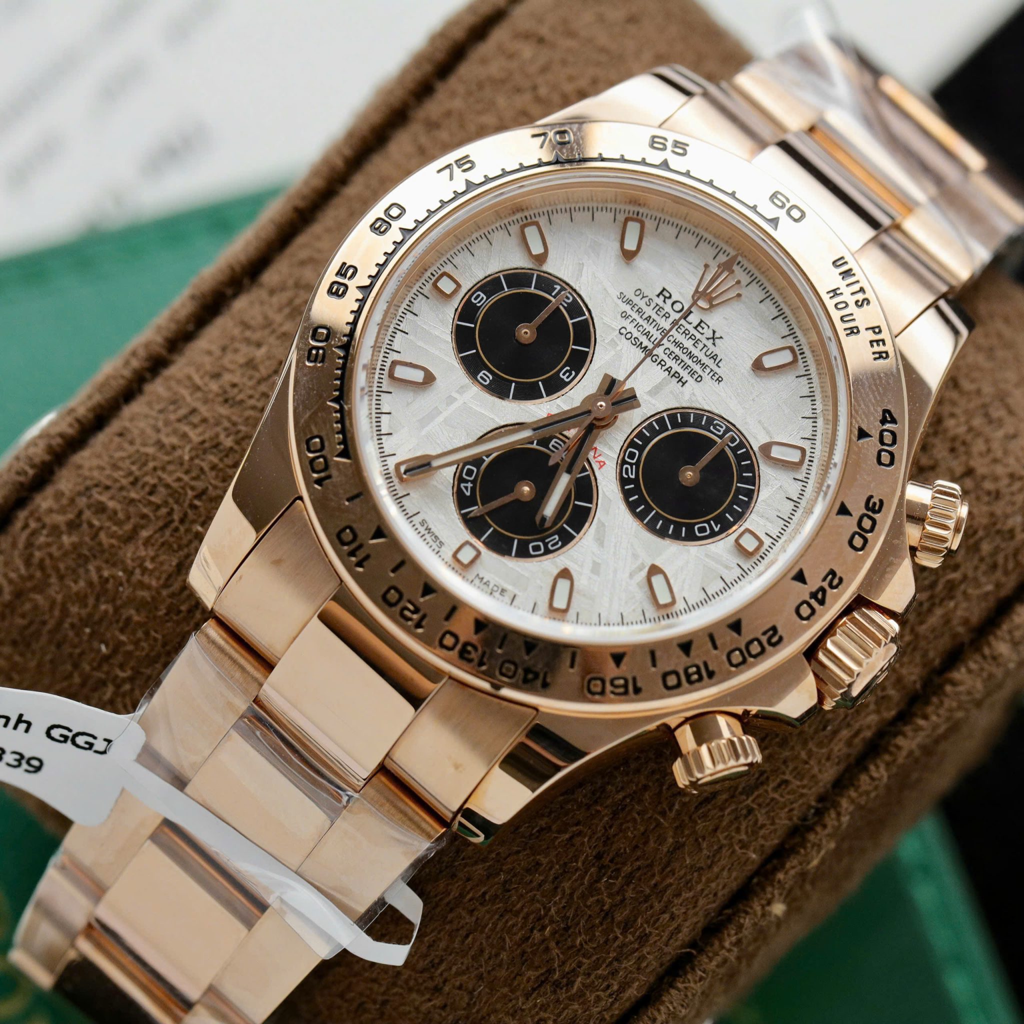 Video chi tiết chiếc Đồng hồ Rolex Daytona 116505-0014 Bọc Vàng Hồng 18K Mặt Thiên Thạch Trắng Replica 1:1 40mm tại Py-Luxury: