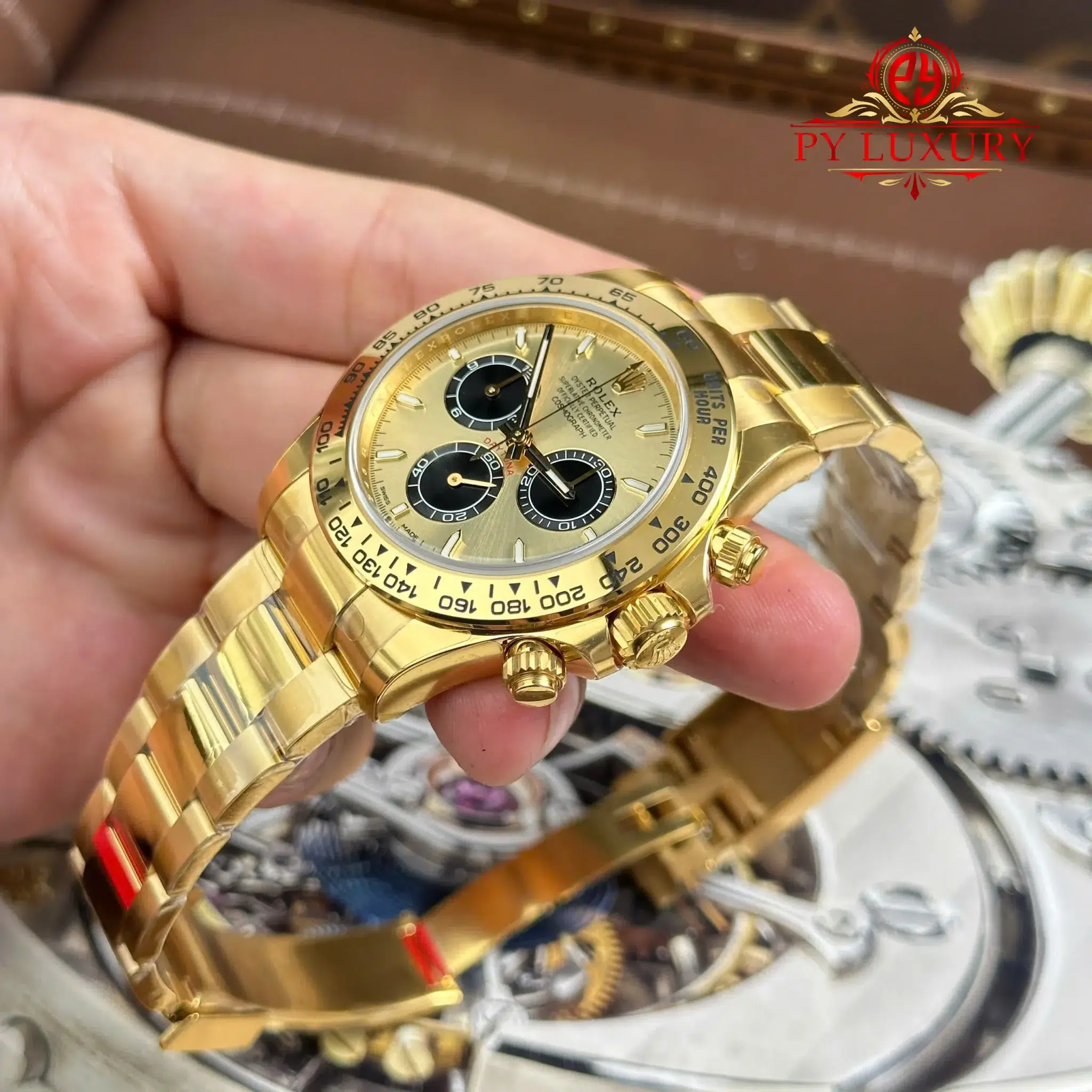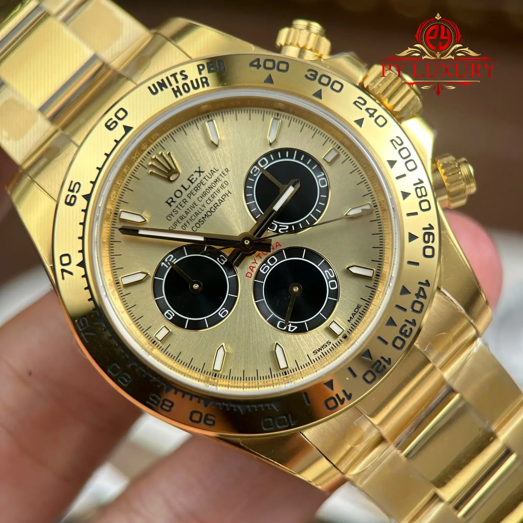 Đồng hồ Rolex Daytona 126508 Vàng Vàng Mặt Số Vàng & Đen Sáng Replica 1:1 VSF 40mm