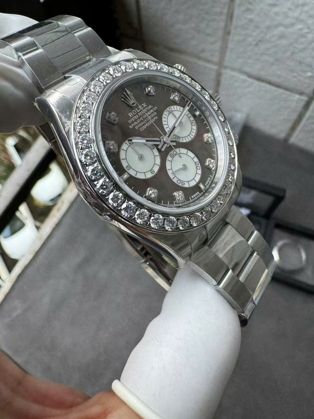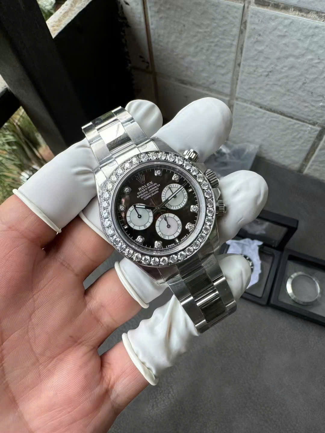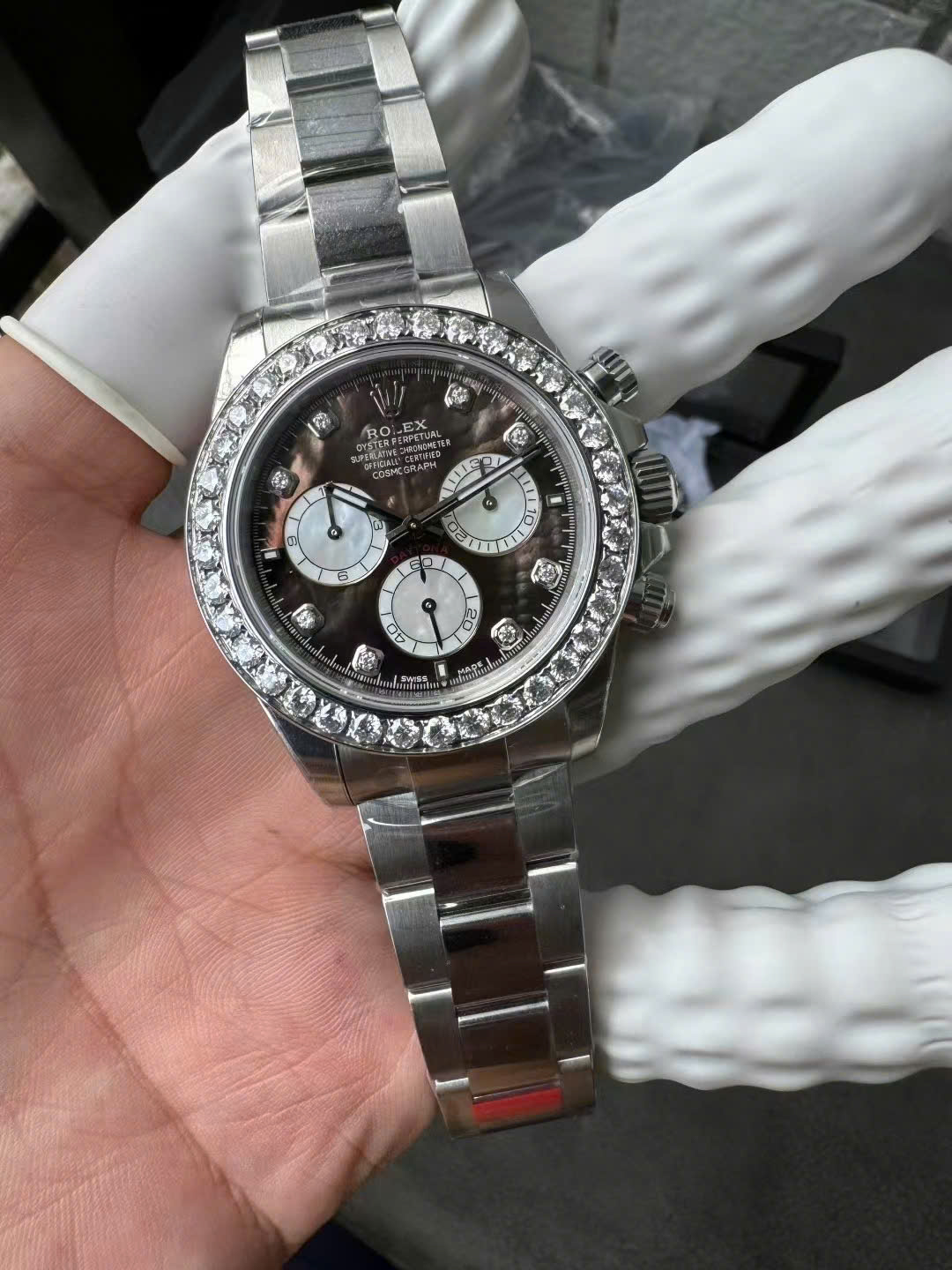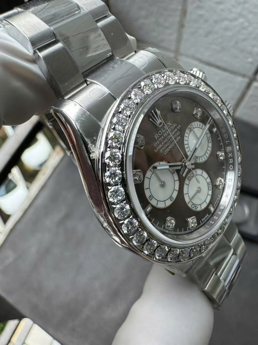 Đồng hồ Rolex Daytona 126579RBR Chế Tác Mặt Xà Cừ Tự Nhiên Cọc Moissanite Viền Moissanite Replica 1:1 Cao Cấp 40mm