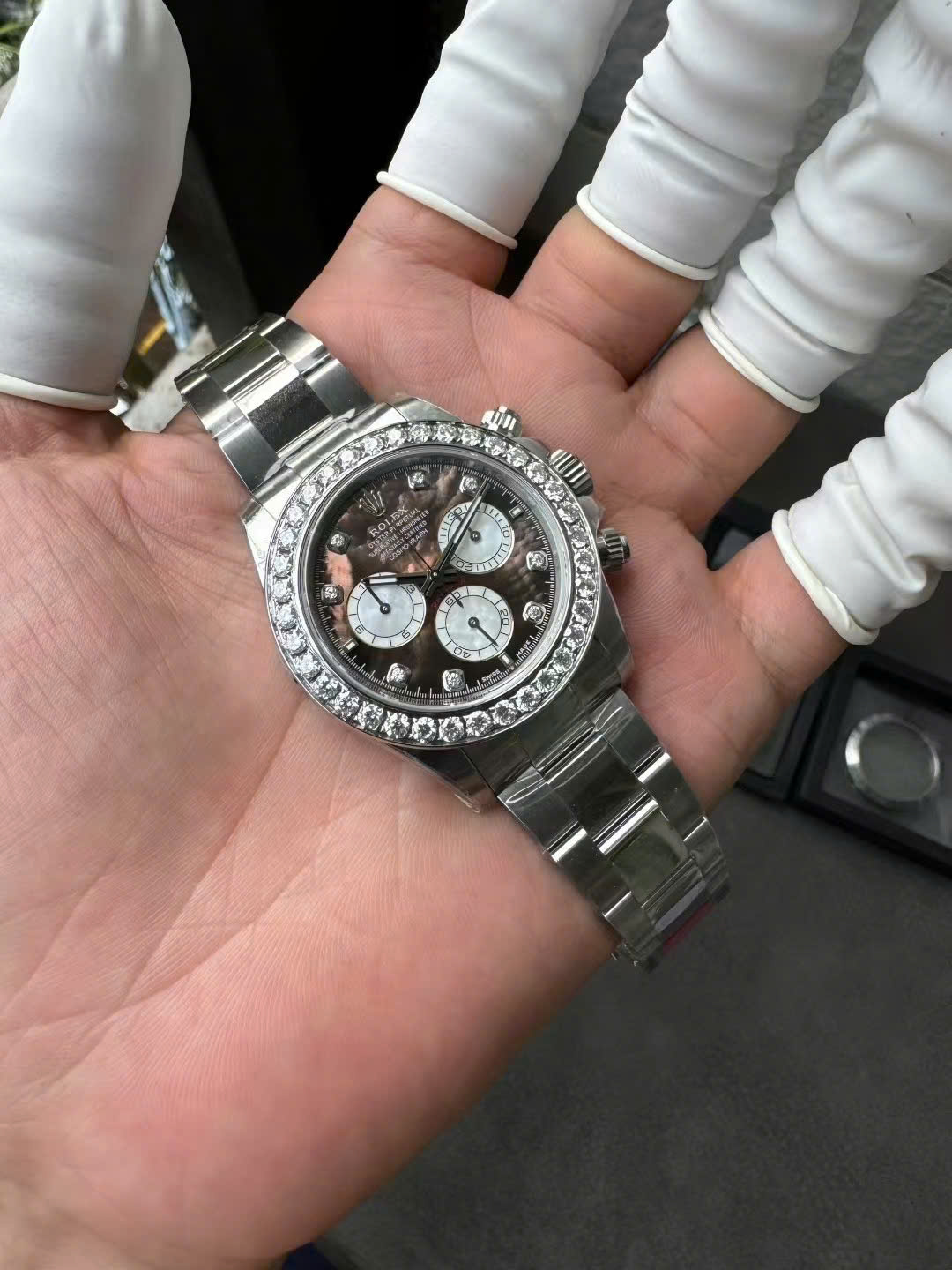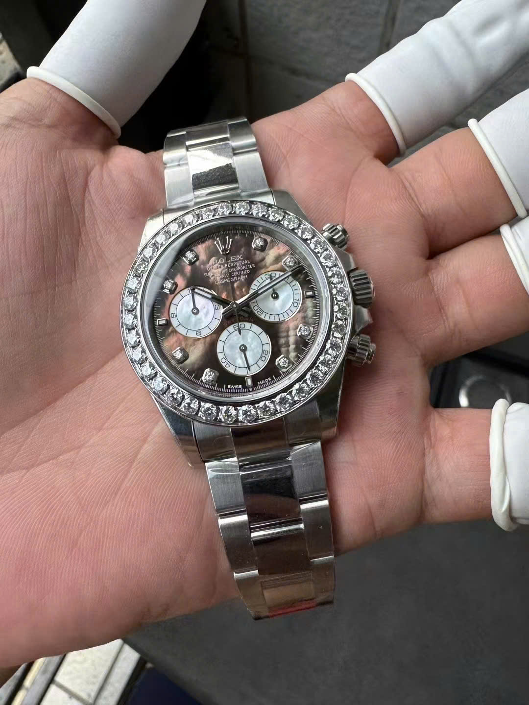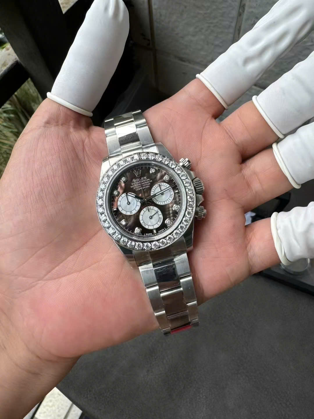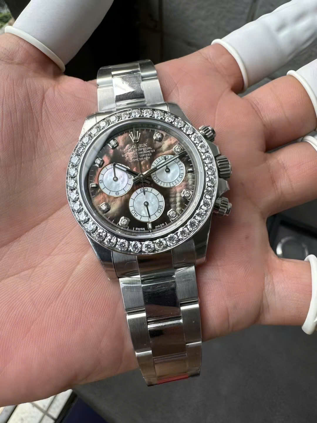 Đồng hồ Rolex Daytona 126579RBR Chế Tác Mặt Xà Cừ Tự Nhiên Cọc Moissanite Viền Moissanite Replica 1:1 Cao Cấp 40mm