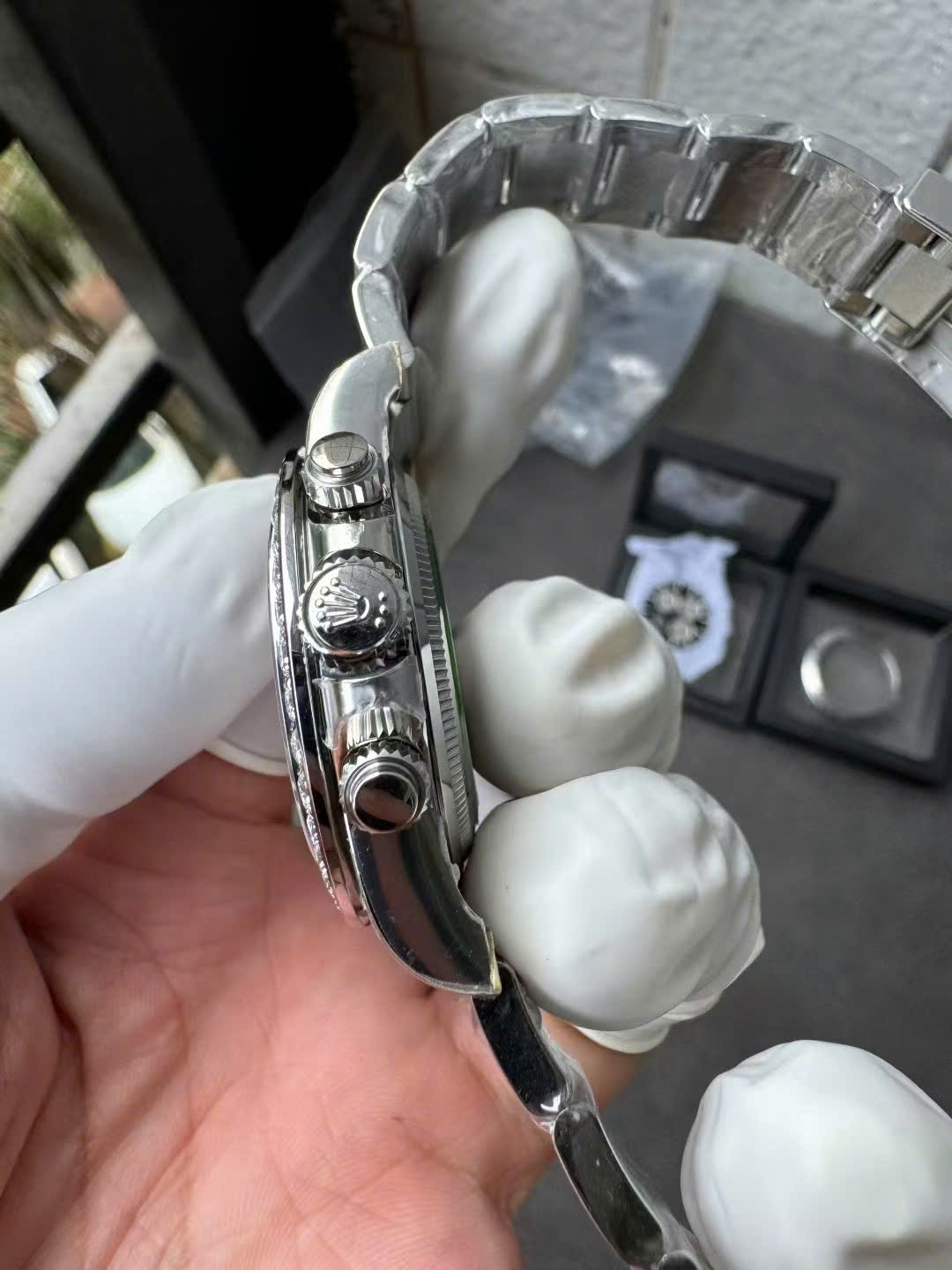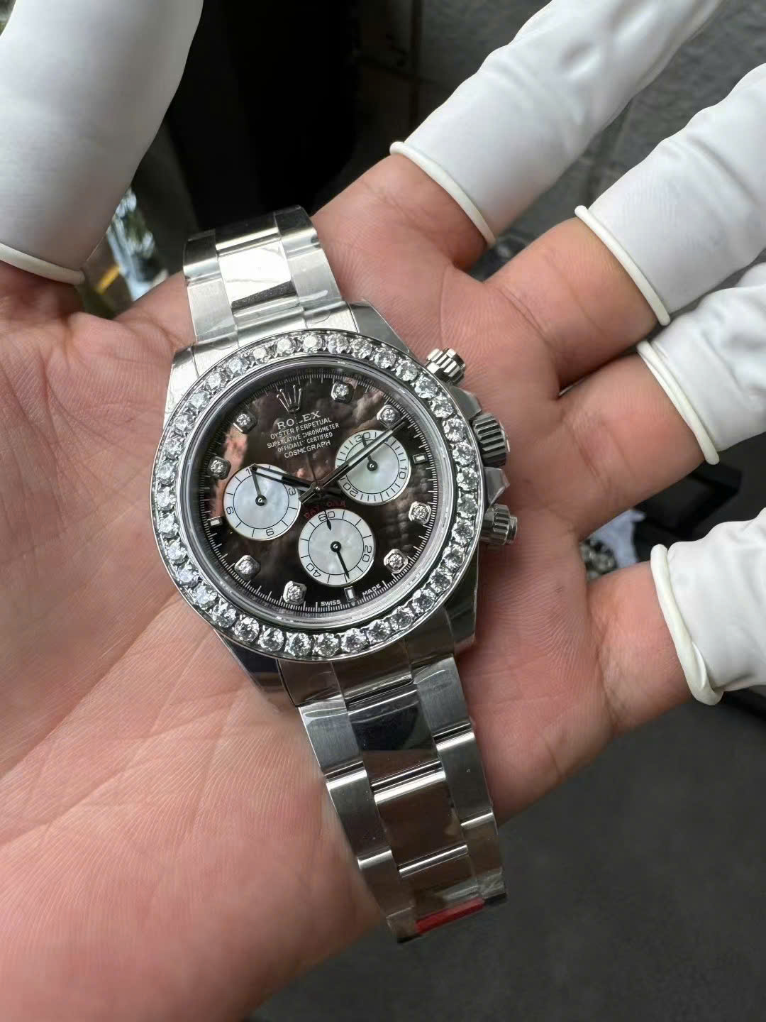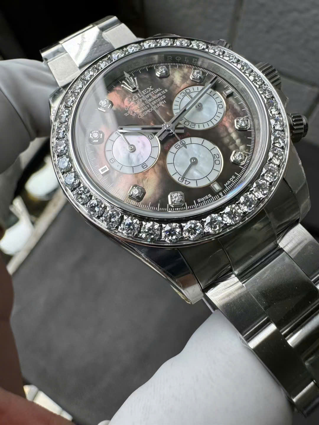 Video chiếc Đồng hồ Rolex Daytona 126579RBR Chế Tác Mặt Xà Cừ Tự Nhiên Cọc Moissanite Viền Moissanite Replica 1:1 Cao Cấp tại Py-Luxury: