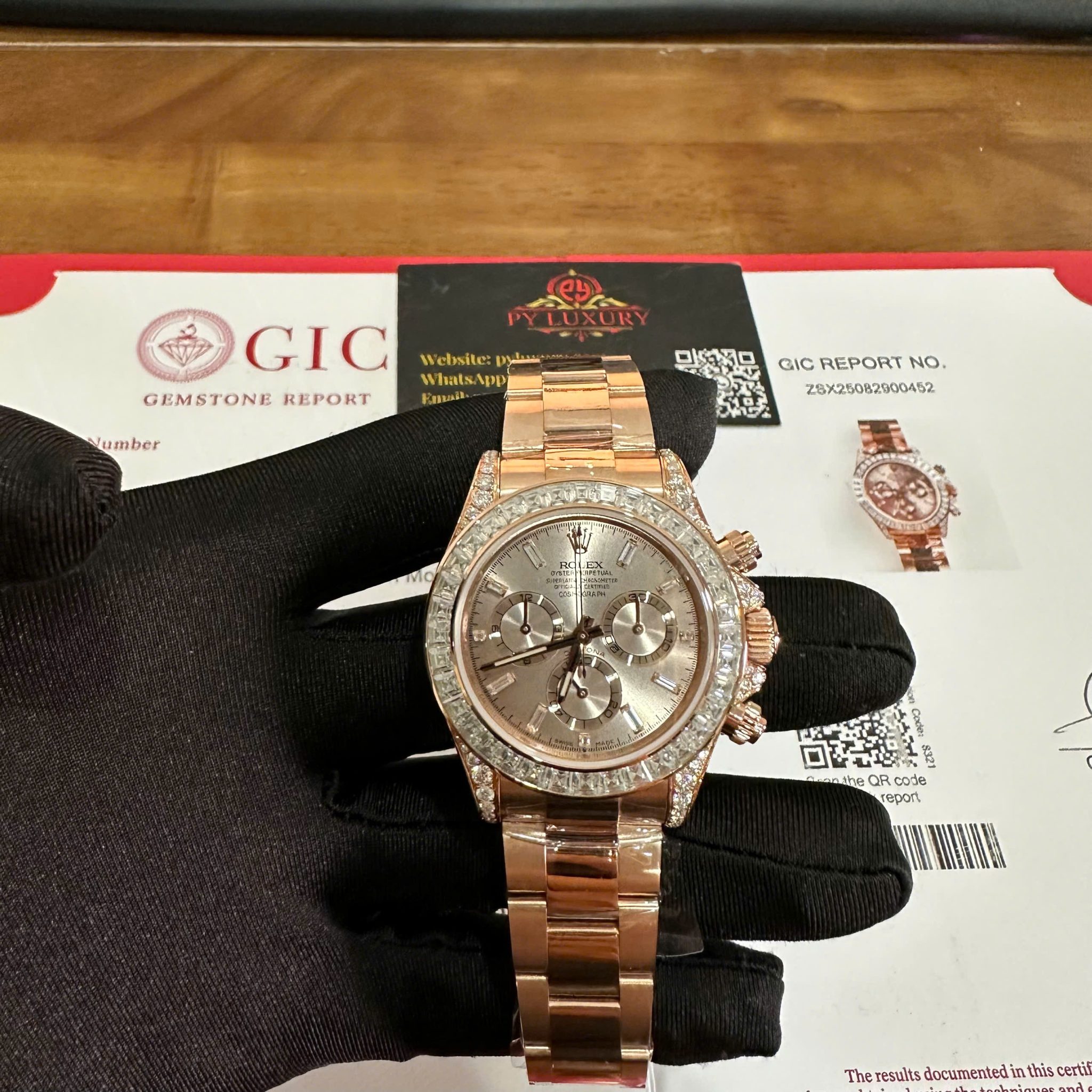 Video chiếc Đồng hồ Rolex Daytona 126595TBR-0001 Bọc Vàng 18K Độ Moissanite Super Clone 1:1 phiên bản tăng trọng lượng của nhà máy QF tại Py-Luxury: