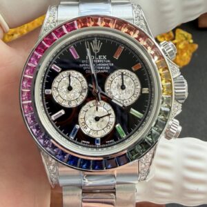 Đồng hồ Rolex Daytona 126599RBOW Rainbow Mặt Đen Chế Tác Moissanite & Sapphire Super Clone 40mm