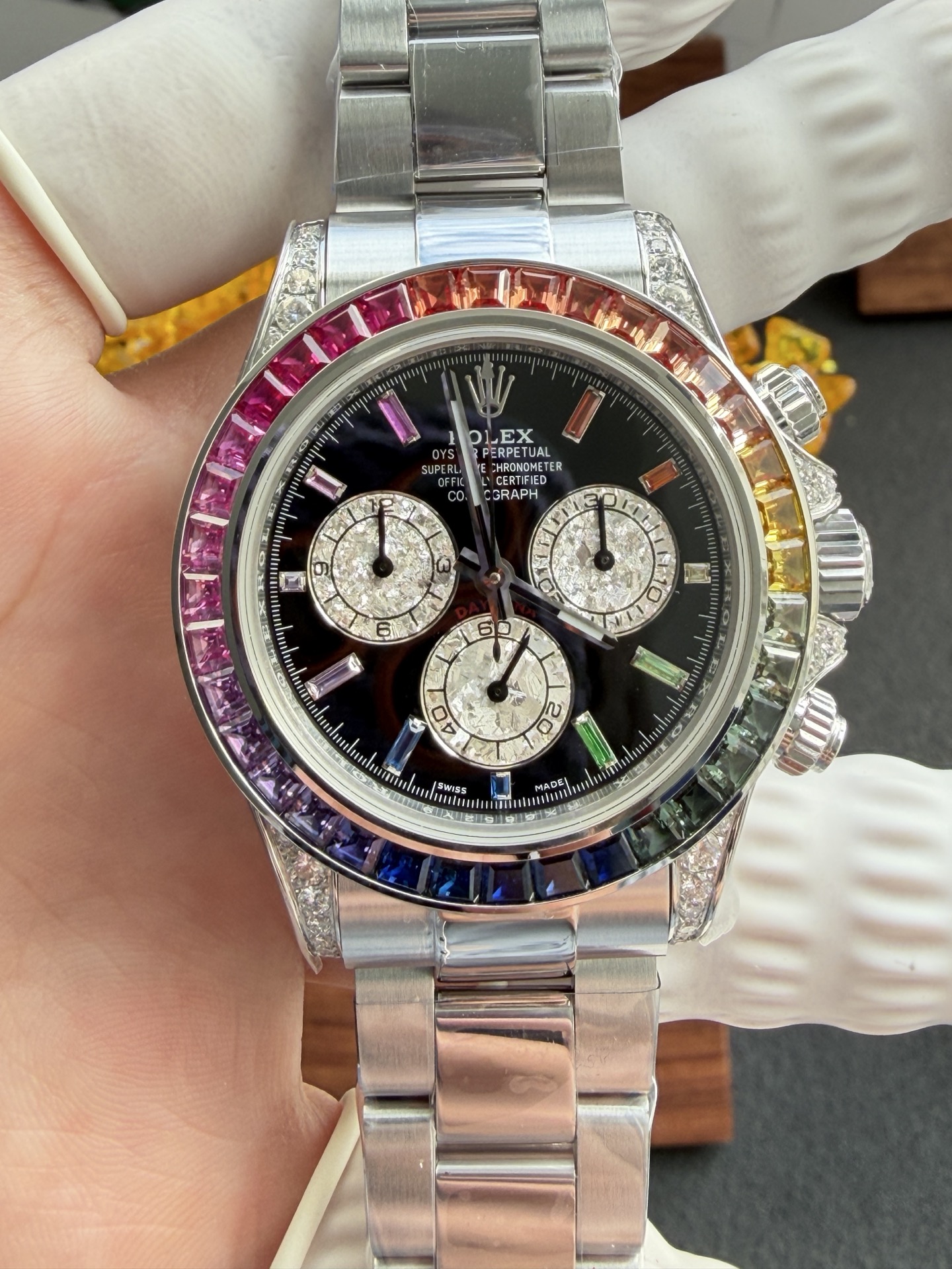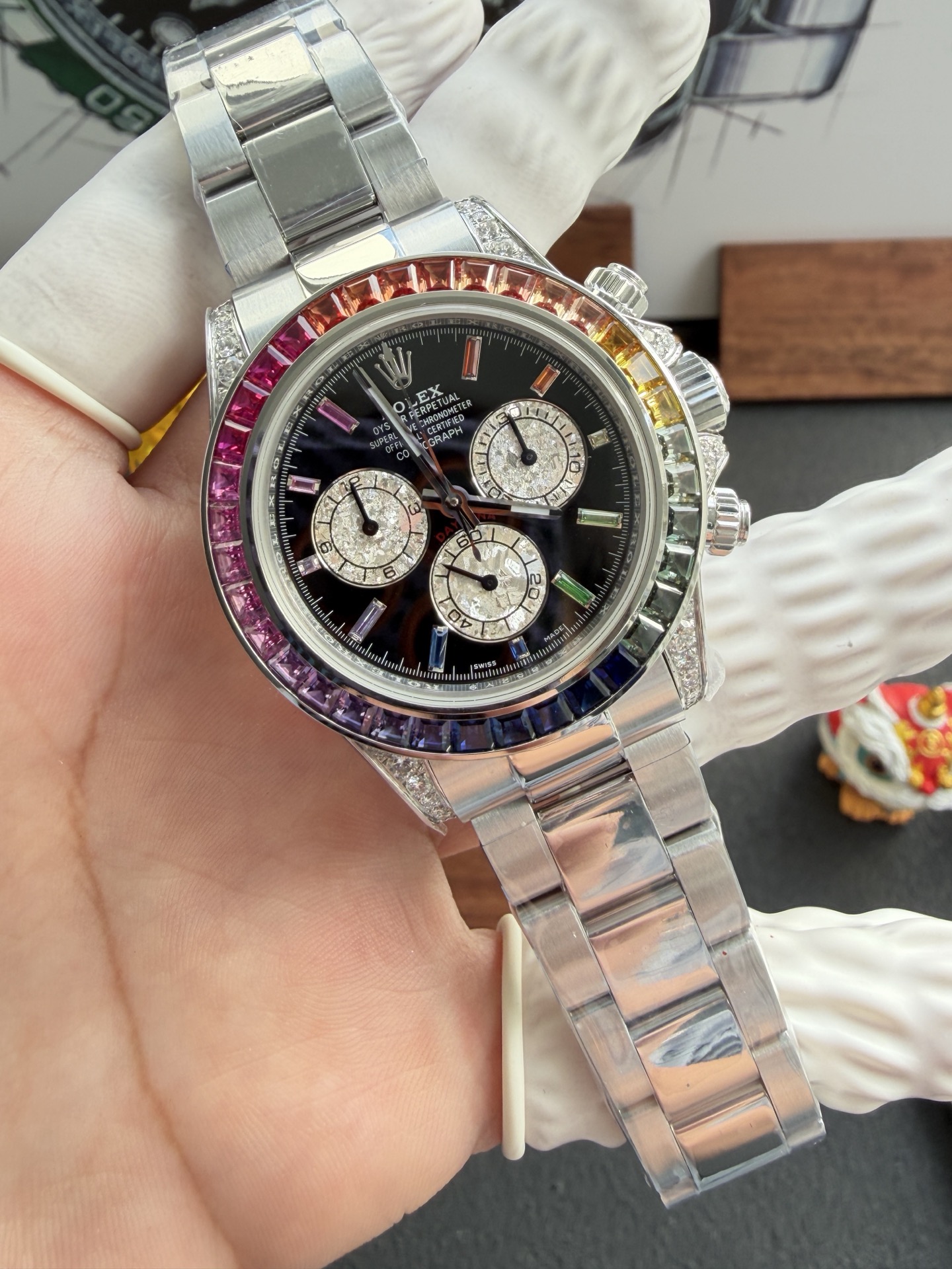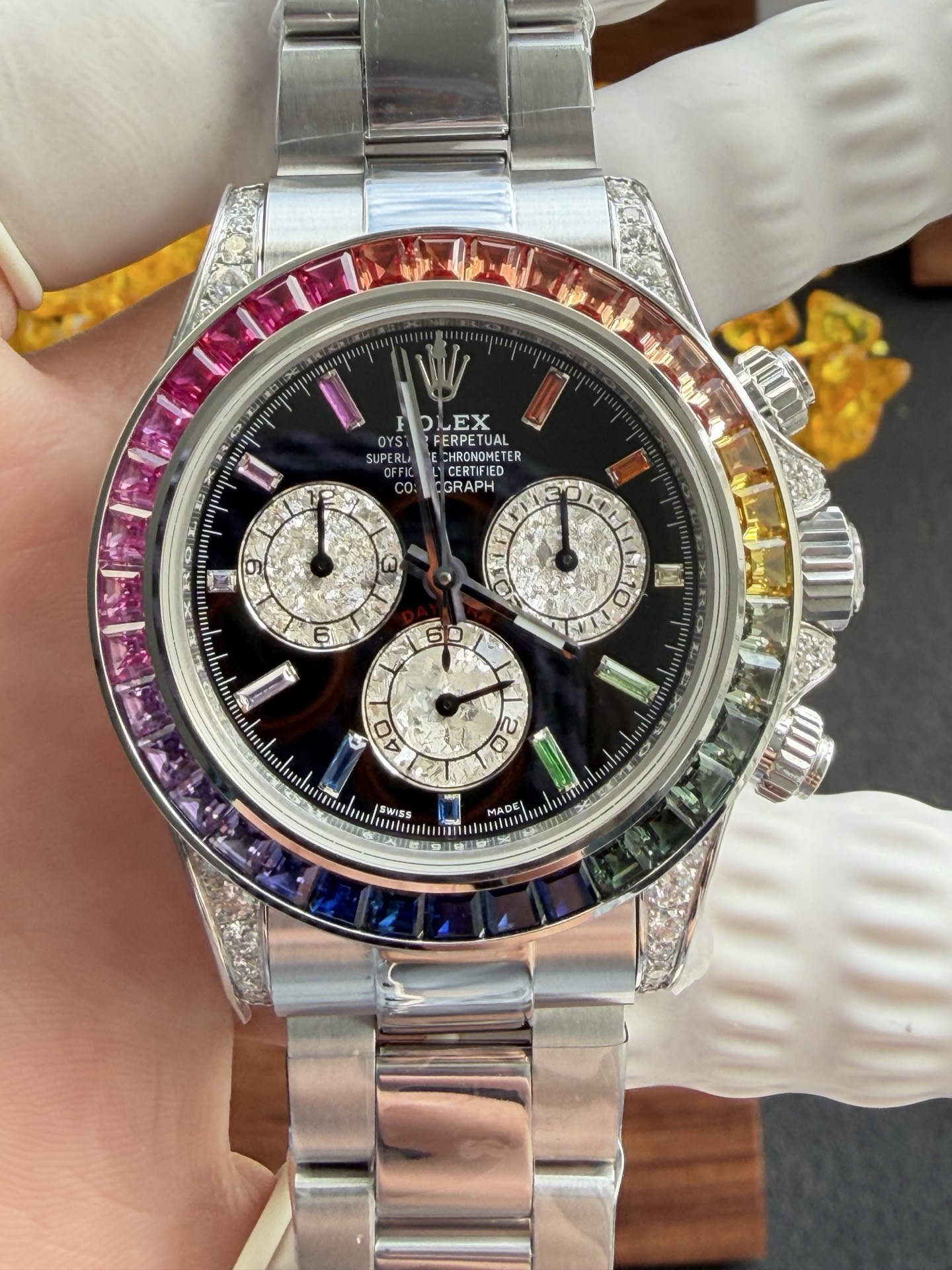 Đồng hồ Rolex Daytona 126599RBOW Rainbow Mặt Đen Chế Tác Moissanite & Sapphire Super Clone 40mm