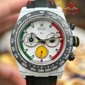 Đồng hồ Rolex Daytona DiW Ferrari CarboQuartz Vỏ Sợ Thạch Anh Mặt Trắng Dây Vải Replica 1:1 Sonic 40mm