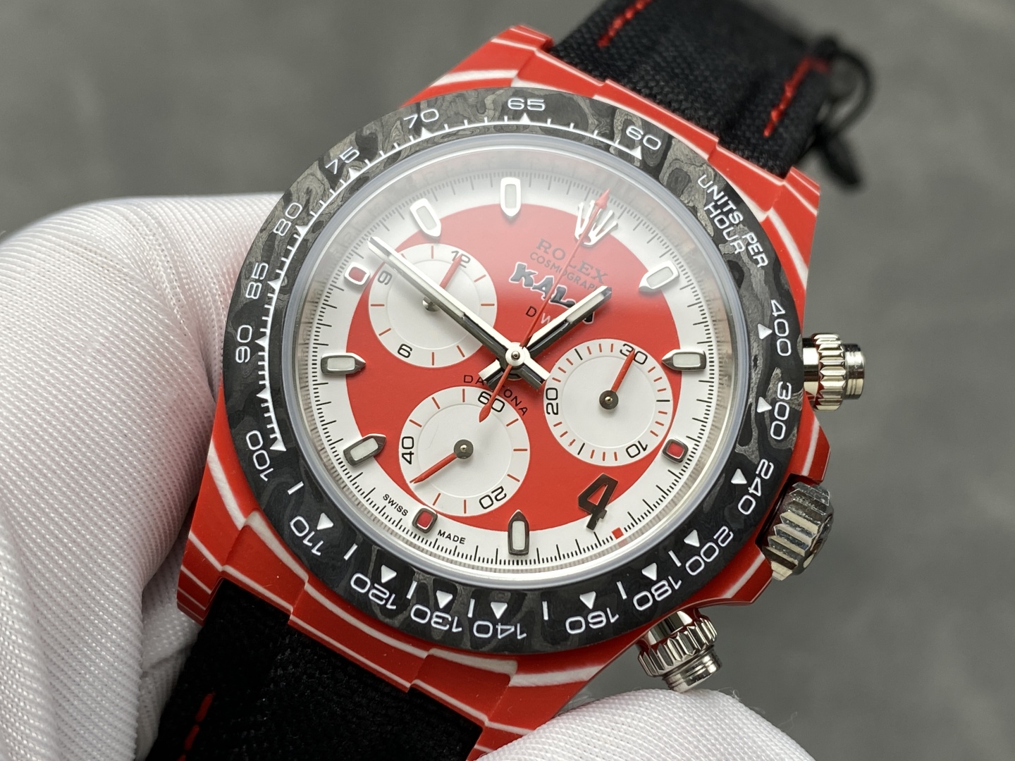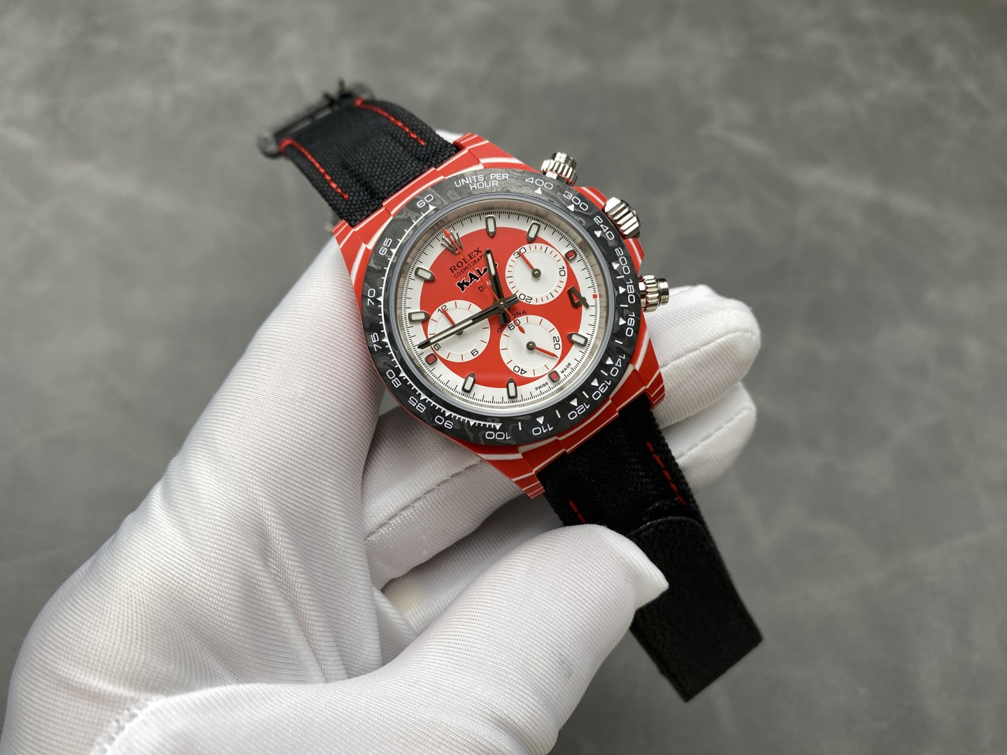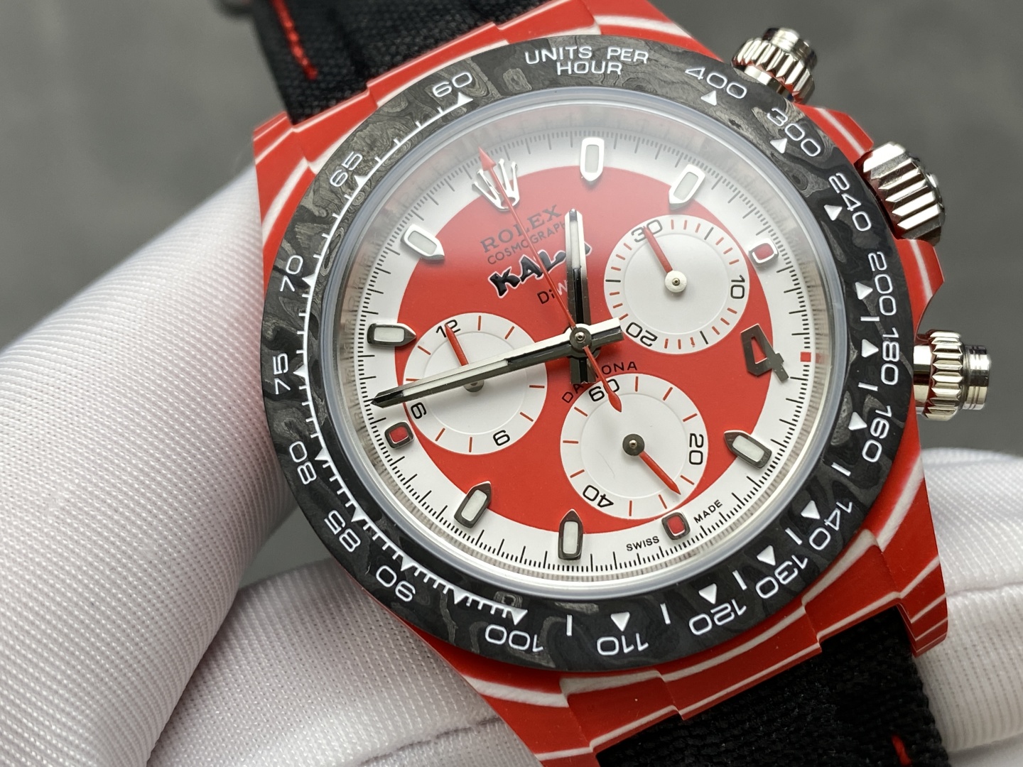 Đồng hồ Rolex Daytona DiW x Kakha Kaladze Mặt Trắng & Đỏ Quartz Fiber Dây Vải Replica 1:1 Cao Cấp 40mm