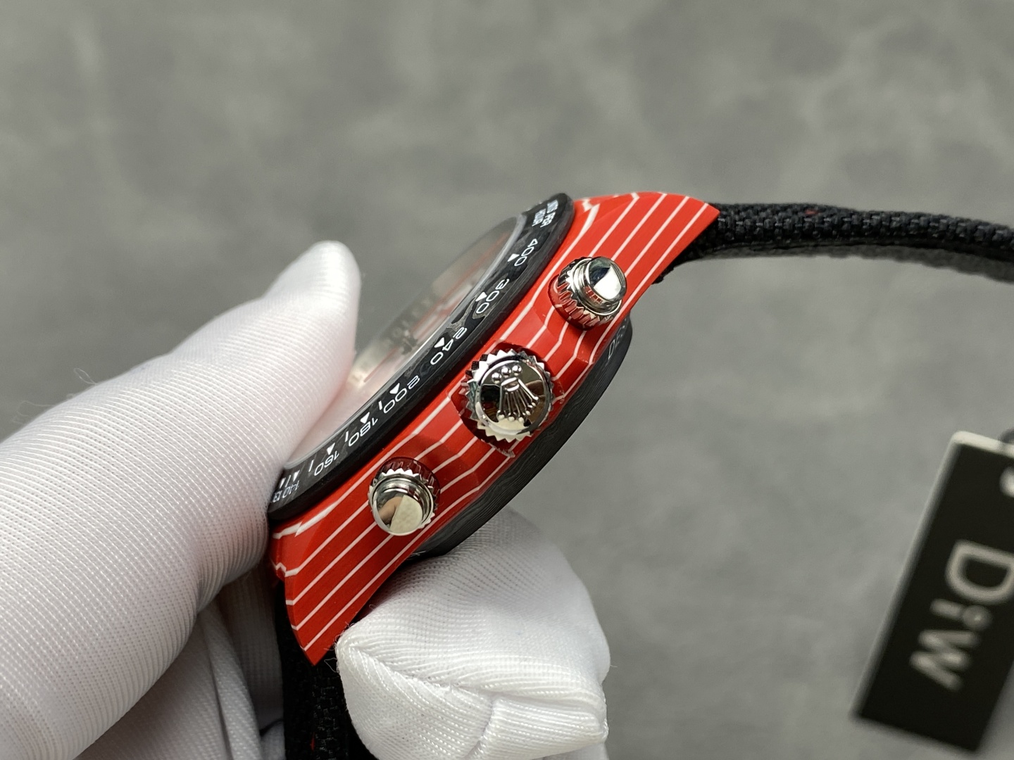 Video chi tiết Đồng hồ Rolex Daytona DiW x Kakha Kaladze Mặt Trắng & Đỏ Quartz Fiber Dây Vải Replica 1:1 Cao Cấp 40mm: