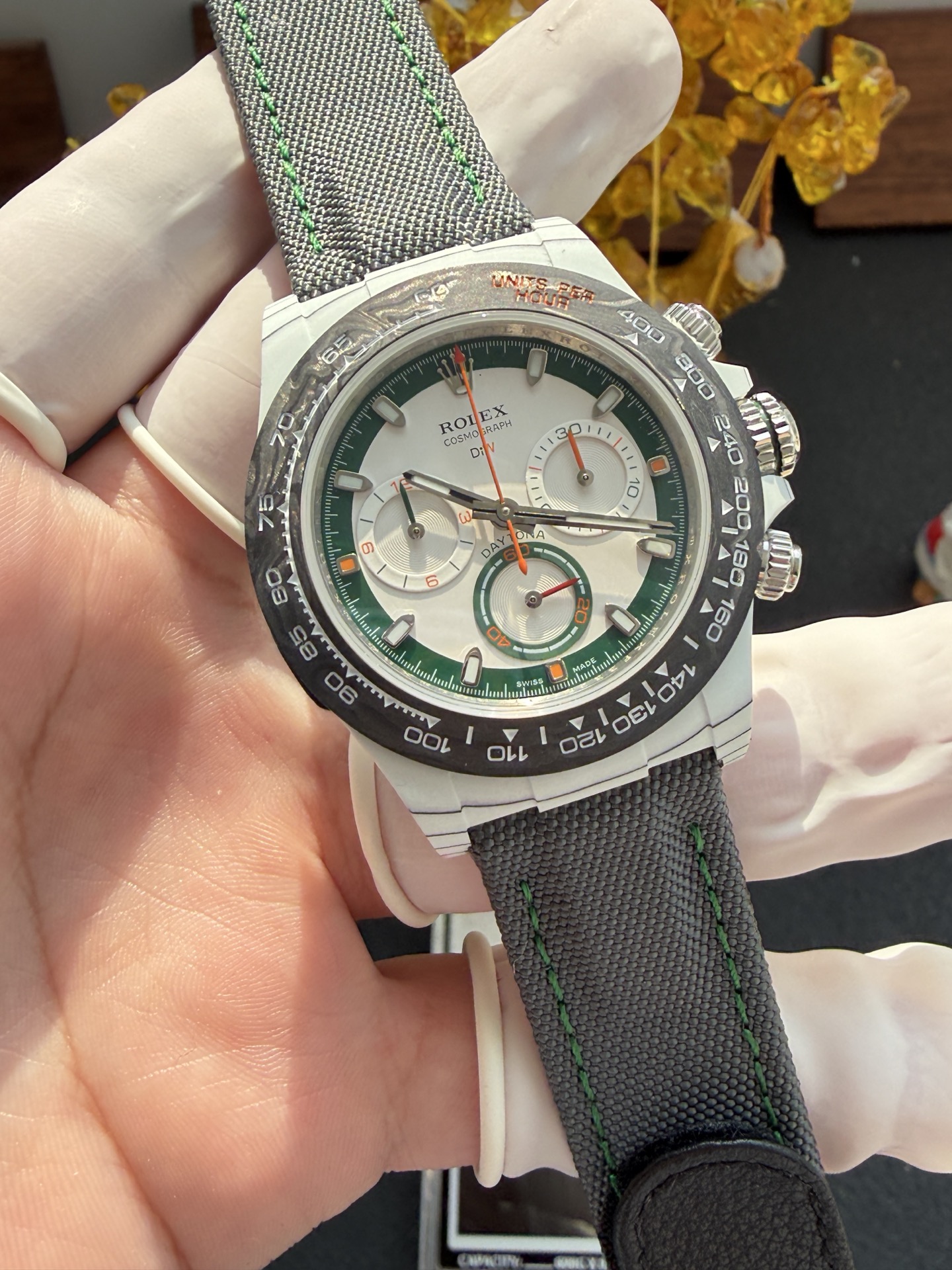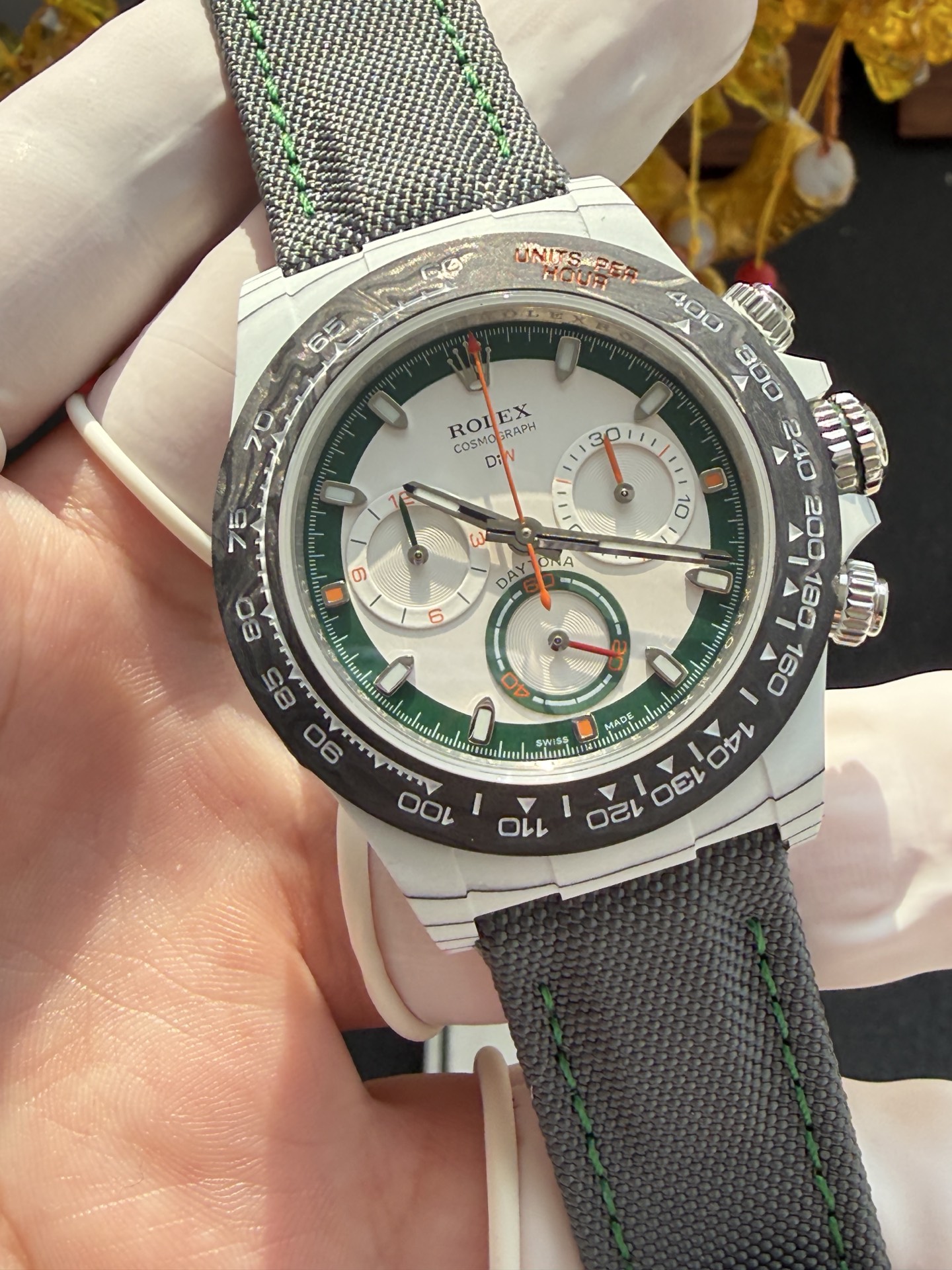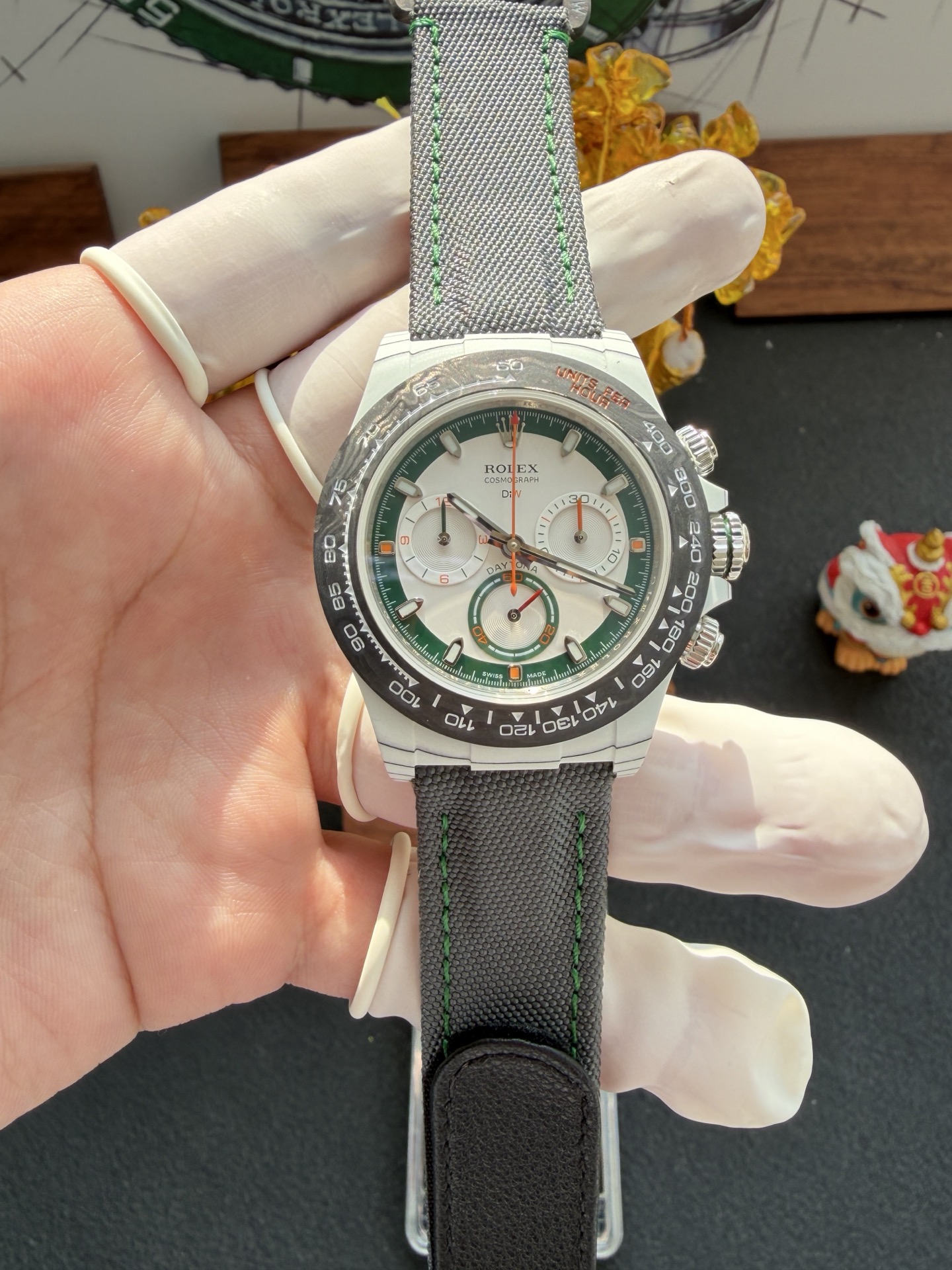 Đồng hồ Rolex DiW Daytona Alpine Mặt Trắng & Xanh Lá Dây Vải Replica 1:1 Cao Cấp 40mm