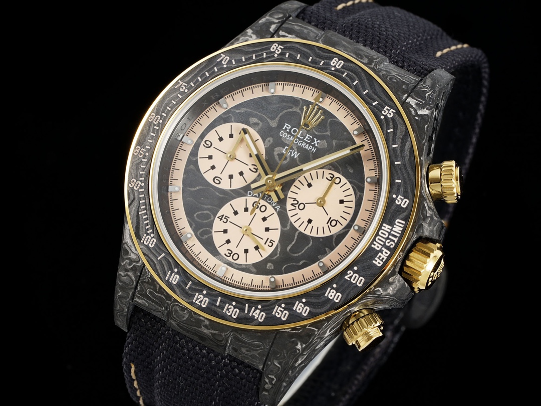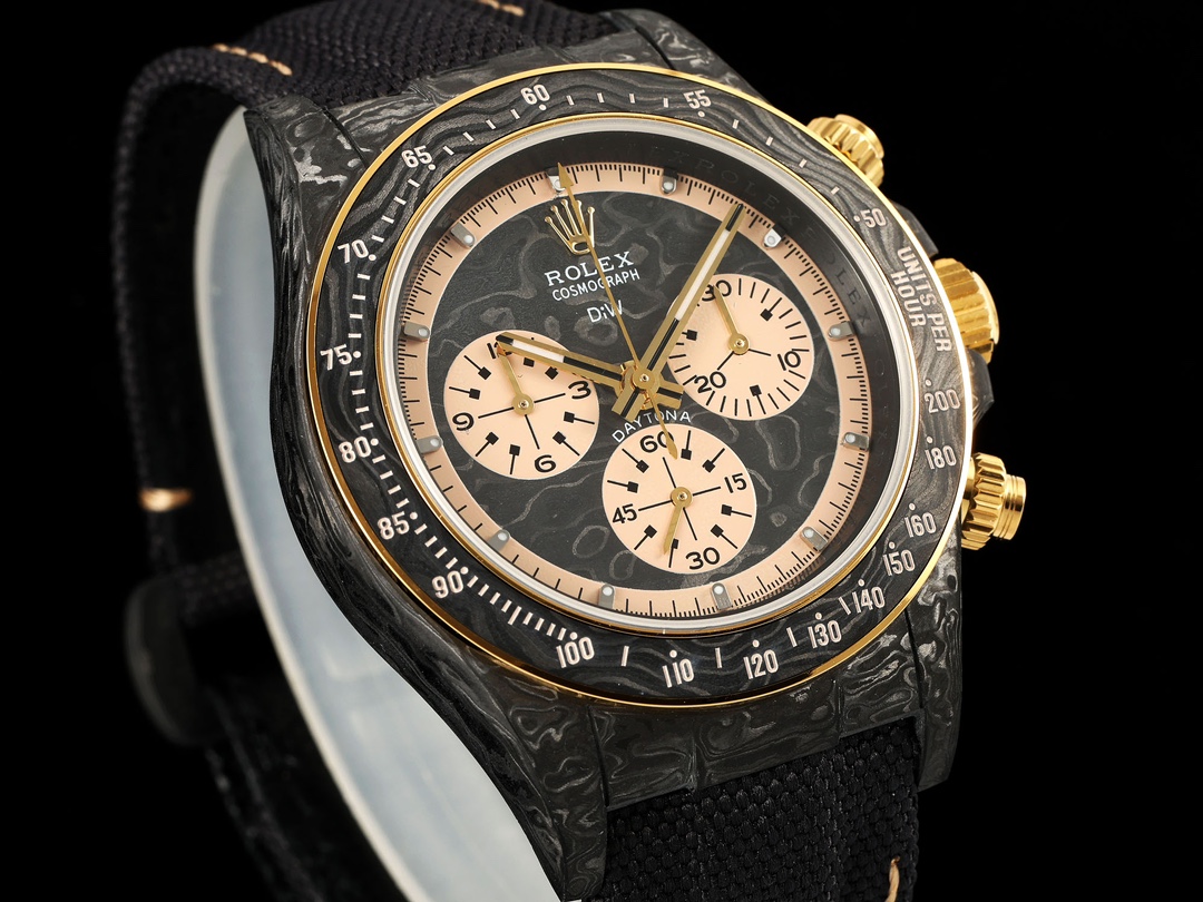 Đồng hồ Rolex DiW Daytona Paul Newman 2023 NEO CLASSIC Vỏ Carbon Đen Dây Vải Replica Cao Cấp 40mm