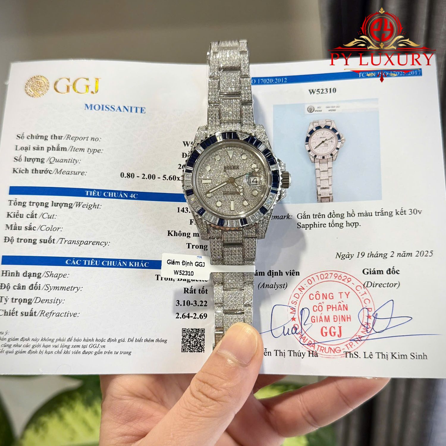 - Chất Liệu Vỏ: Thép 904L Đính Full Đá Moissanite