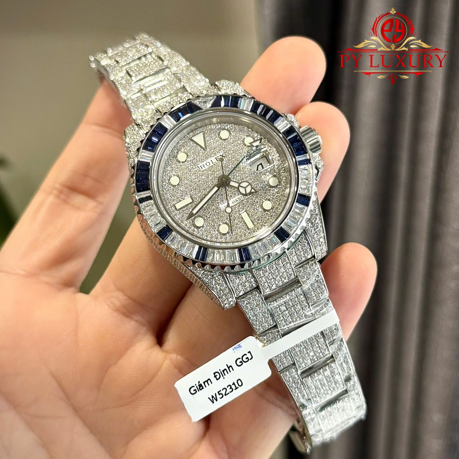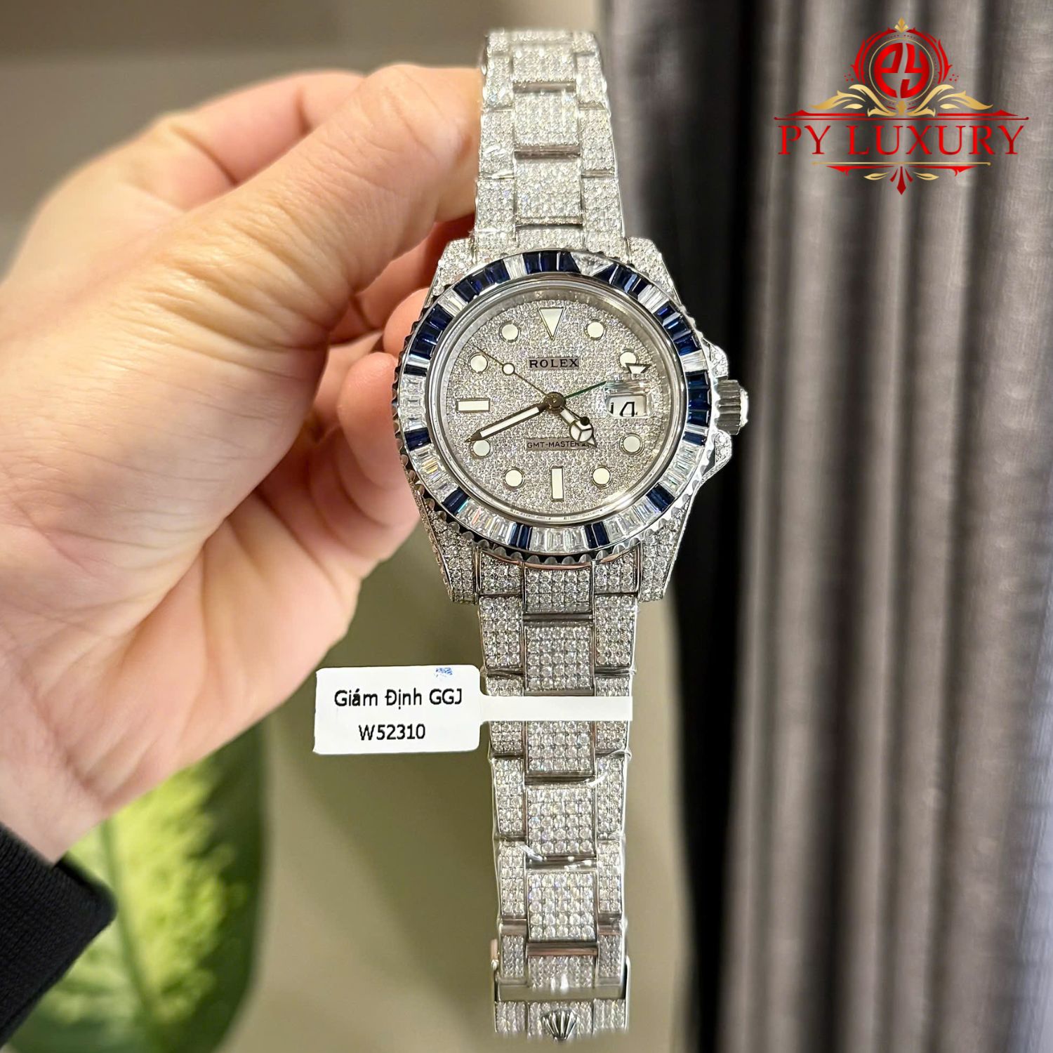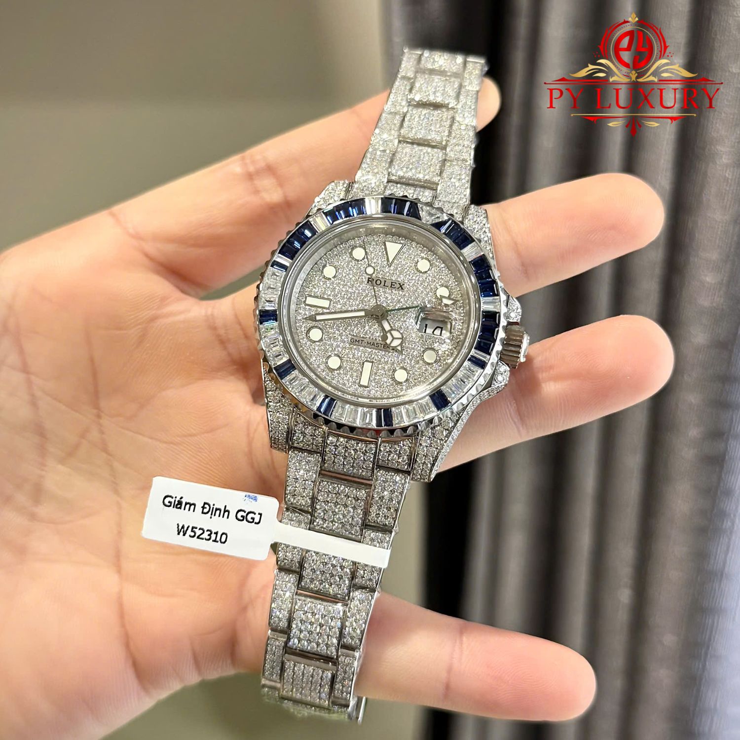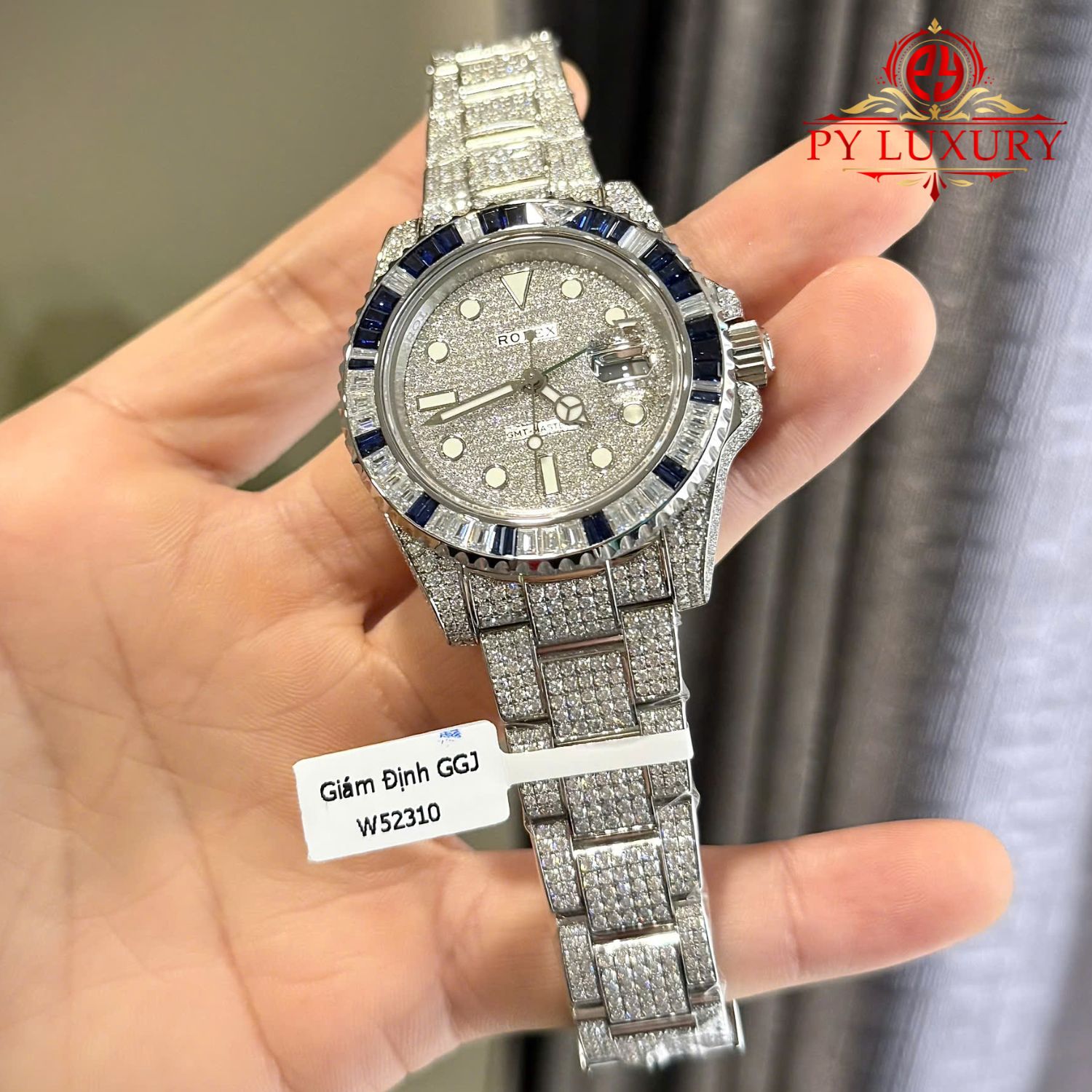 Đồng Hồ Rolex GMT-Master II Chế Tác Full Moissanite Viền Đá Baguette Moissanite & Sapphire 40mm