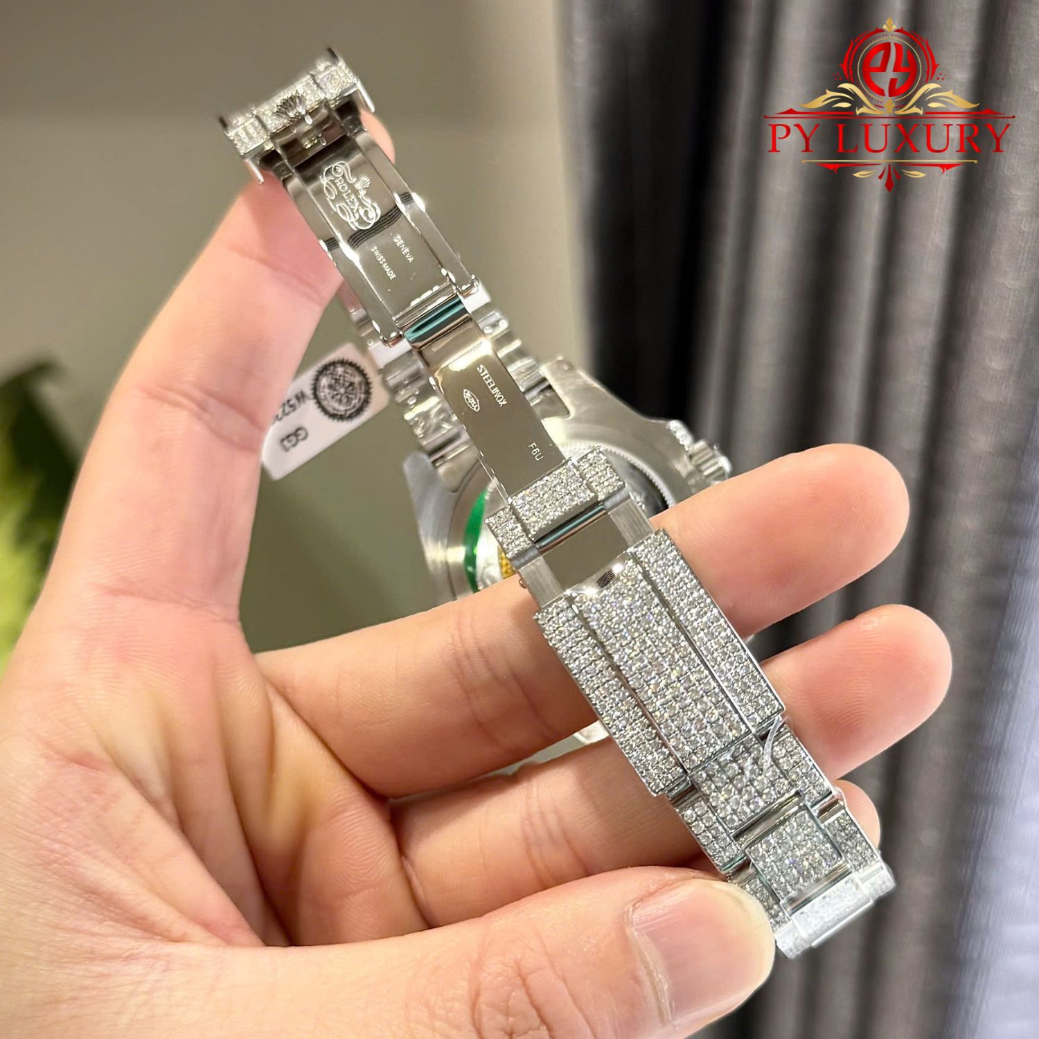 - Chất Liệu Dây Đeo: Thép 904L Đính Full Đá Moissanite