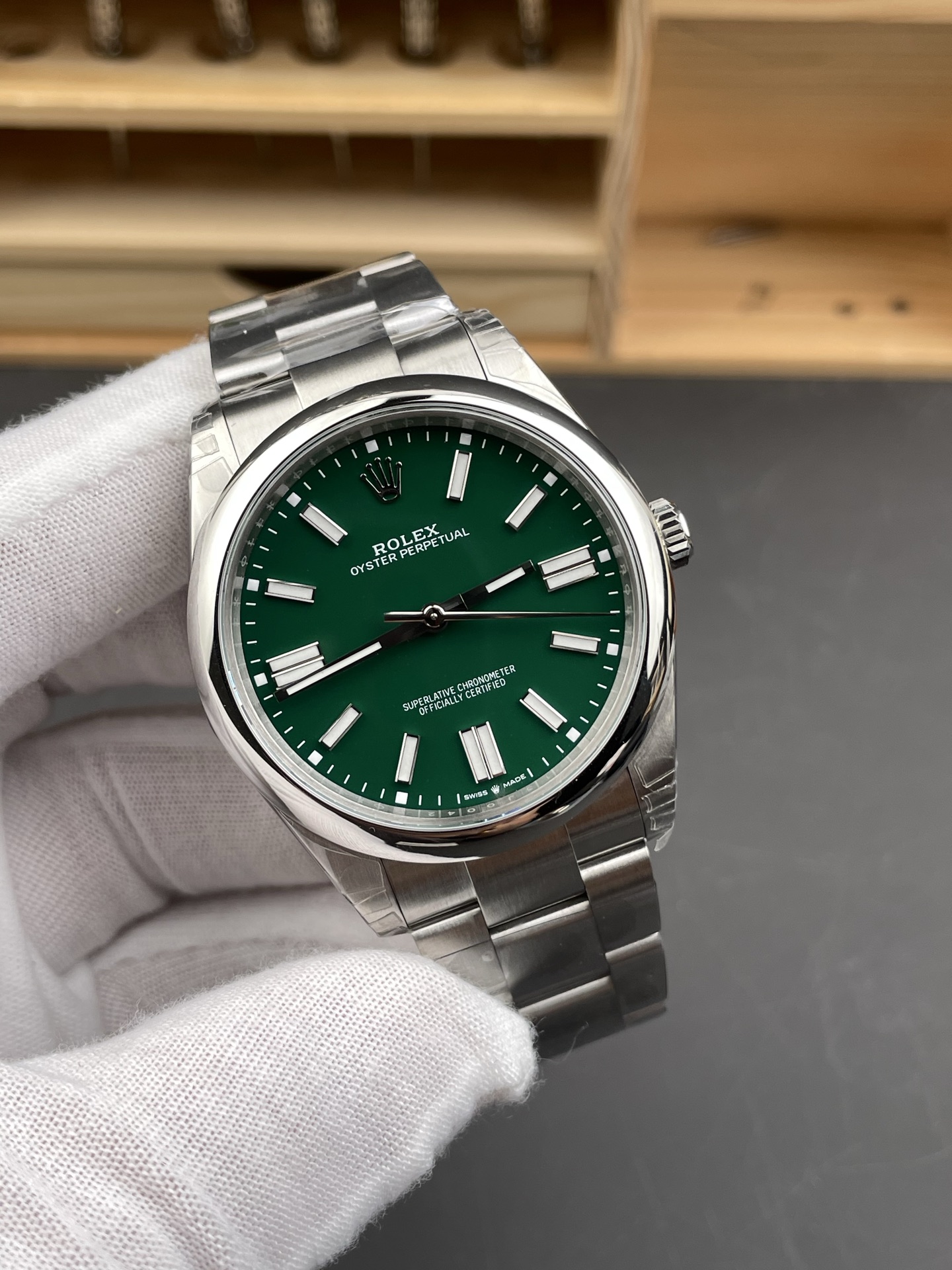 Đồng Hồ Rolex Oyster Perpetual 41 124300-0005 Mặt Xanh Lá Replica 1:1 VS Factory