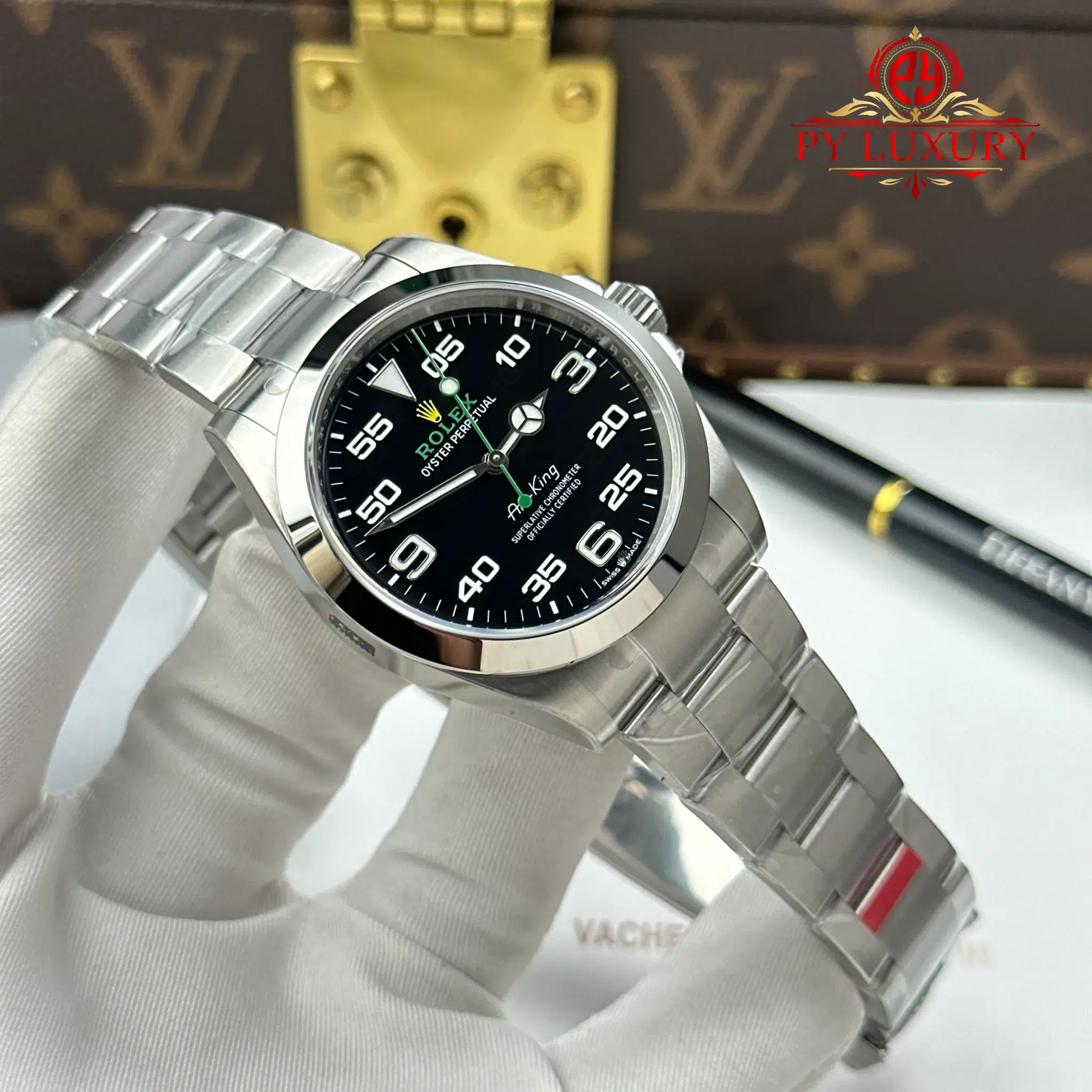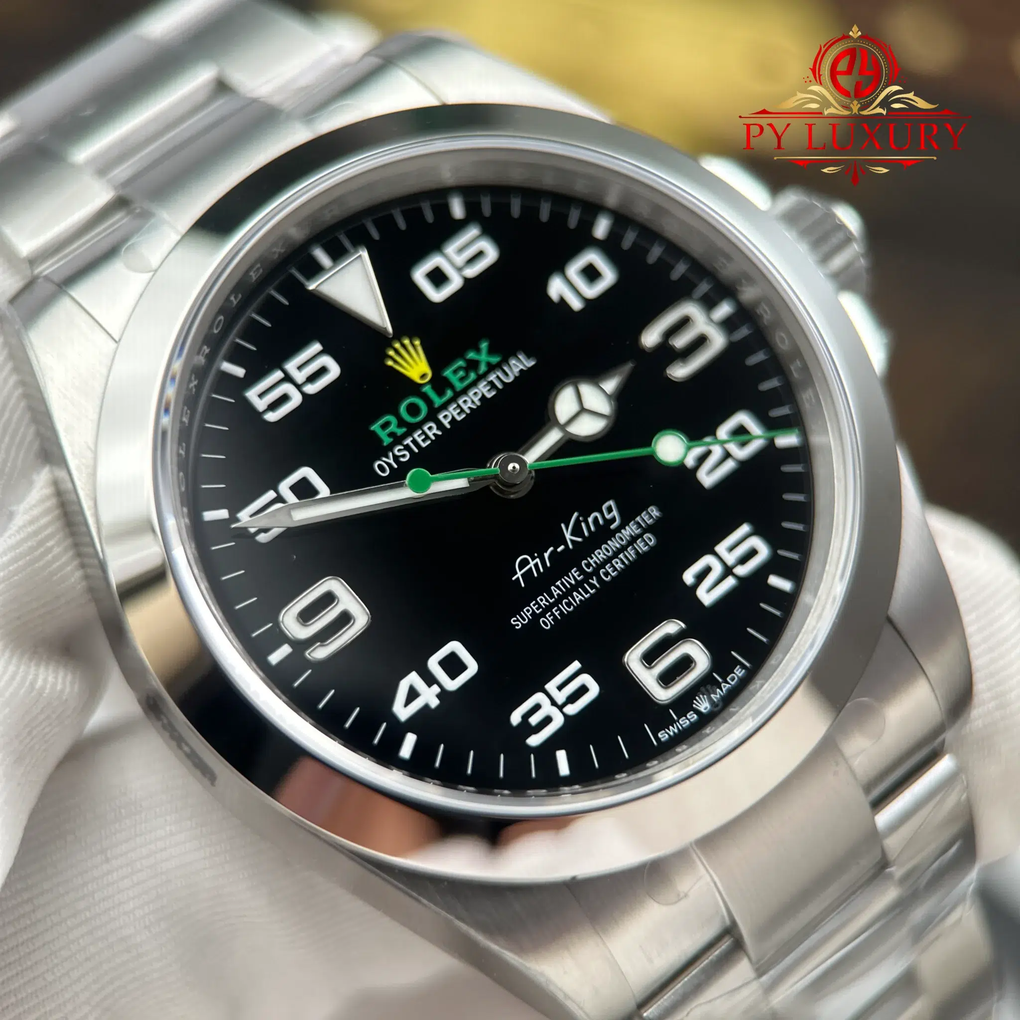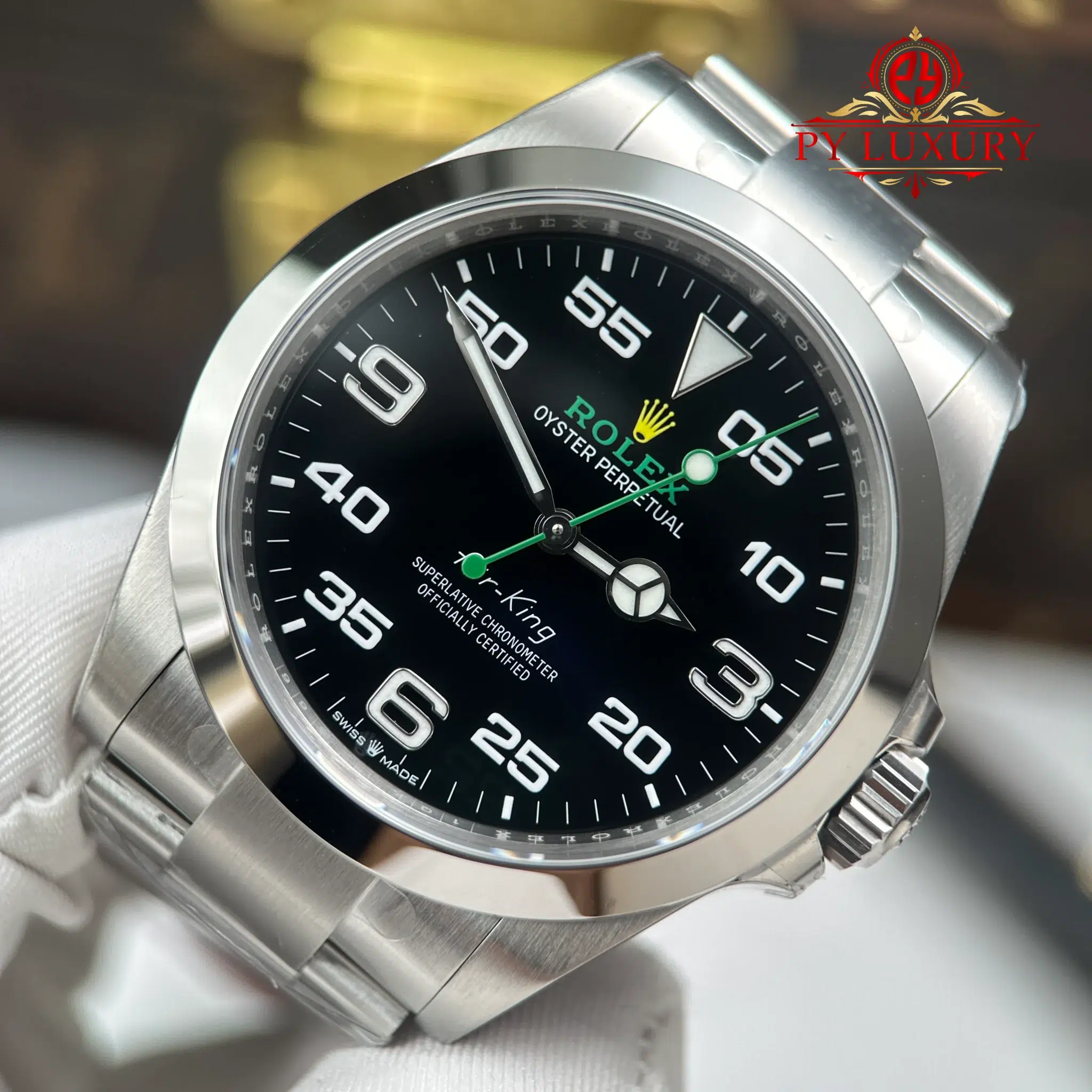 Video chi tiết chiếc Đồng Hồ Rolex Oyster Perpetual Air-King 126900 Mặt Đen Replica 1:1 VSF 40mm tại Py-Luxury: