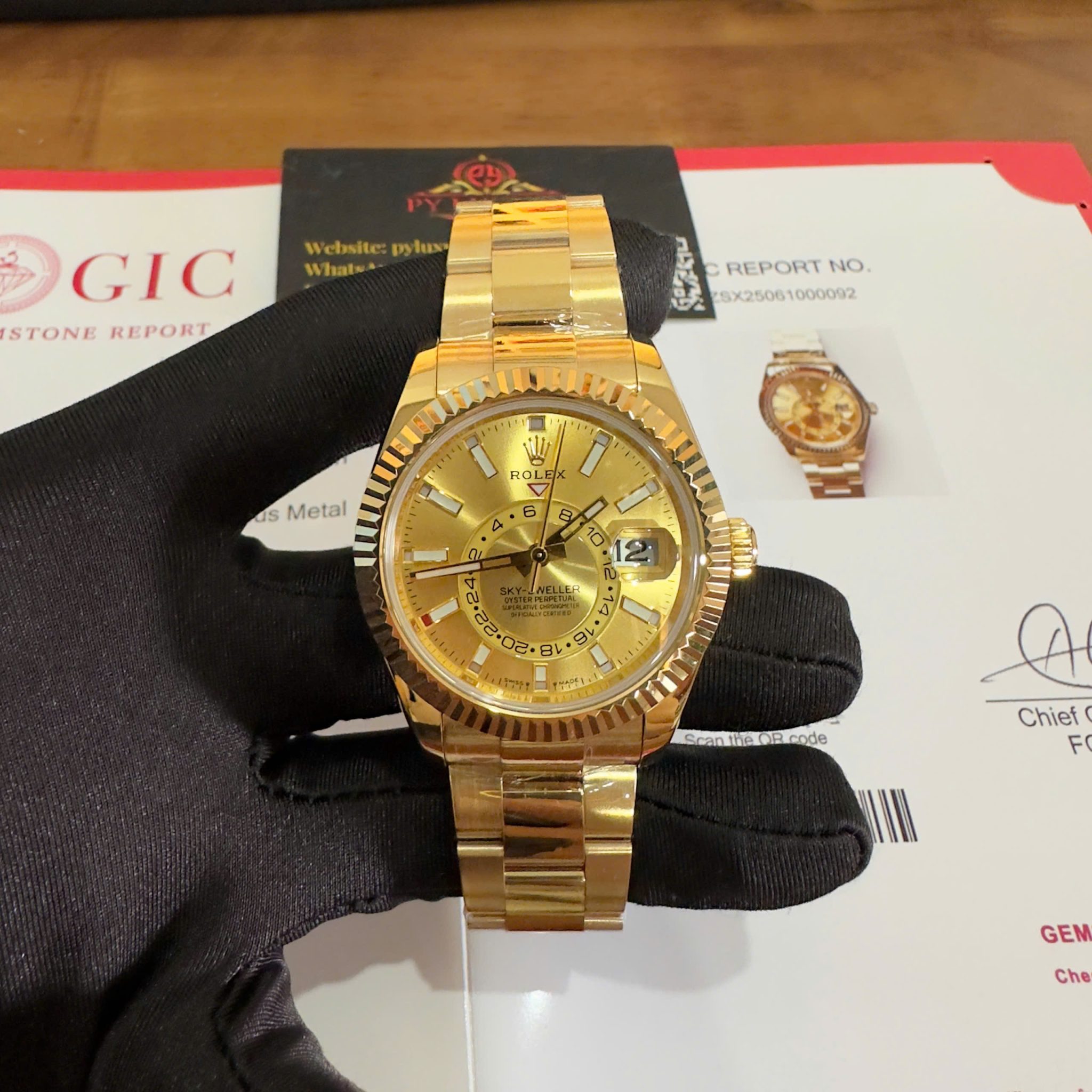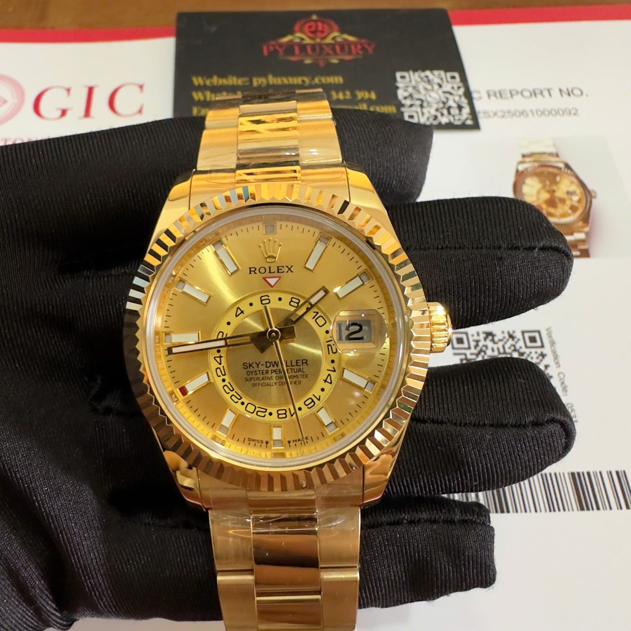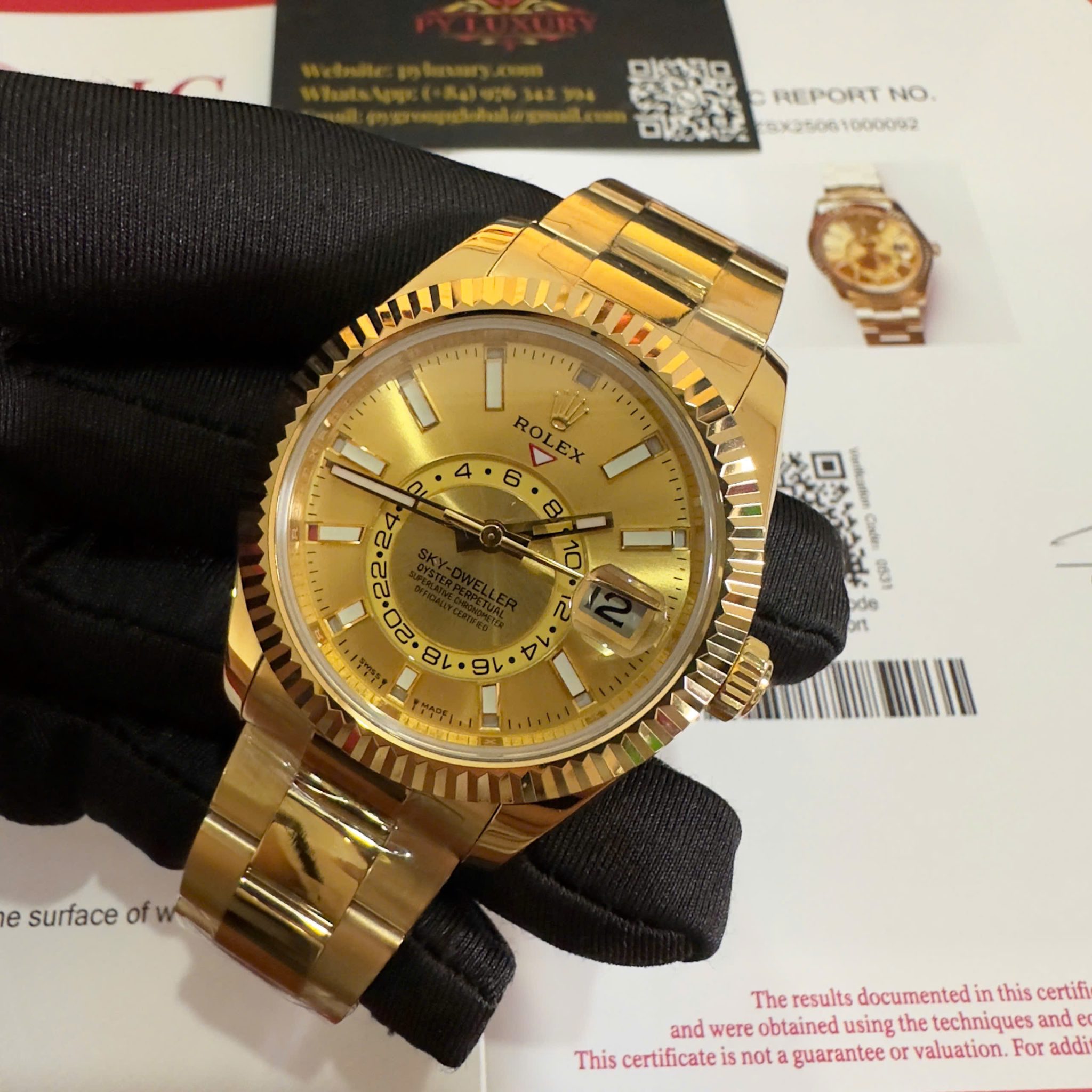 Đồng Hồ Rolex Sky-Dweller 326938 Mặt Champagne Bọc Vàng 18K Dây Oyster 42mm