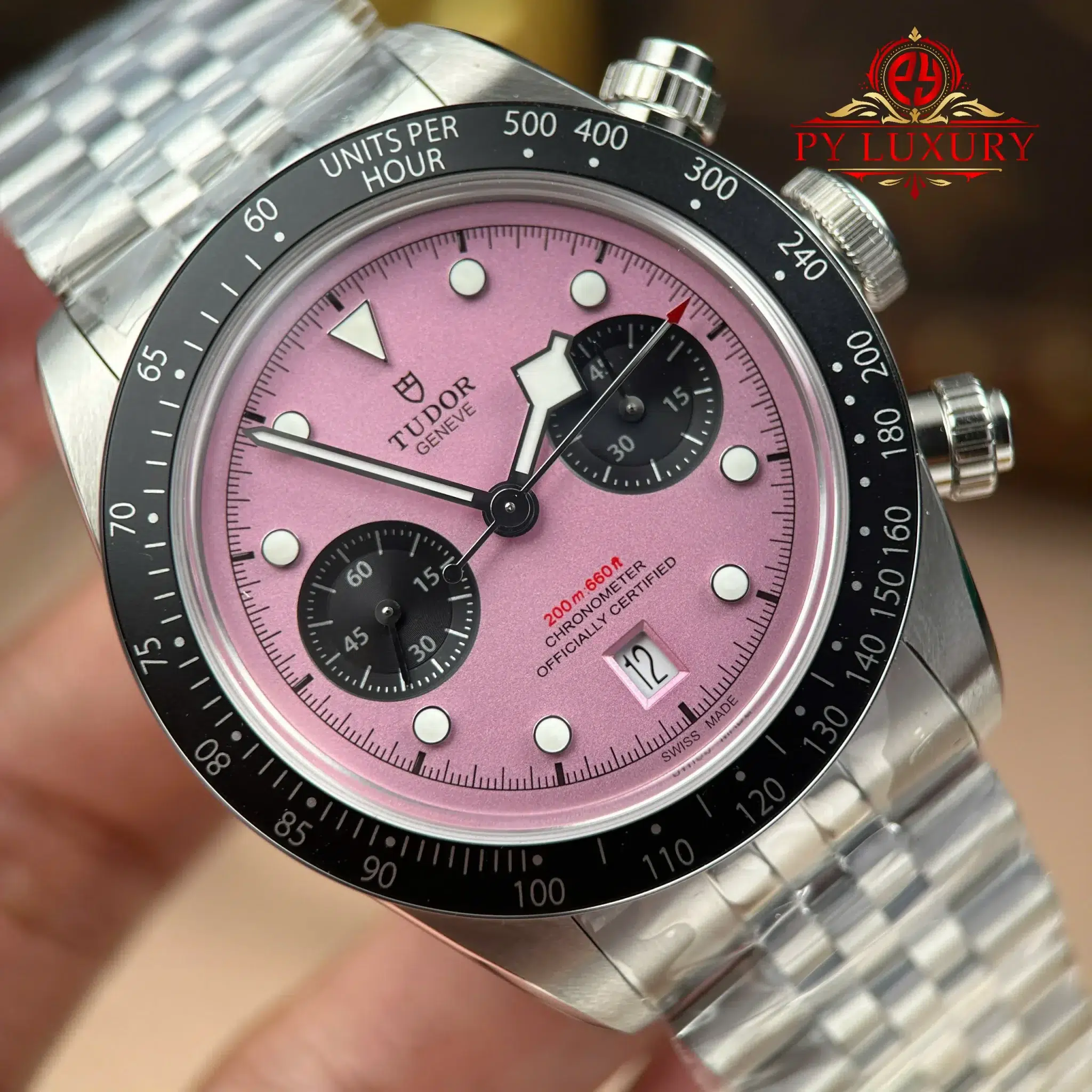Đồng Hồ Tudor Black Bay Chrono 79360N Mặt Số Hồng Dây Jubilee Replica TWF 41mm