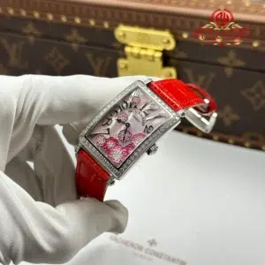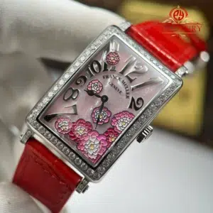 Franck Muller Long Island 952 QZ REL MOP RS D 1R PEONY Red Leather Strap Best Replica 26mm