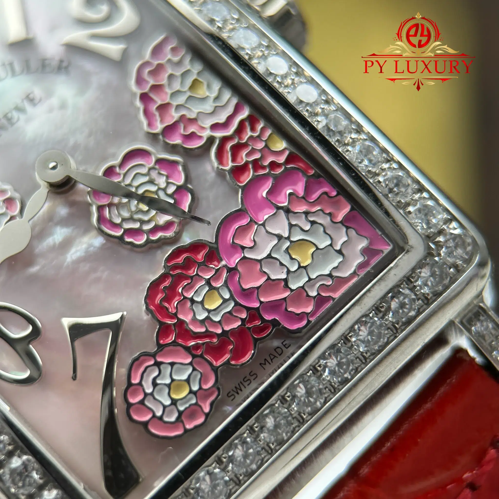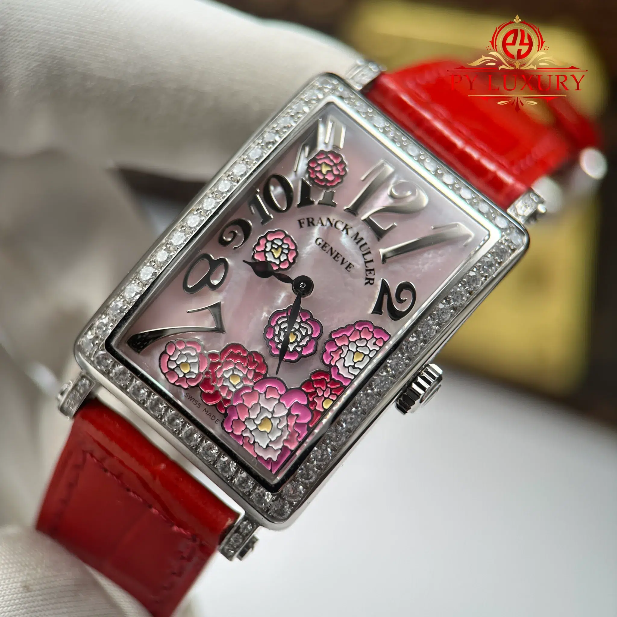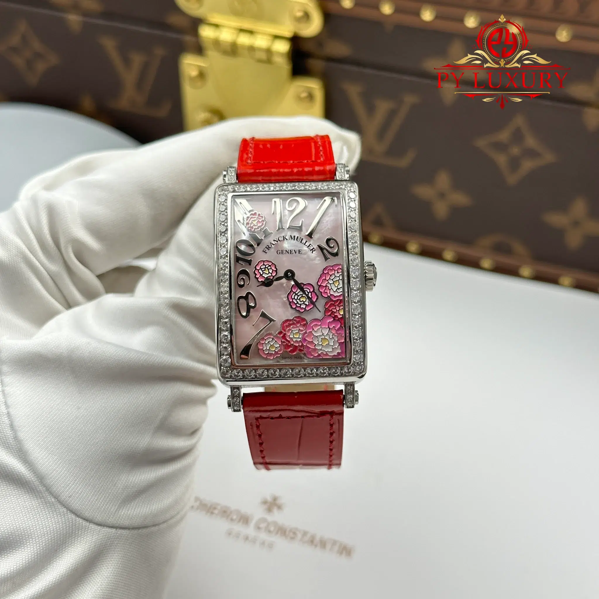 Franck Muller Long Island 952 QZ REL MOP RS D 1R PEONY Red Leather Strap Best Replica 26mm