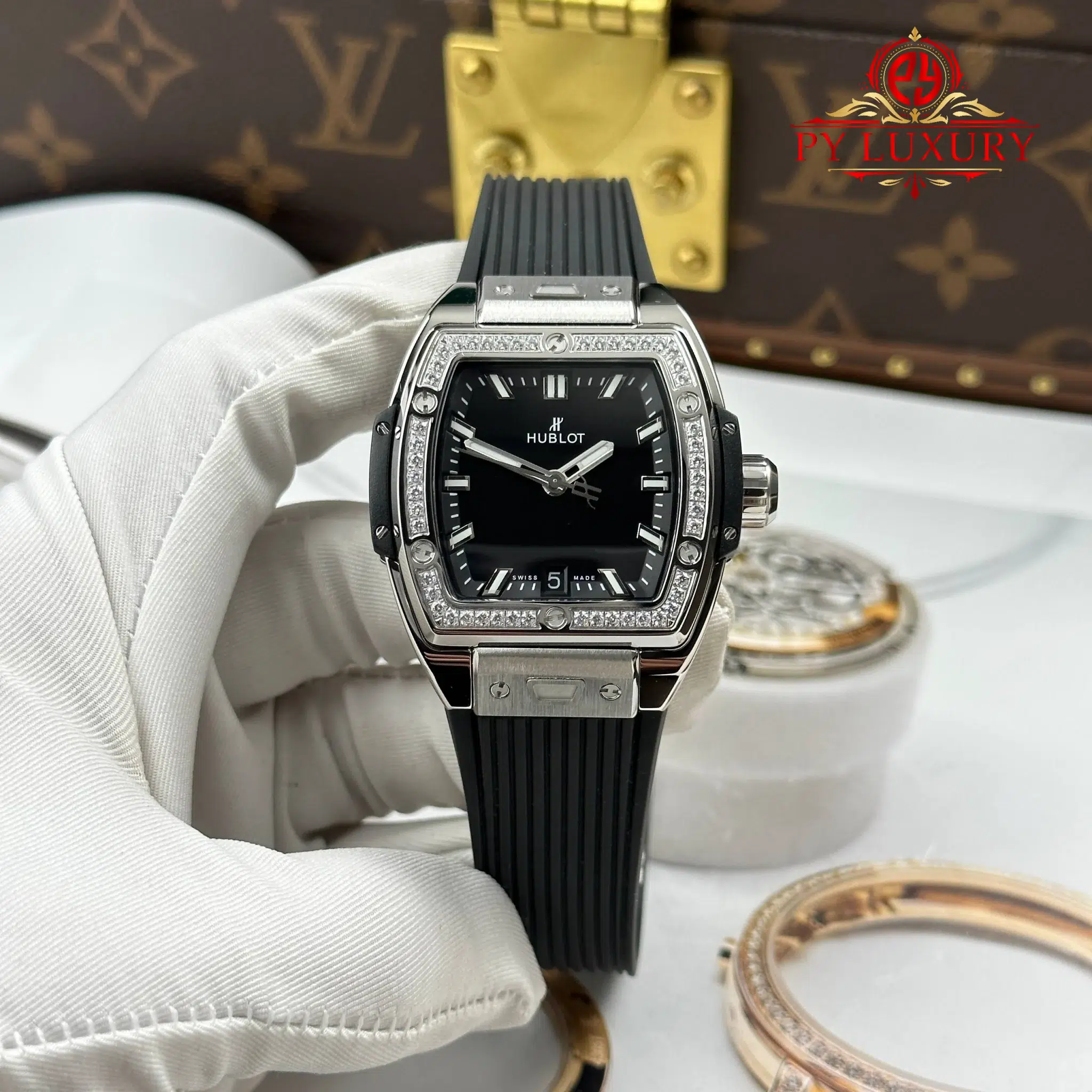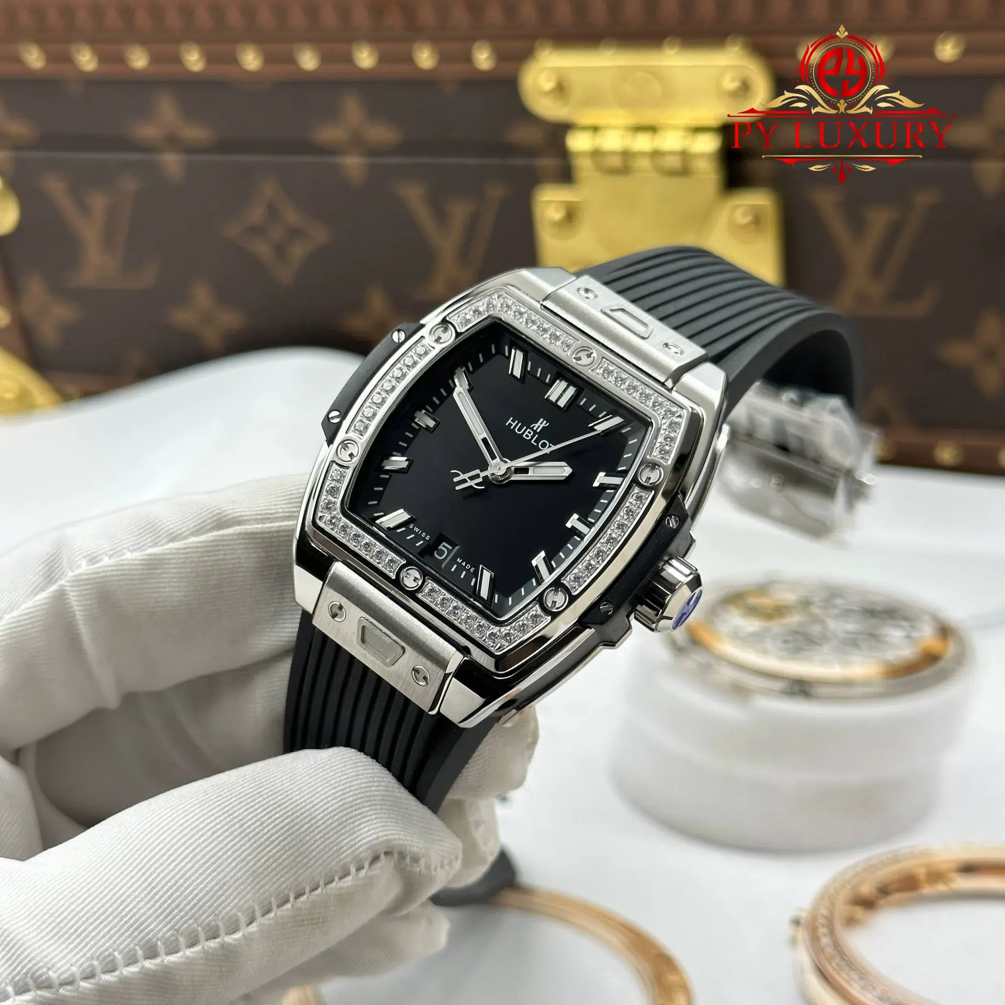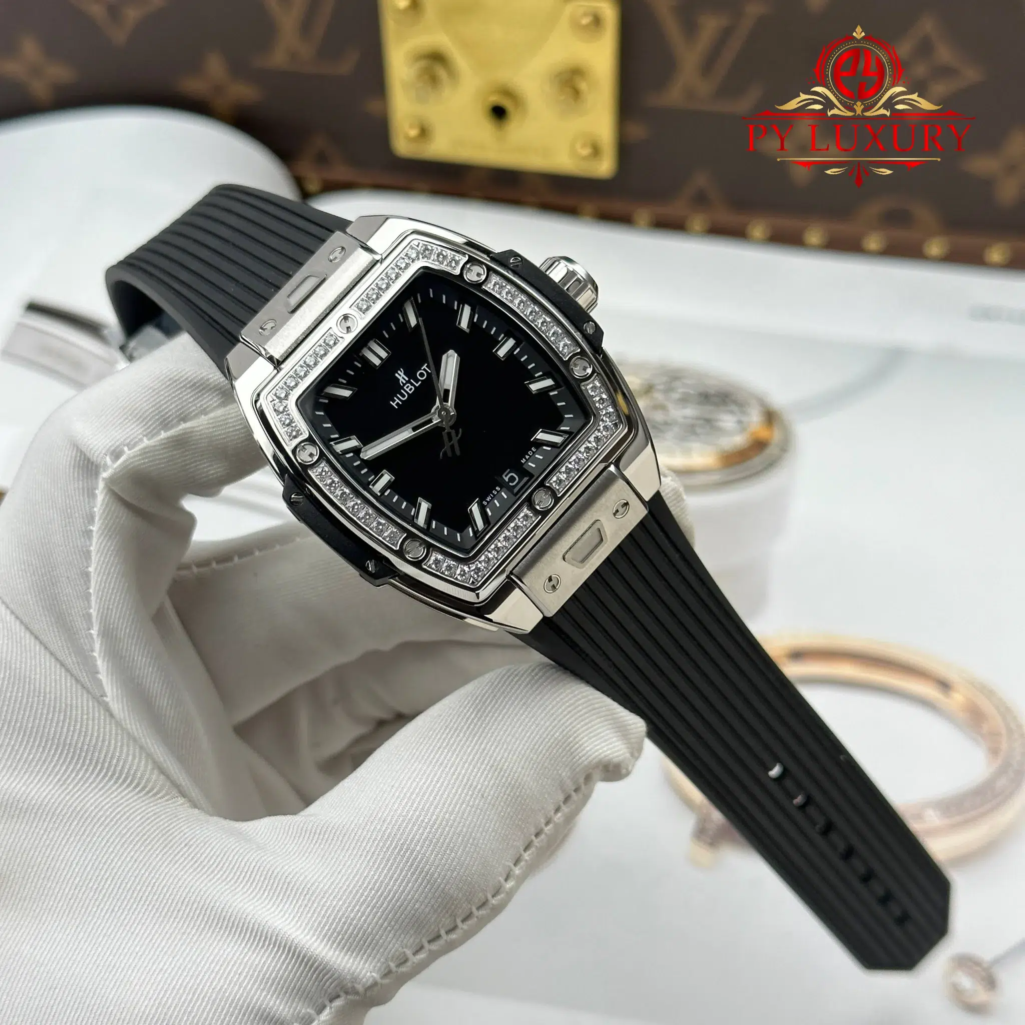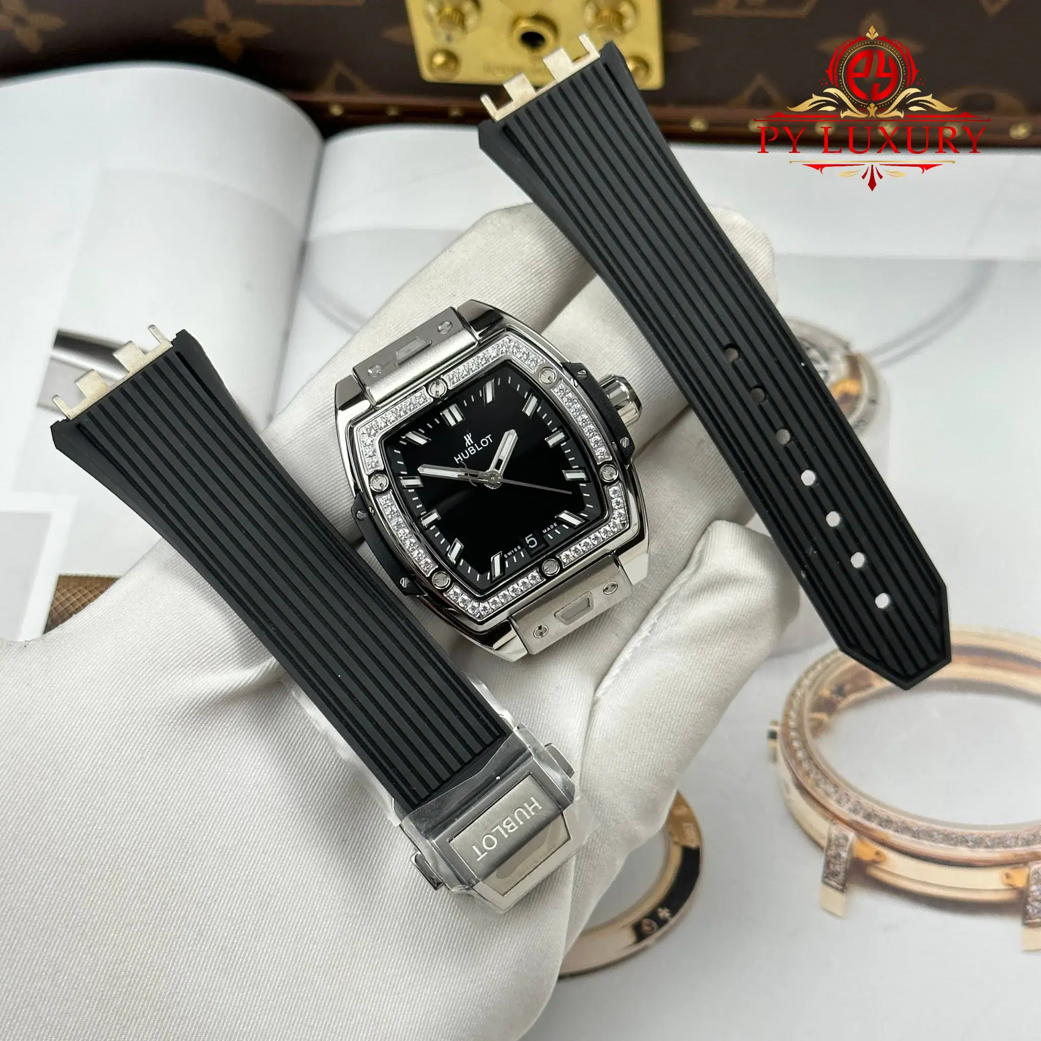 Hublot Spirit of Big Bang Titanium Diamonds Black Dial Rubber Strap Replica 39mm