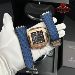 Video of the Hublot Square Bang Unico King Gold Blue Rubber Strap Best Replica BBF 42mm at Py-Luxury: