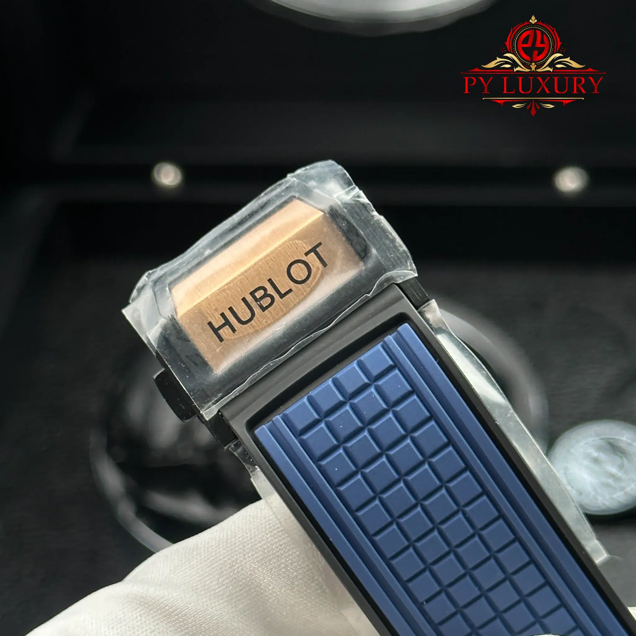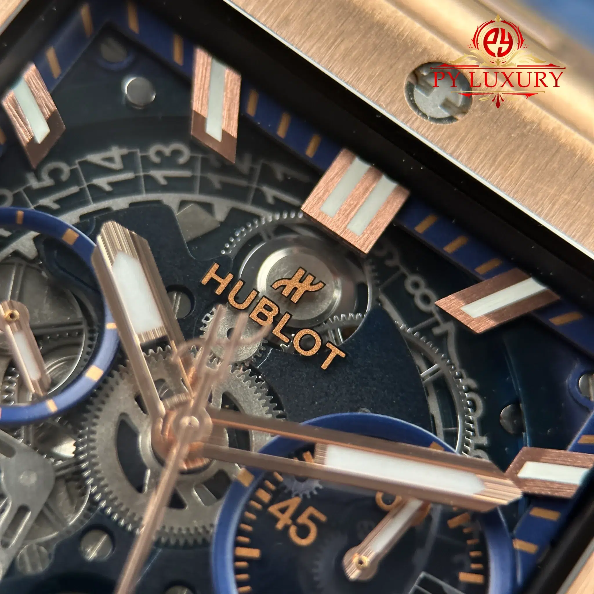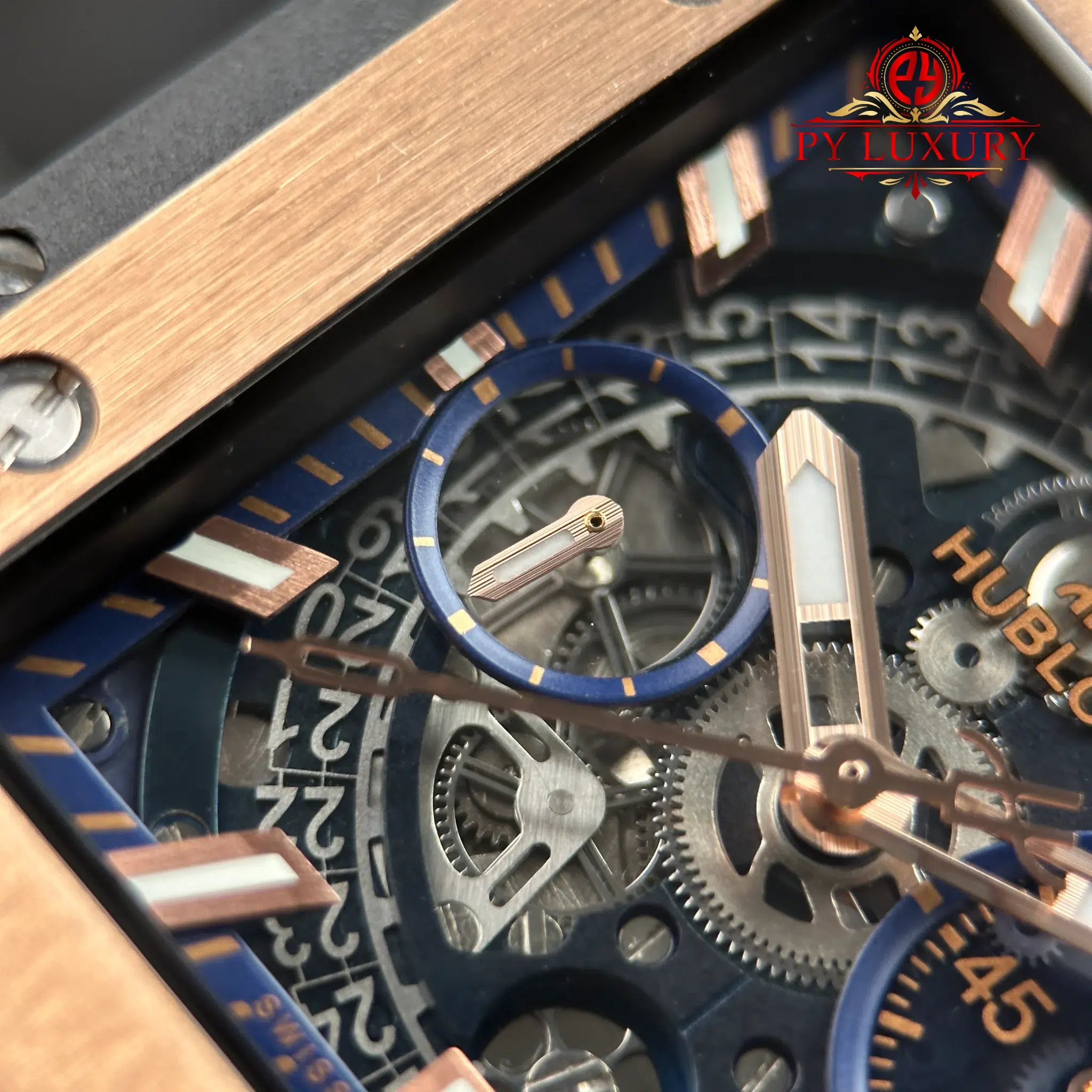Video of the Hublot Square Bang Unico King Gold Blue Rubber Strap Best Replica BBF 42mm at Py-Luxury: