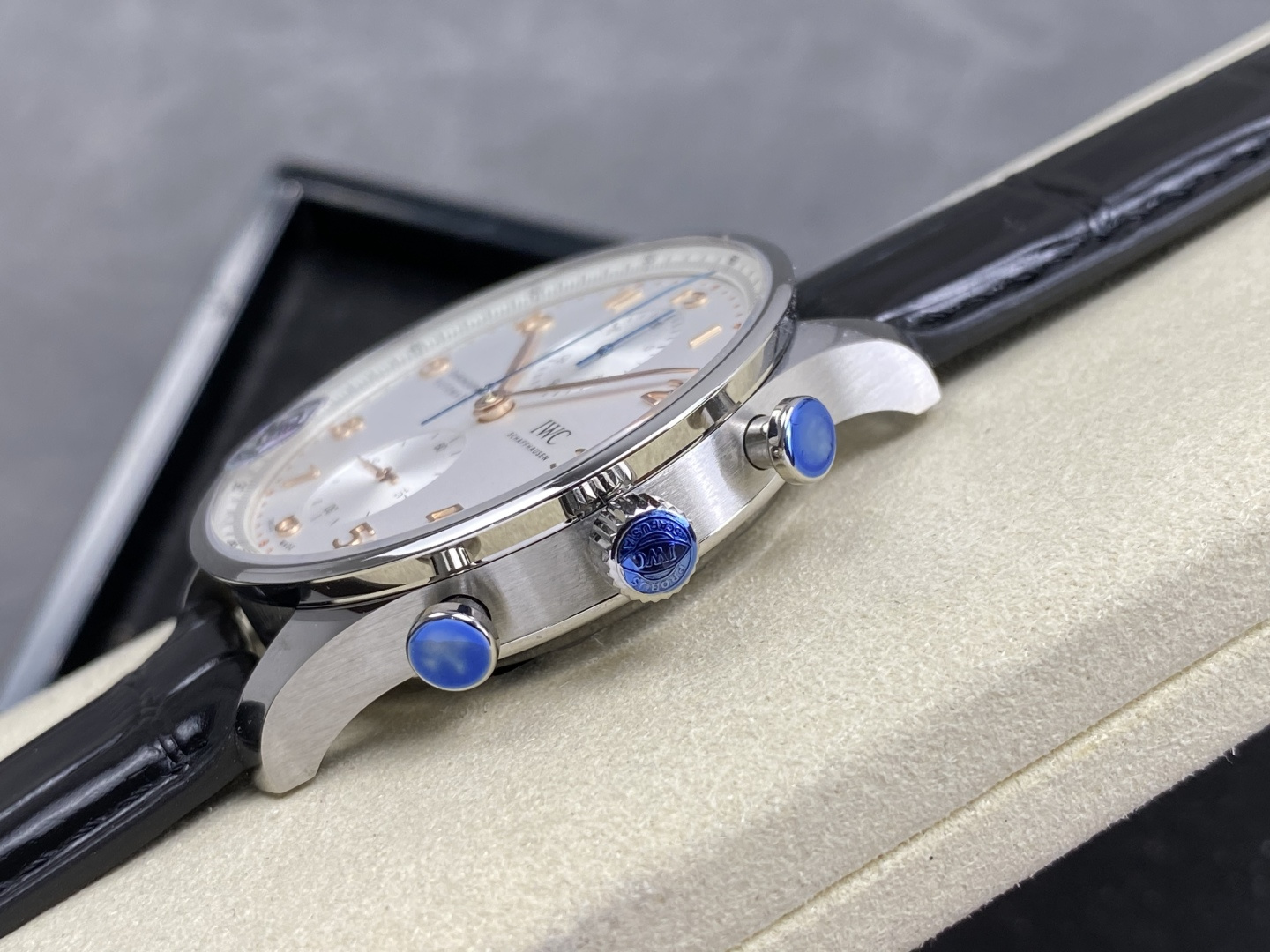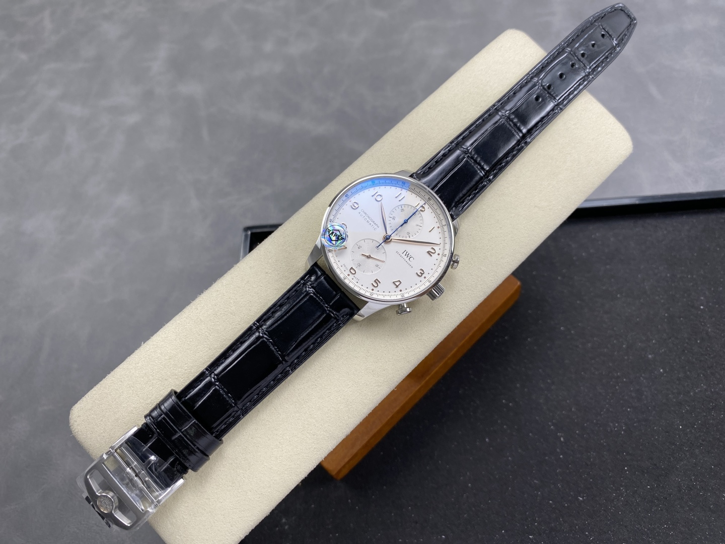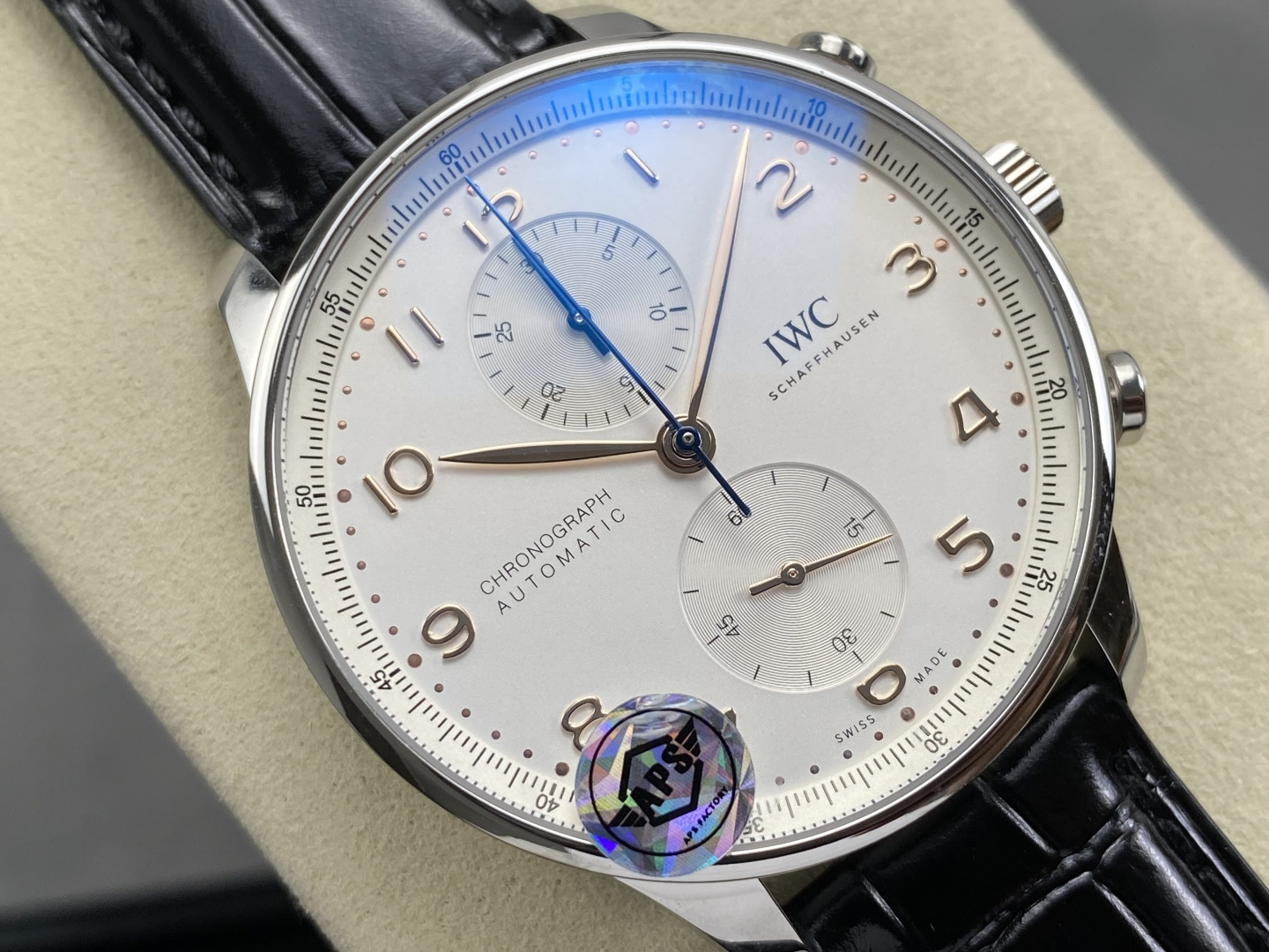 Video of the IWC Portugieser Chronograph IW371604 Silver Dial Black Leather Strap Super Clone 41mm from APS Factory: