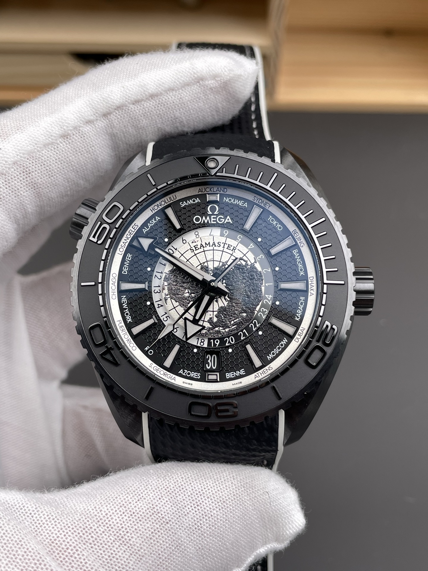 Omega Seamaster Planet Ocean 600M GMT Worldtimer Black & Grey Dial Best Replica VSF 45.5mm