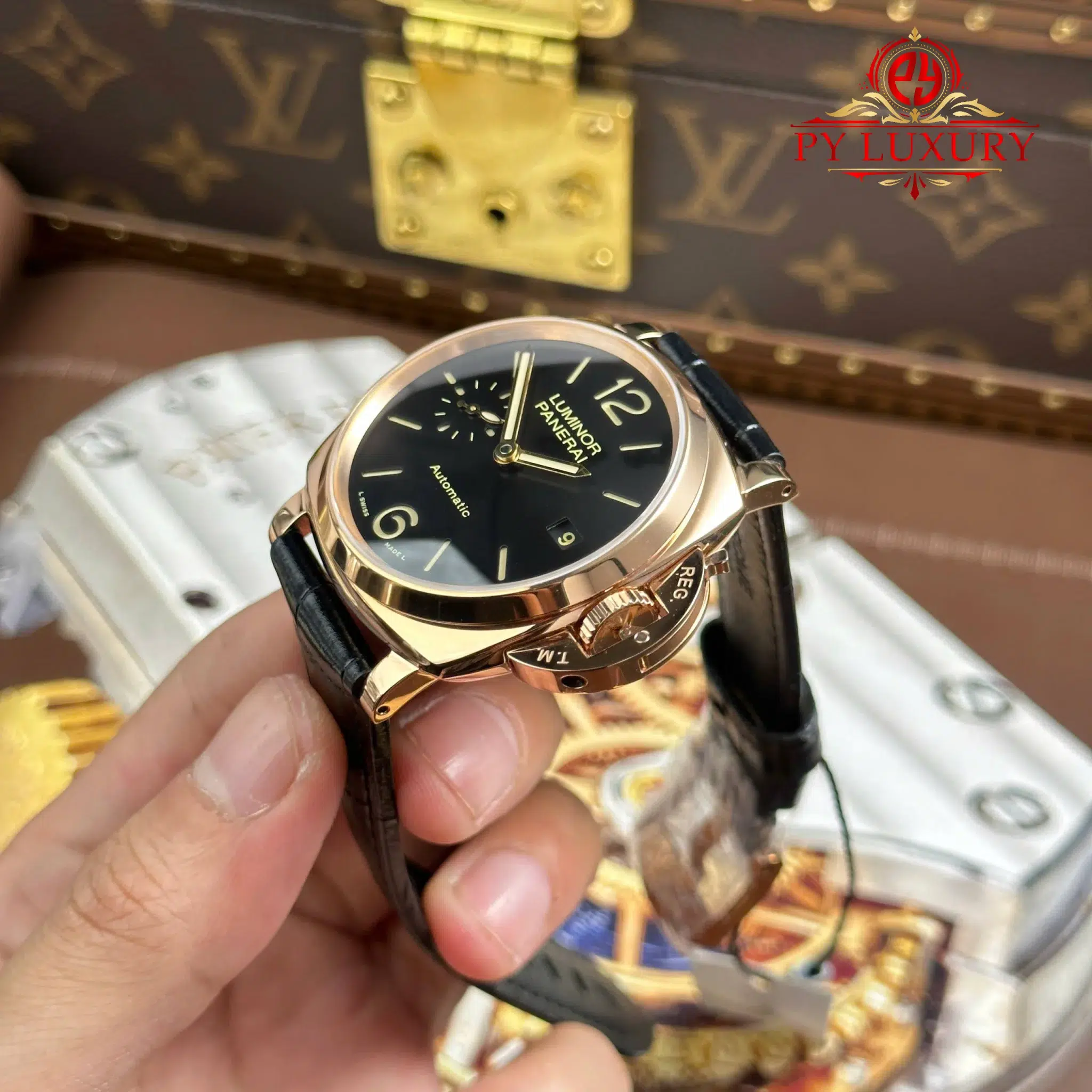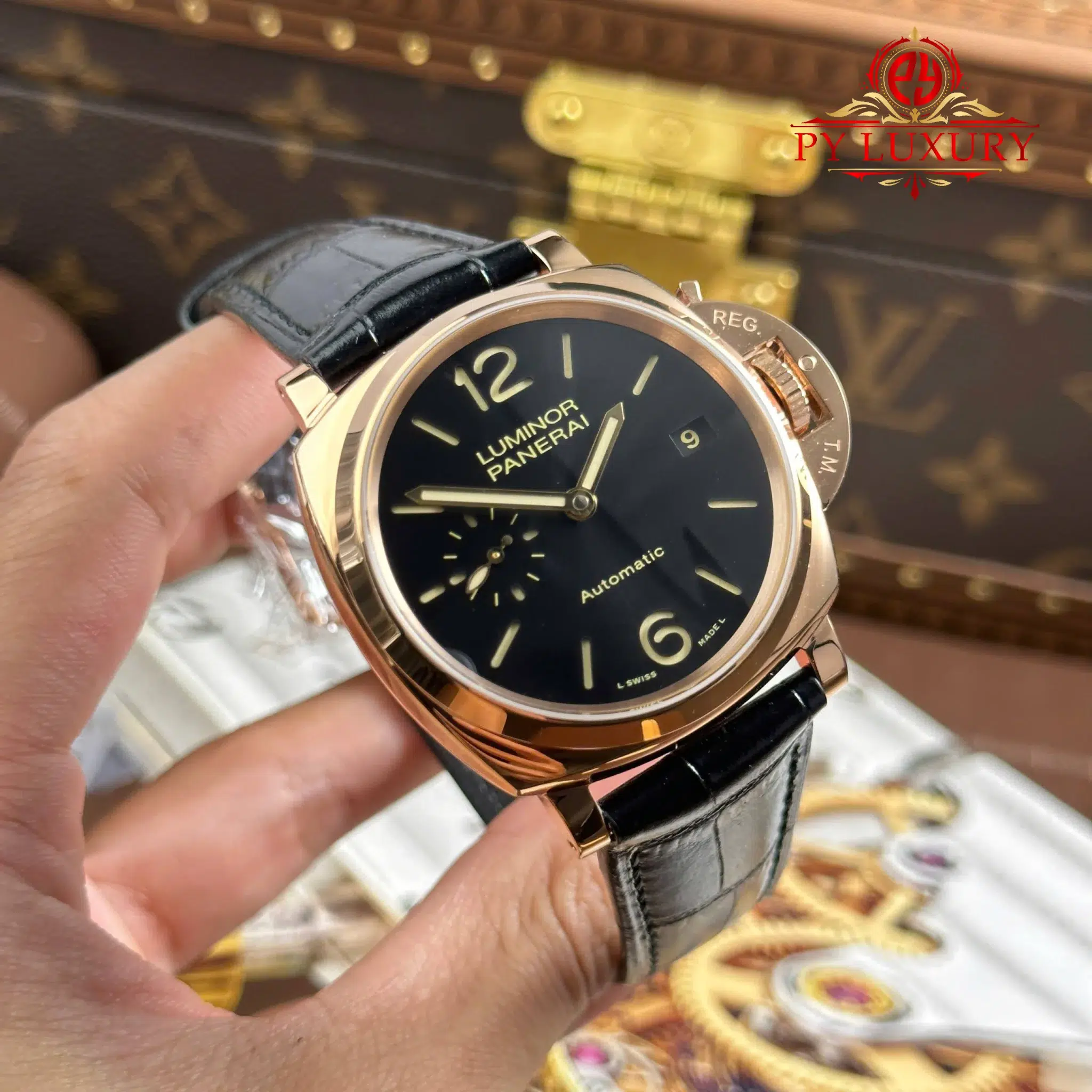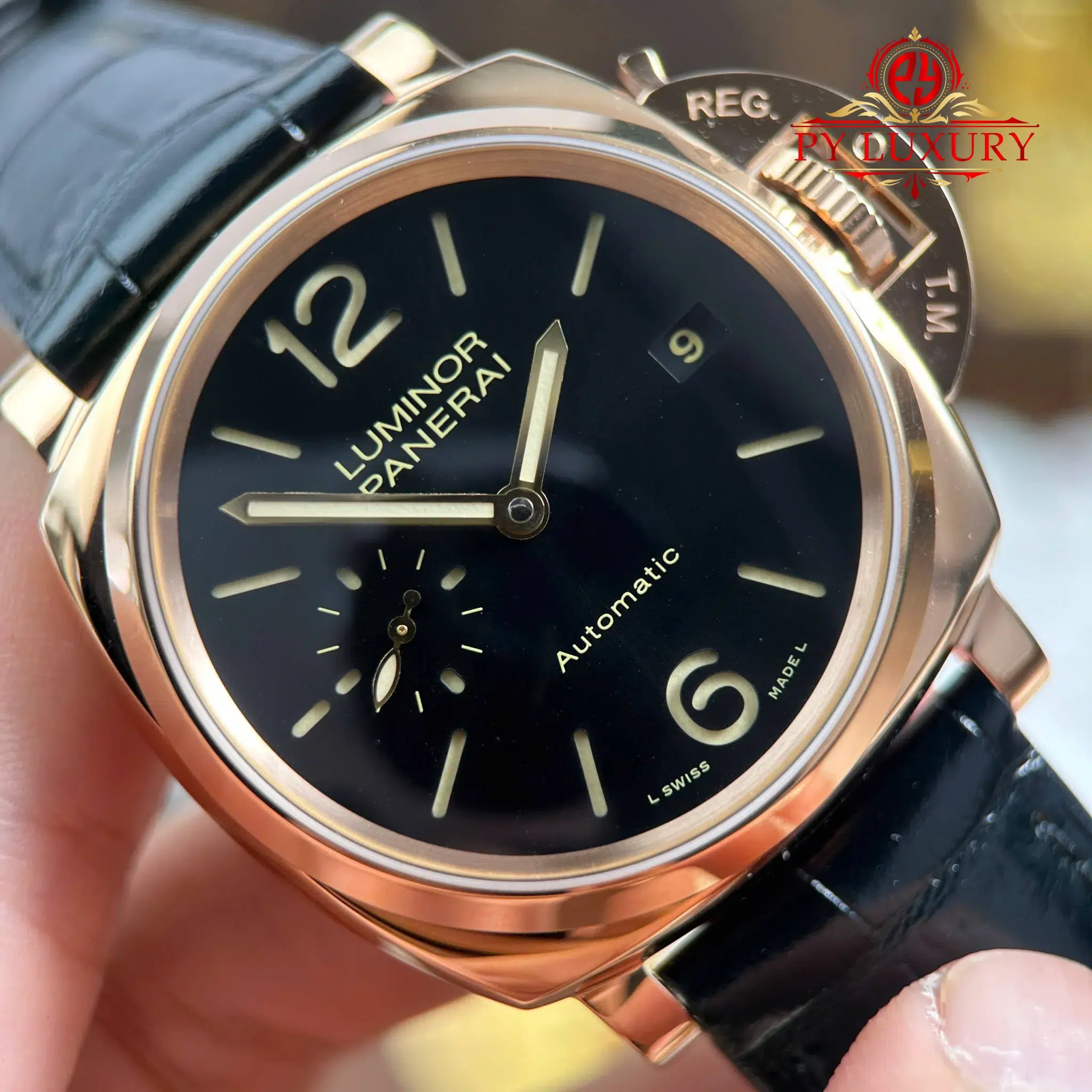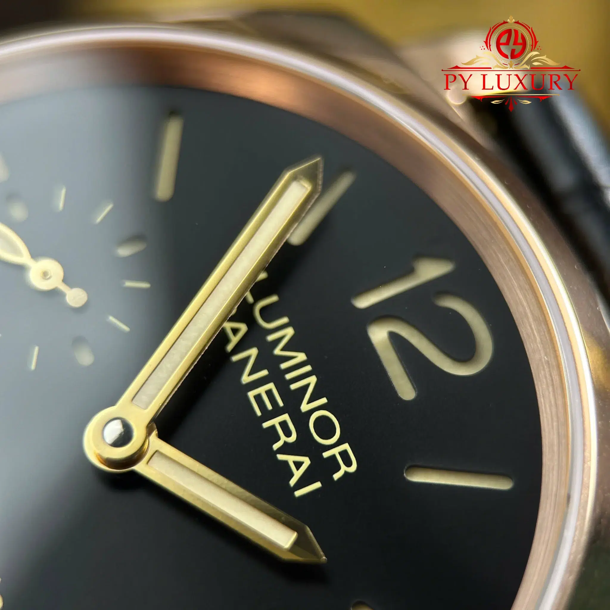 Panerai Luminor Due PAM908 Rose Gold Black Dial Leather Strap 1:1 Best Replica VSF 38mm
