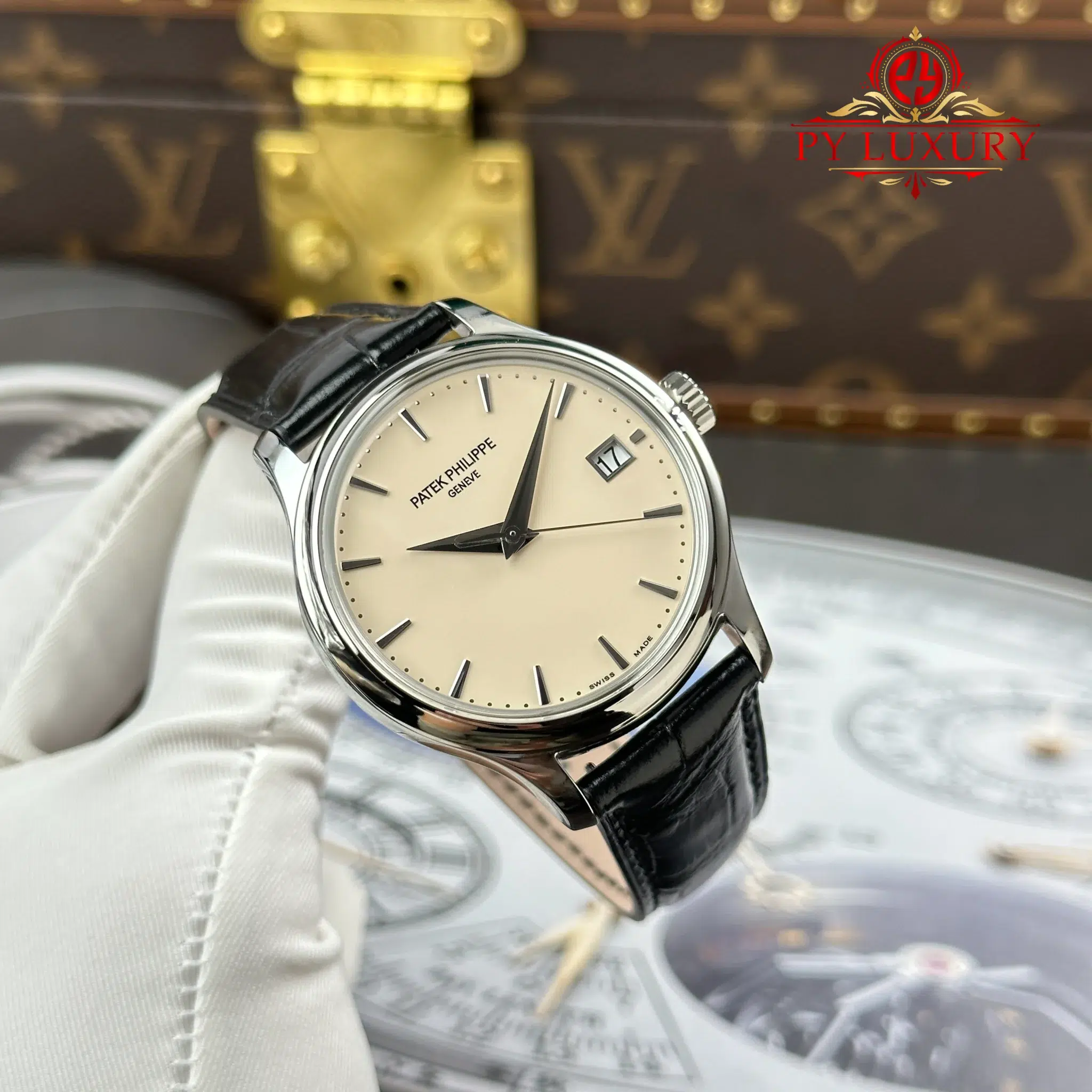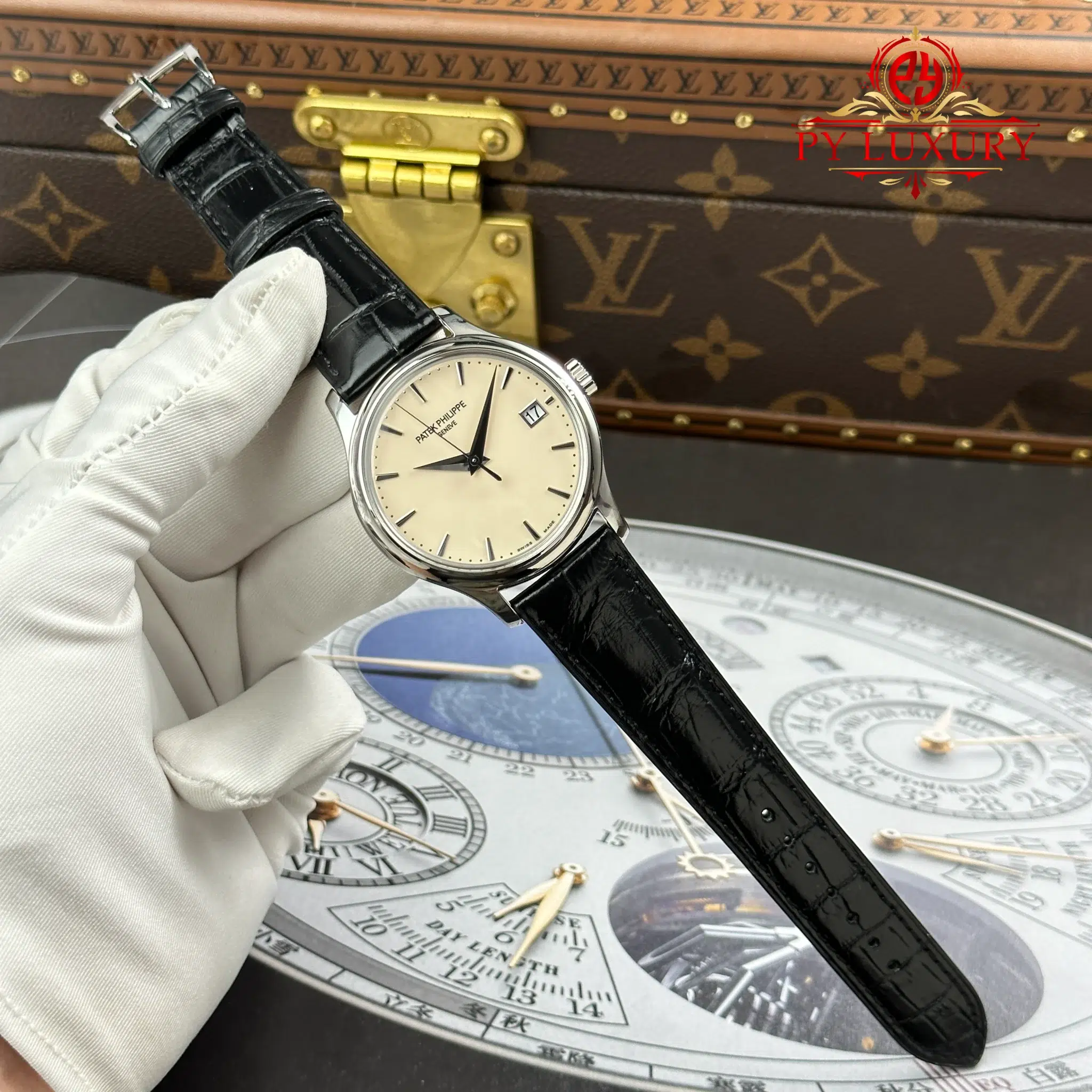 Video of the Patek Philippe Calatrava 5227G-001 Cream Dial Leather Strap 1:1 Replica from 3K Factory at Py-Luxury: