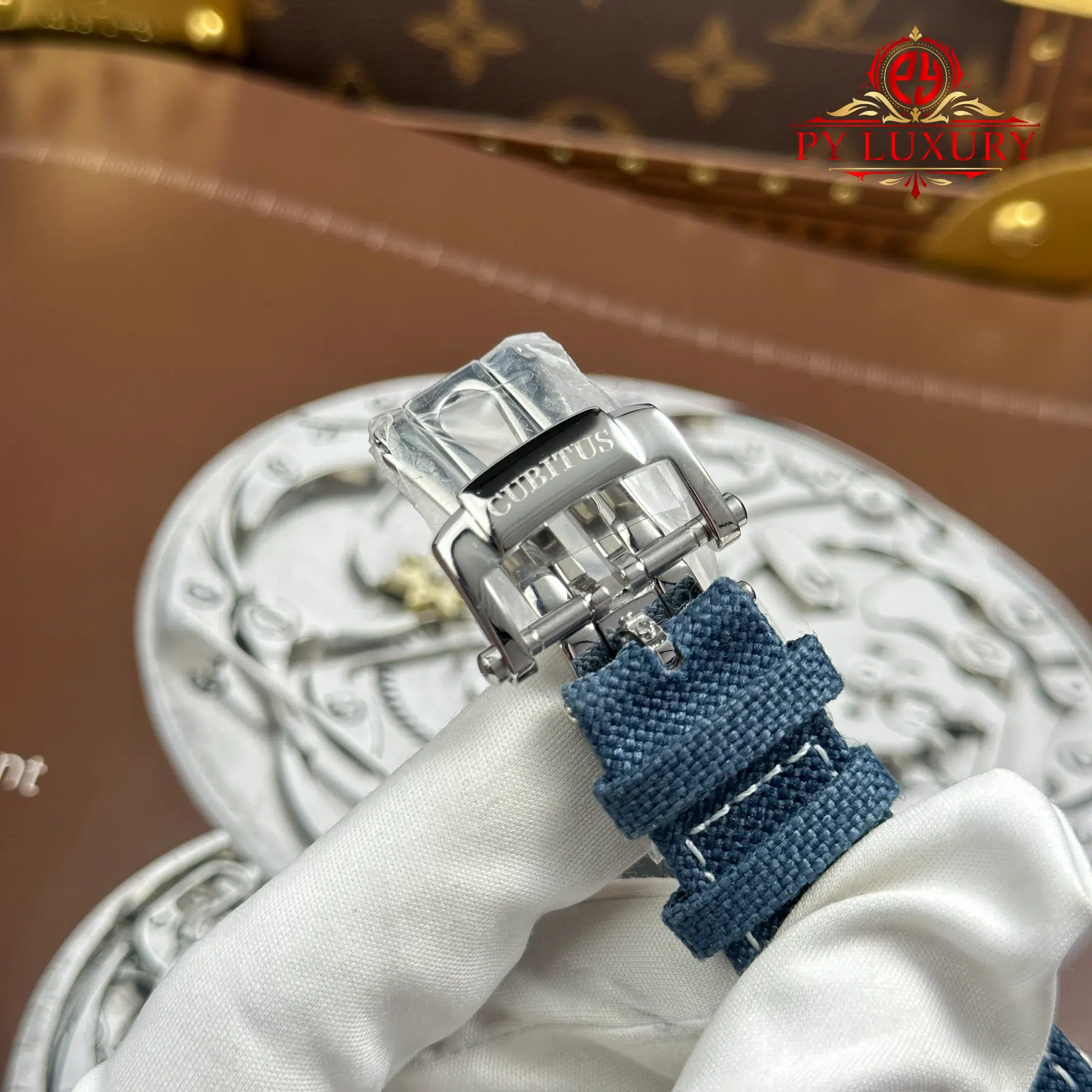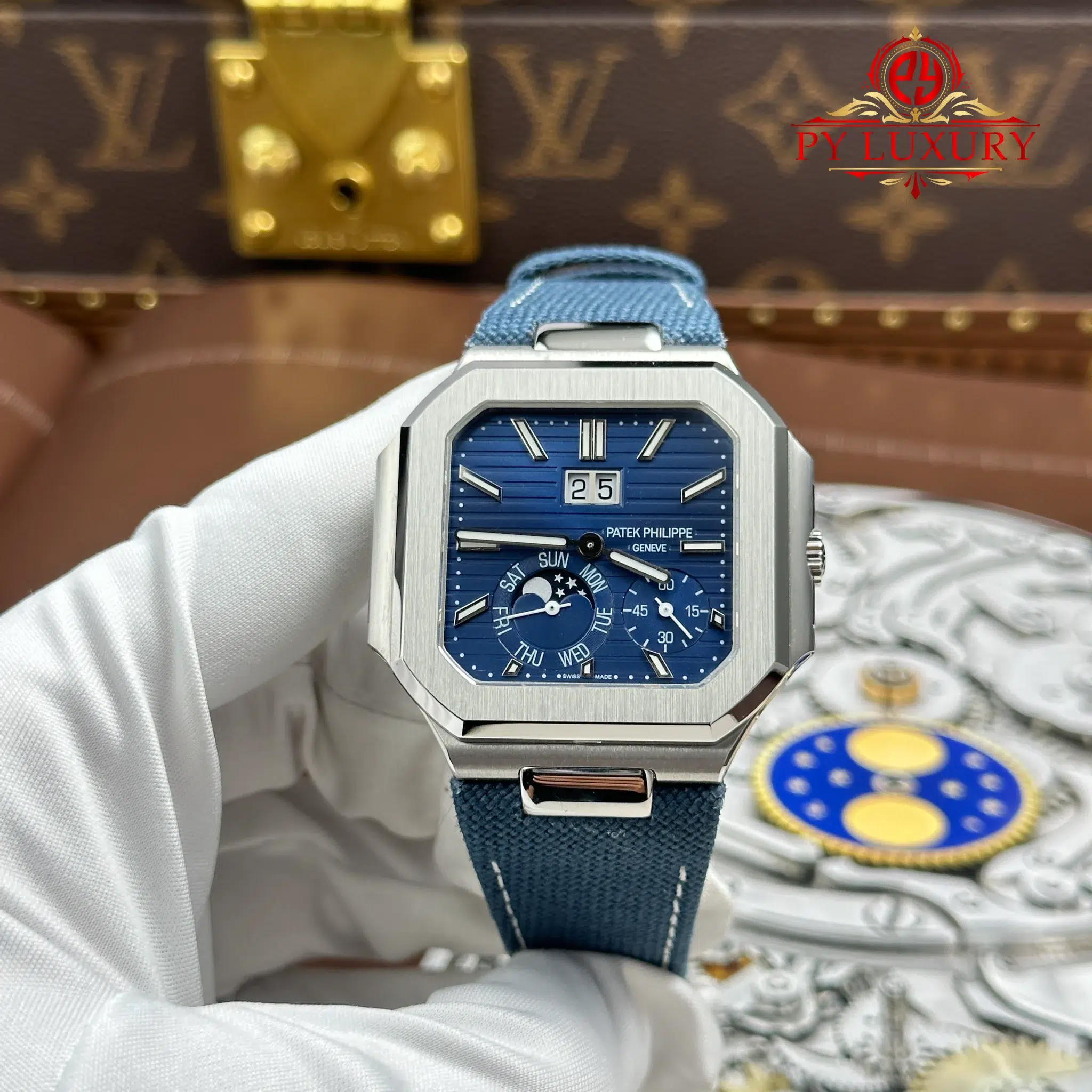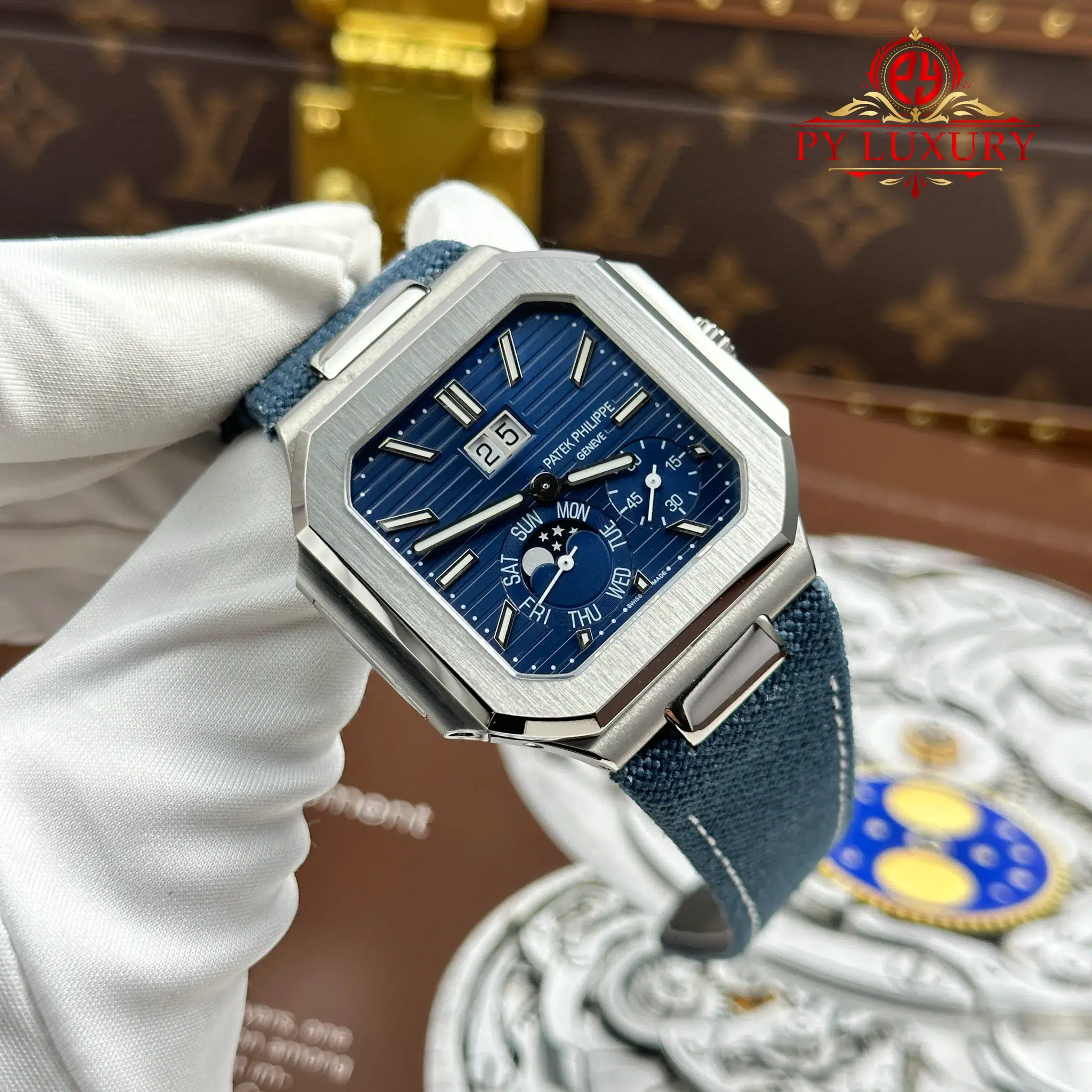 Video of the Patek Philippe Cubitus 5822P-001 Blue Dial Textile Strap 1:1 Best Replica 45mm at Py-Luxury: