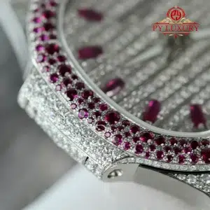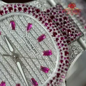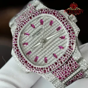 Patek Philippe Ladies Natilus 7118/1452G-001 Iced Out Moissanite & Rubies Best Replica 35.2mm