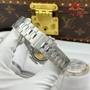With a diameter of 40mm, it sits in the middle ground, neither too large nor too small. Atop this timepiece is a sapphire crystal acting as a shield, providing an “invincible” strength to the Patek Philippe Nautilus 5712/1A-001.