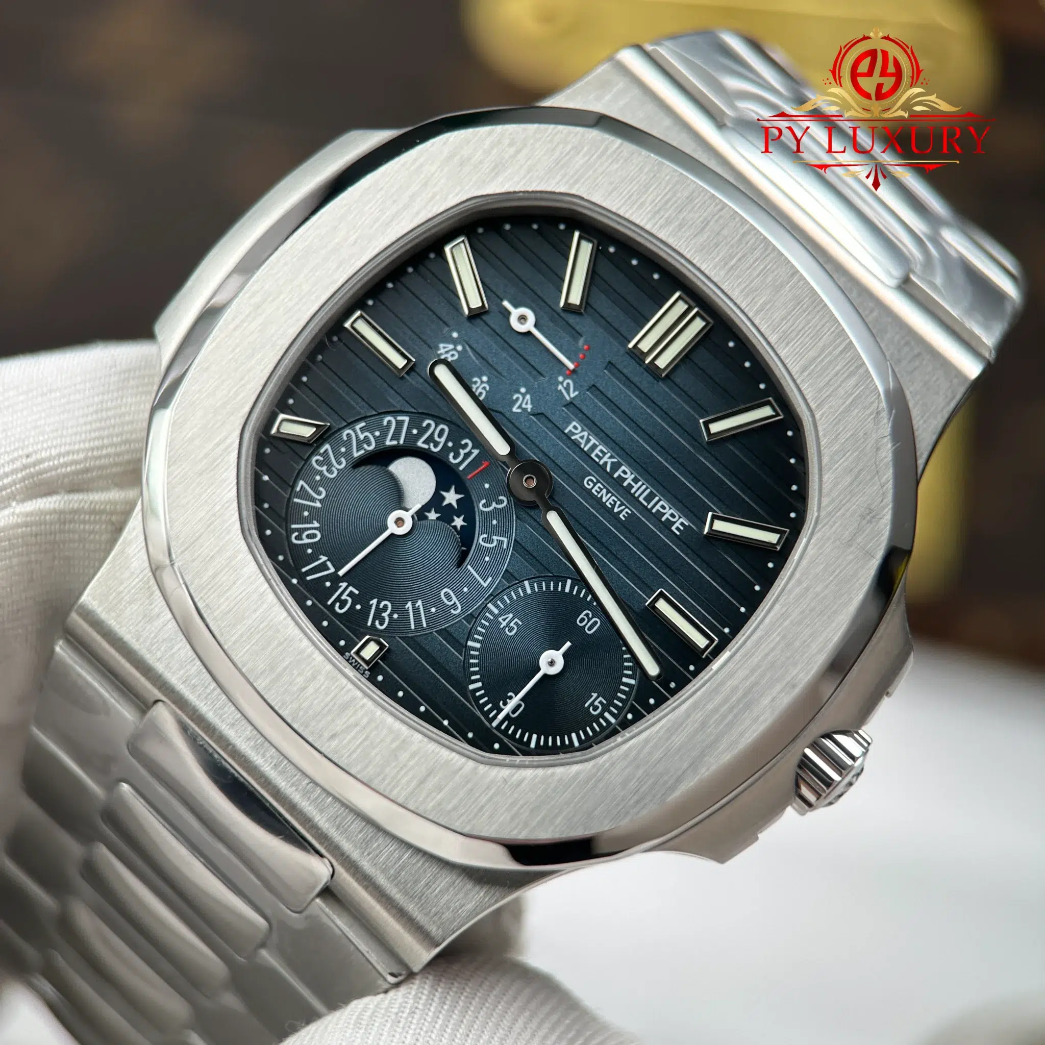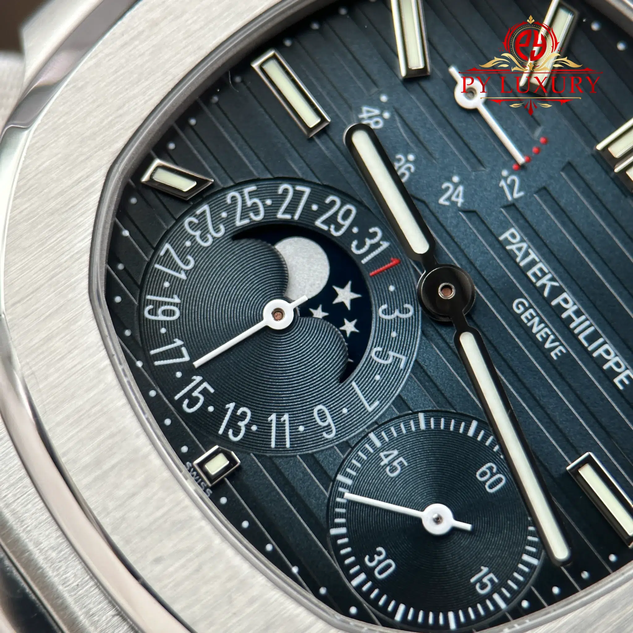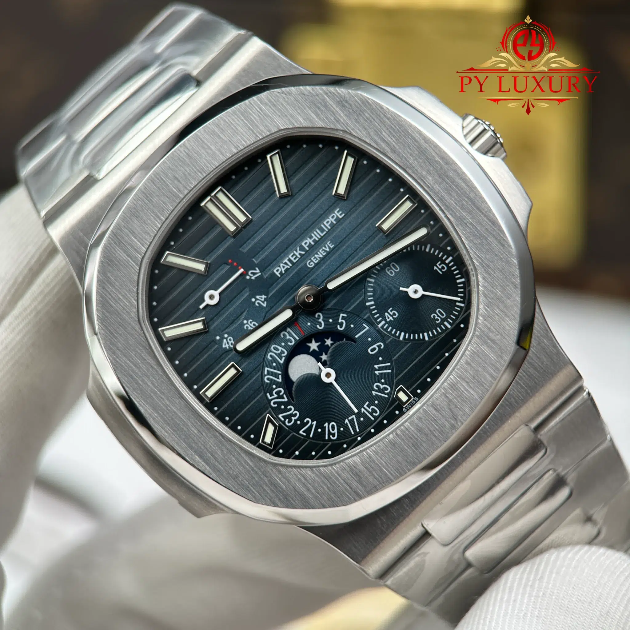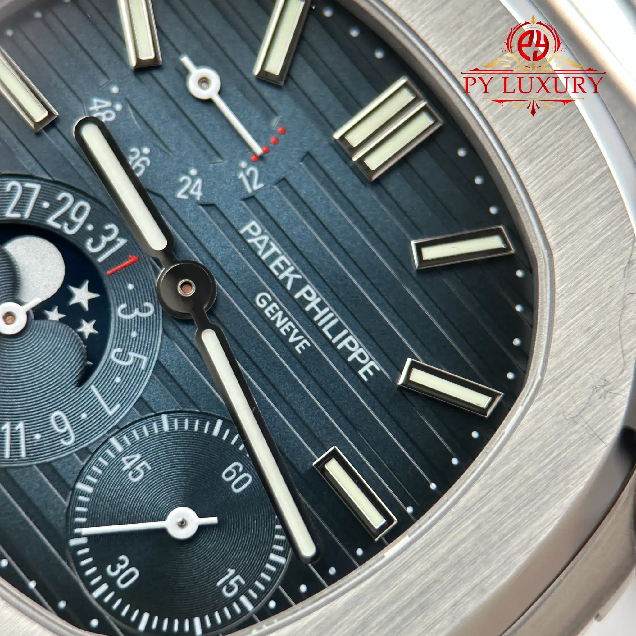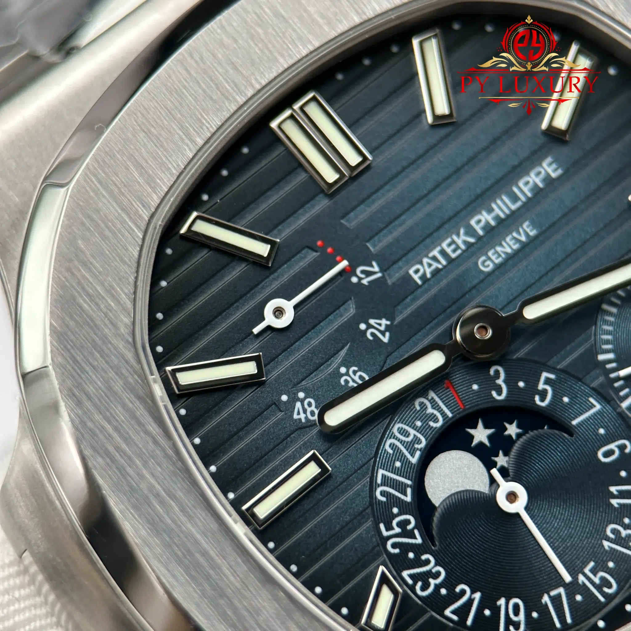 Explore the details of the Patek Philippe Nautilus 5712/1A-001 Blue Dial Replica 1:1 Version V3, complete with all functions, from the PPF factory at Py-Luxury: