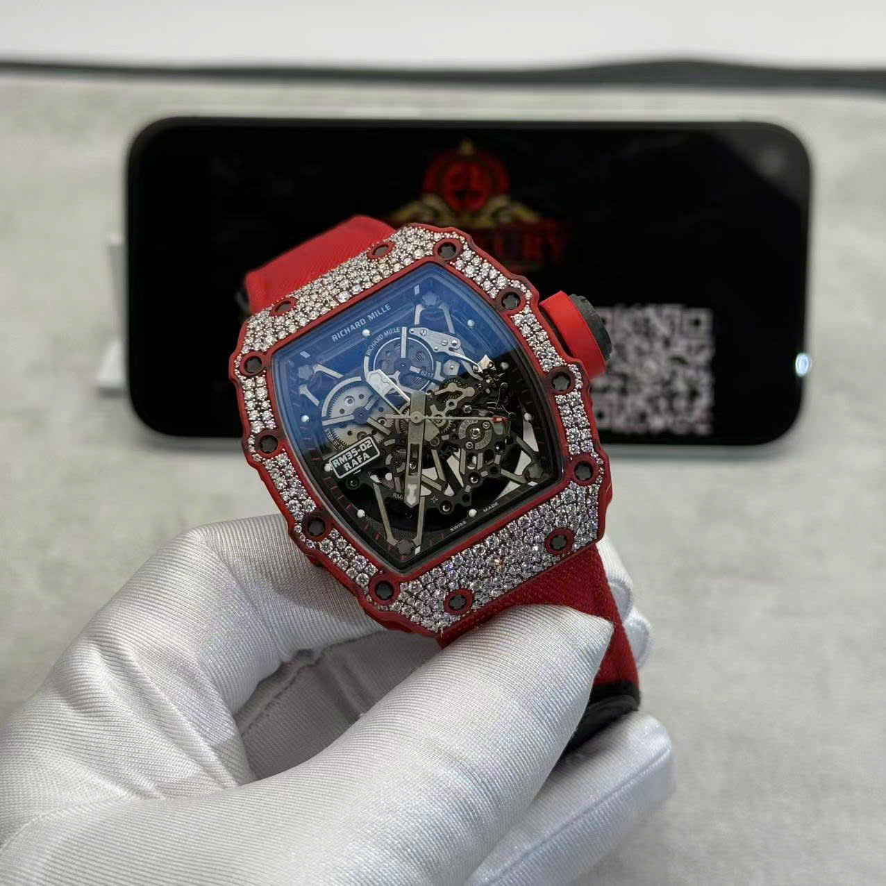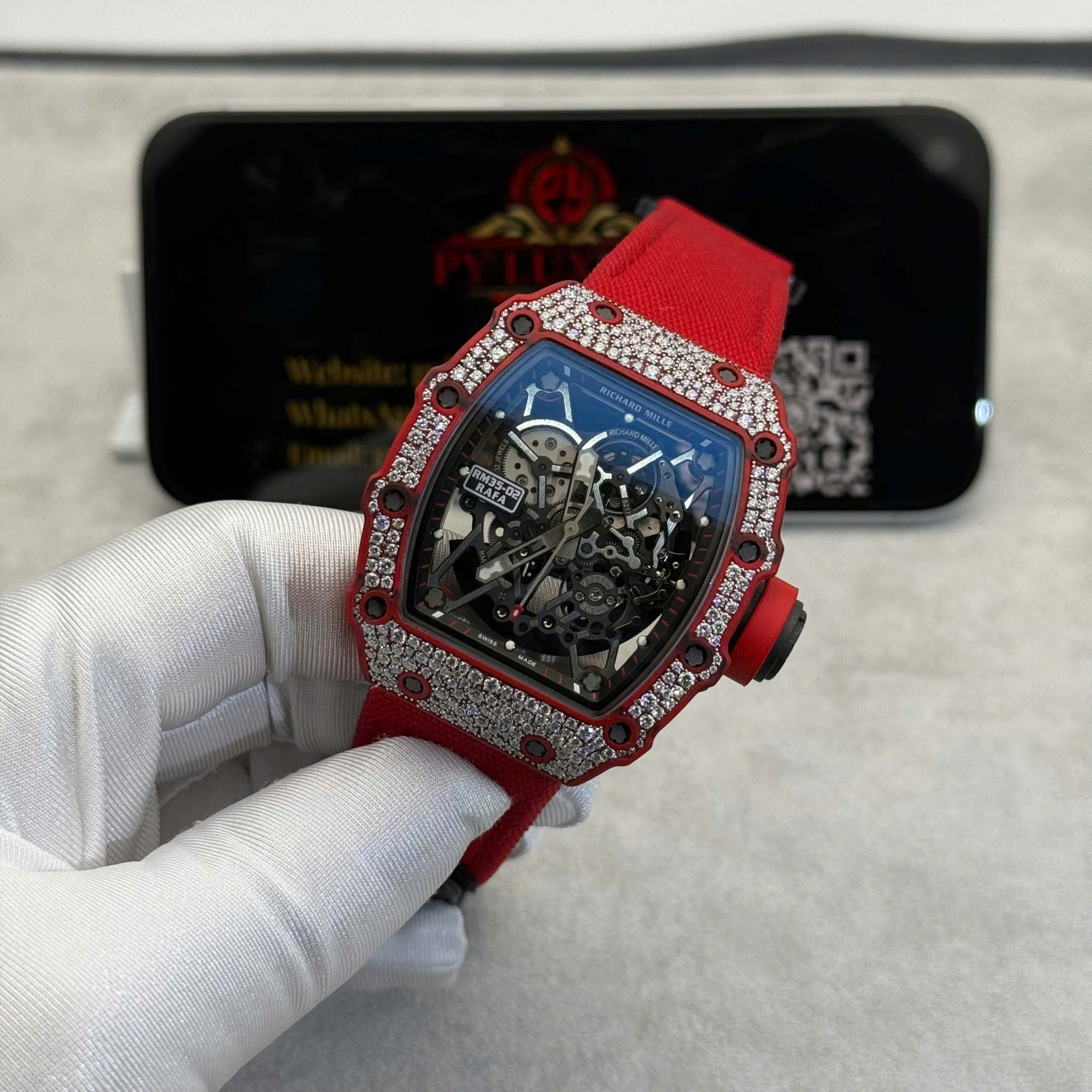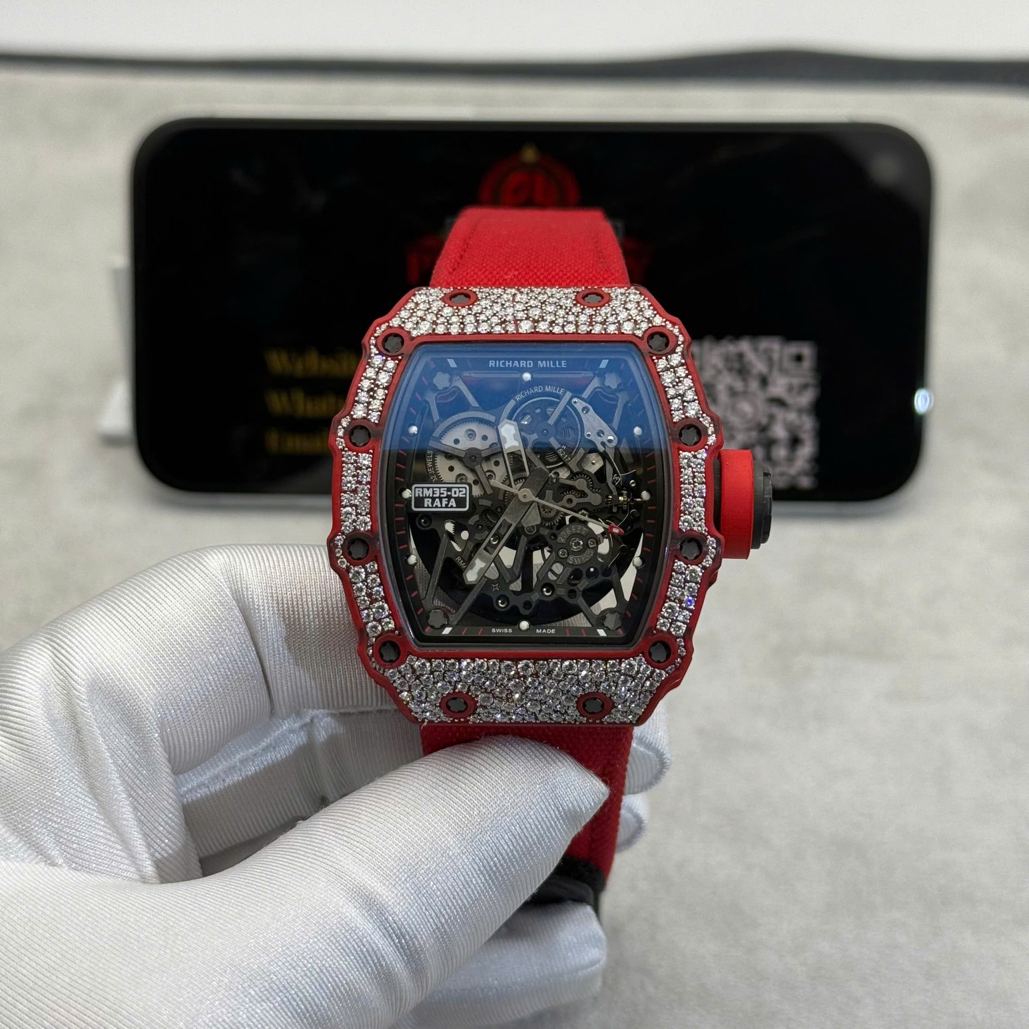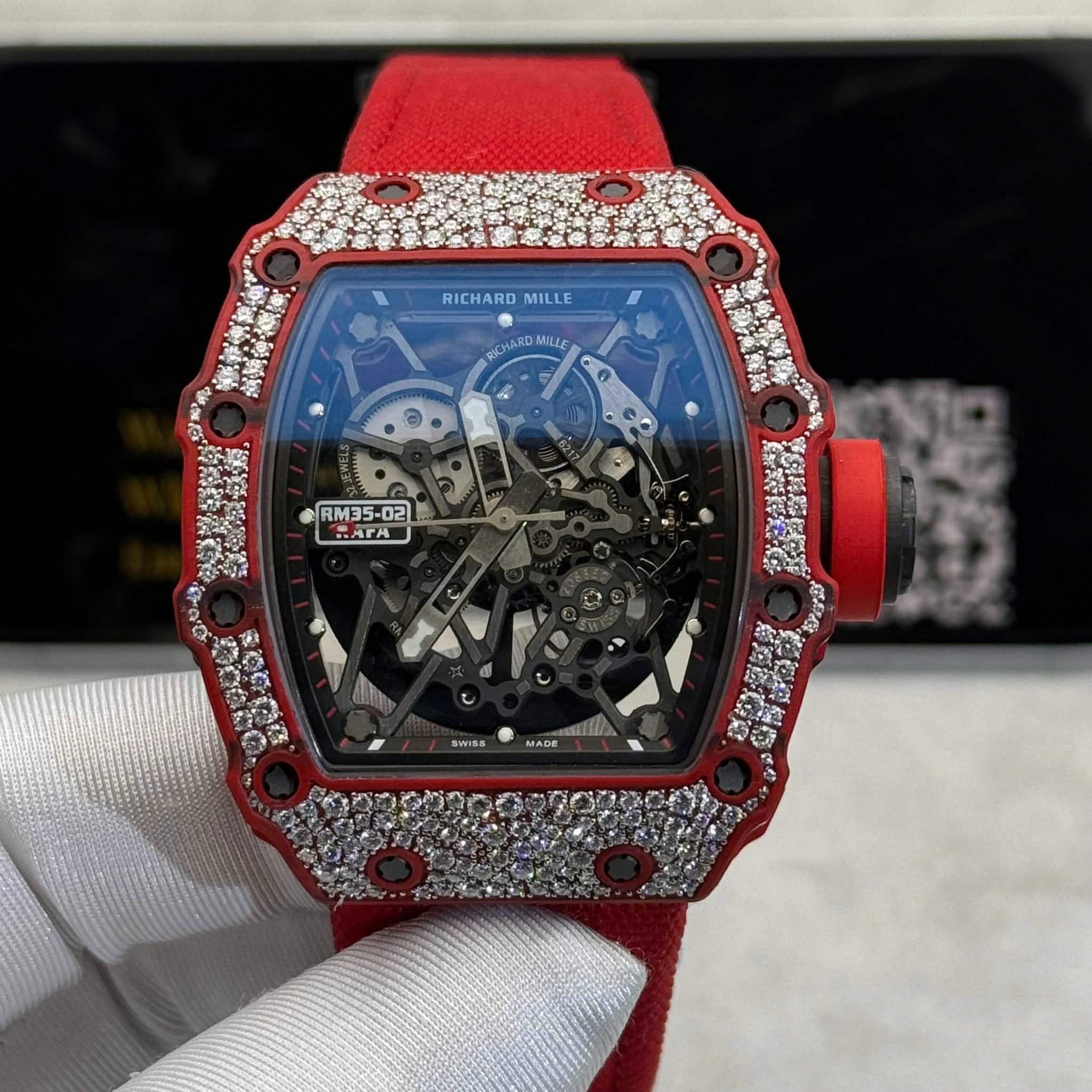Richard Mille RM 35-02 Red Quartz TPT Custom Made 1:1 Snow Diamond Vaucher Movement Exclusive Quality 49.94mm x 44.5mm