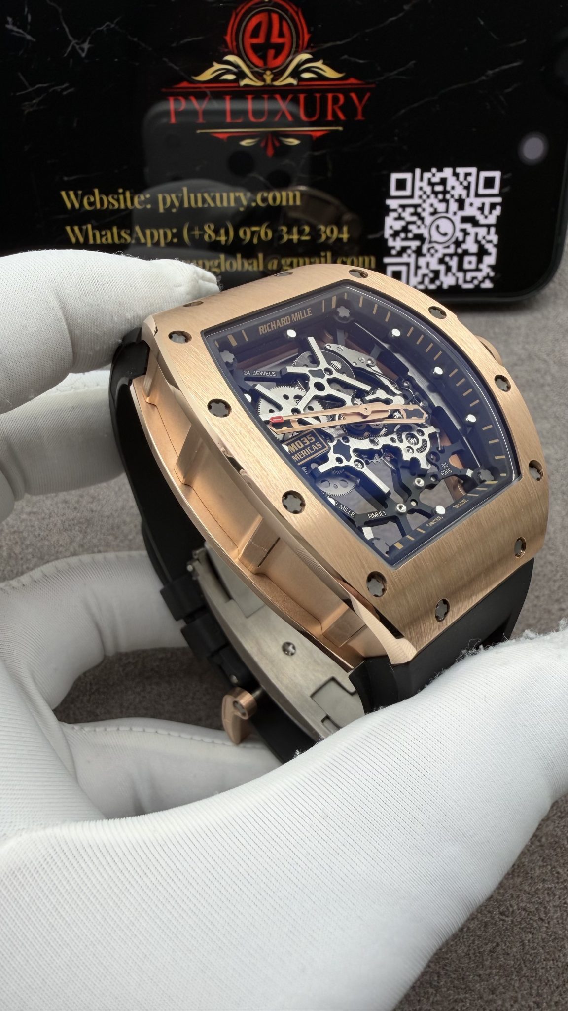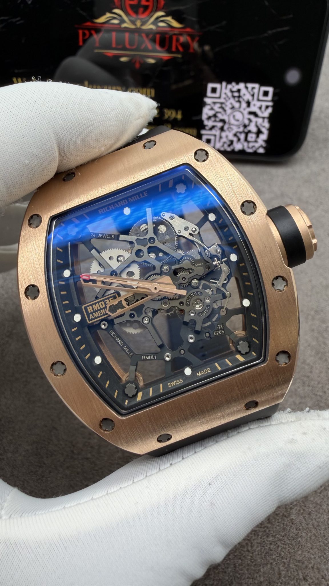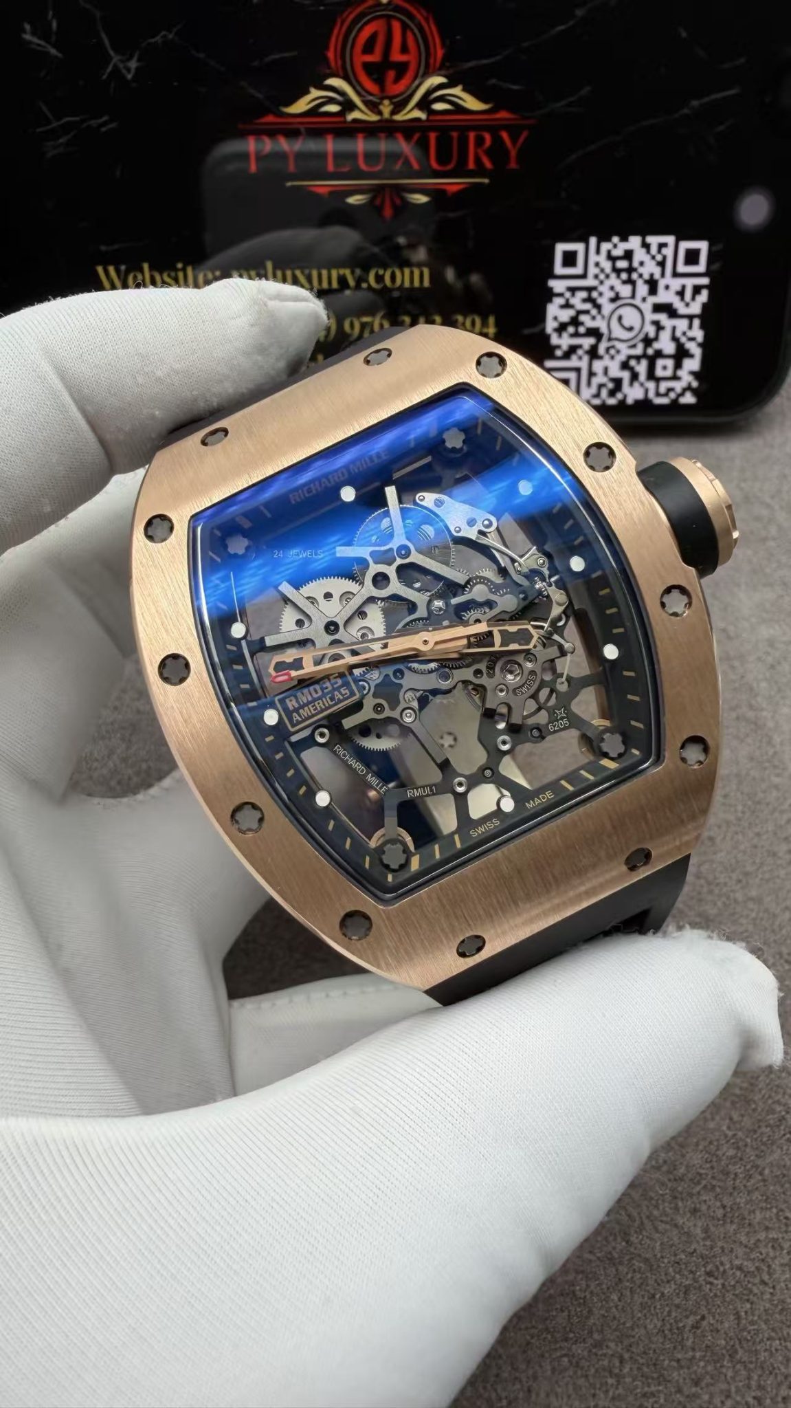 Video of the Richard Mille RM035 Gold Toro Custom Made 18K Solid Gold Vaucher Movement Exclusive Quality 39.7mm x 48mm at Py-Luxury: