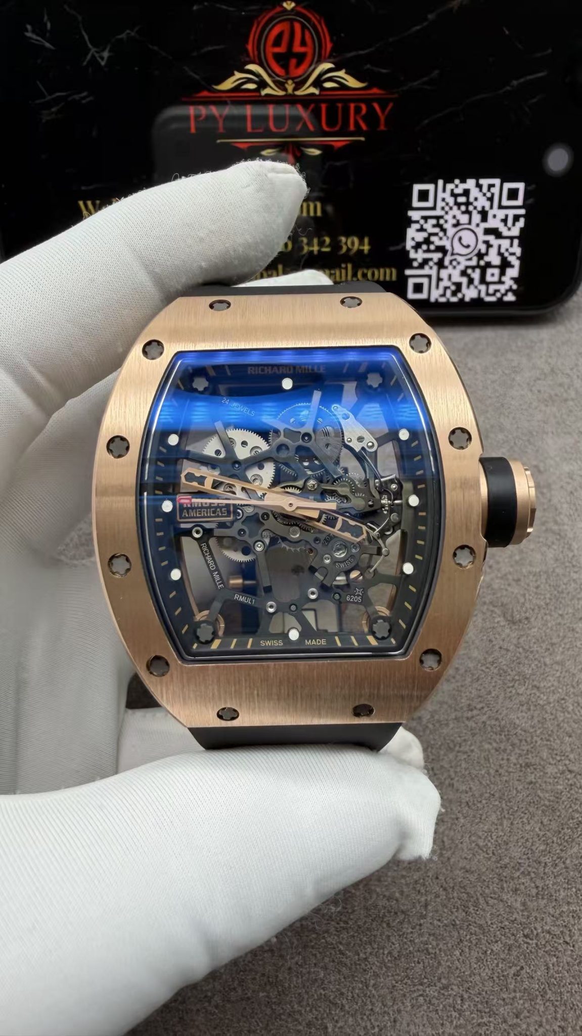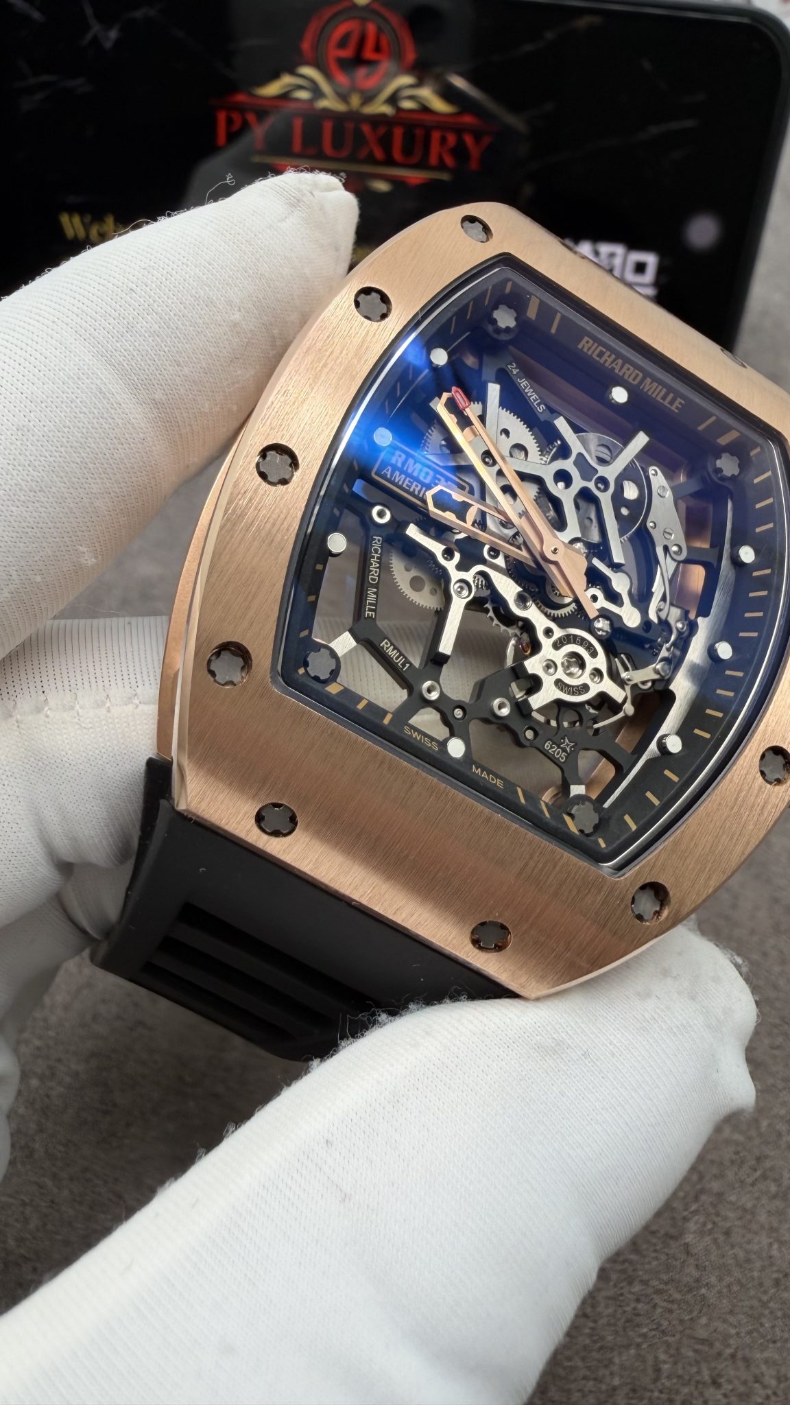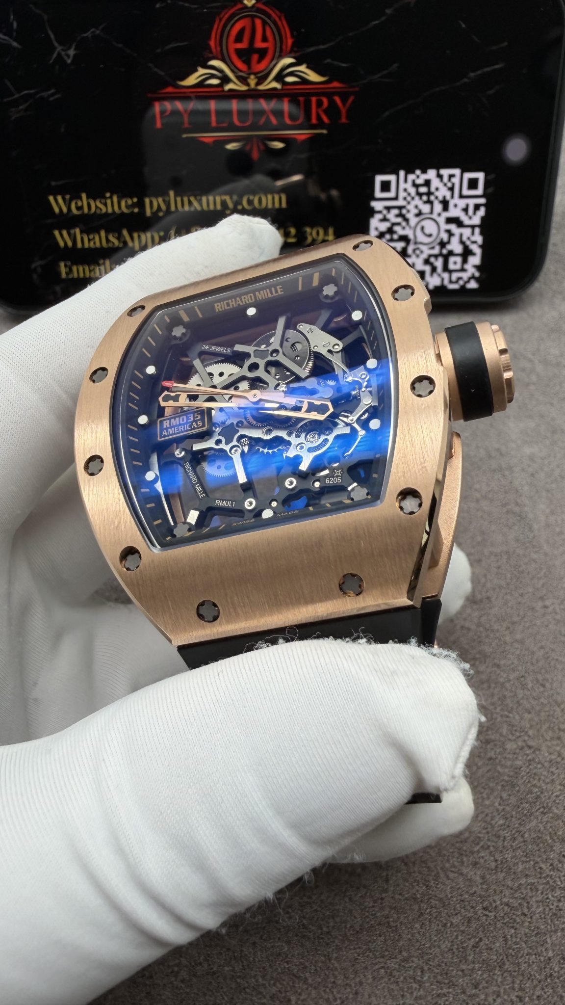 Video of the Richard Mille RM035 Gold Toro Custom Made 18K Solid Gold Vaucher Movement Exclusive Quality 39.7mm x 48mm at Py-Luxury: