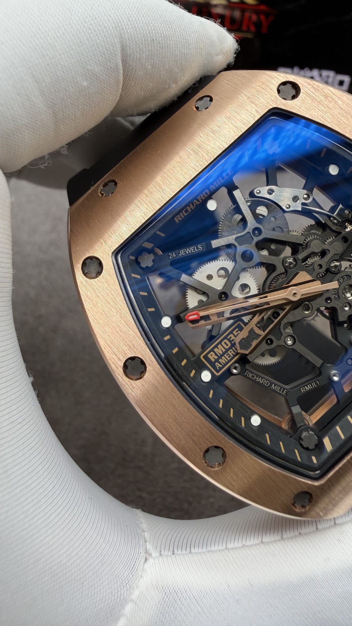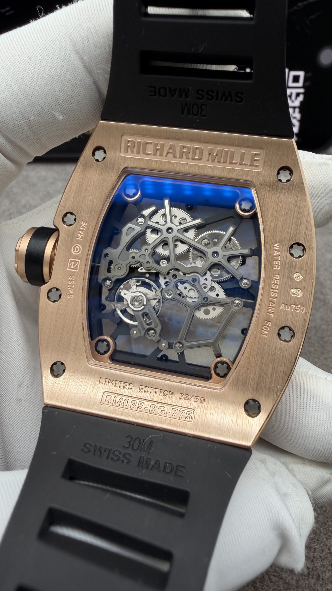 Richard Mille RM035 Gold Toro Custom Made 18K Solid Gold Vaucher Movement Exclusive Quality 39.7mm x 48mm