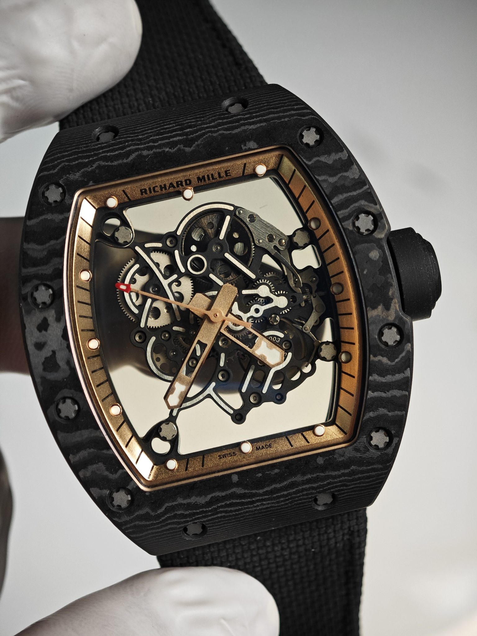 Discover the Richard Mille RM055 Bubba Watson Asia Edition Custom Made, a 1:1 exclusive replica that redefines high-end horology. Designed for those who demand uncompromising craftsmanship and cutting-edge materials, this timepiece seamlessly blends avant-garde aesthetics with technical mastery, embodying the pinnacle of modern watchmaking.