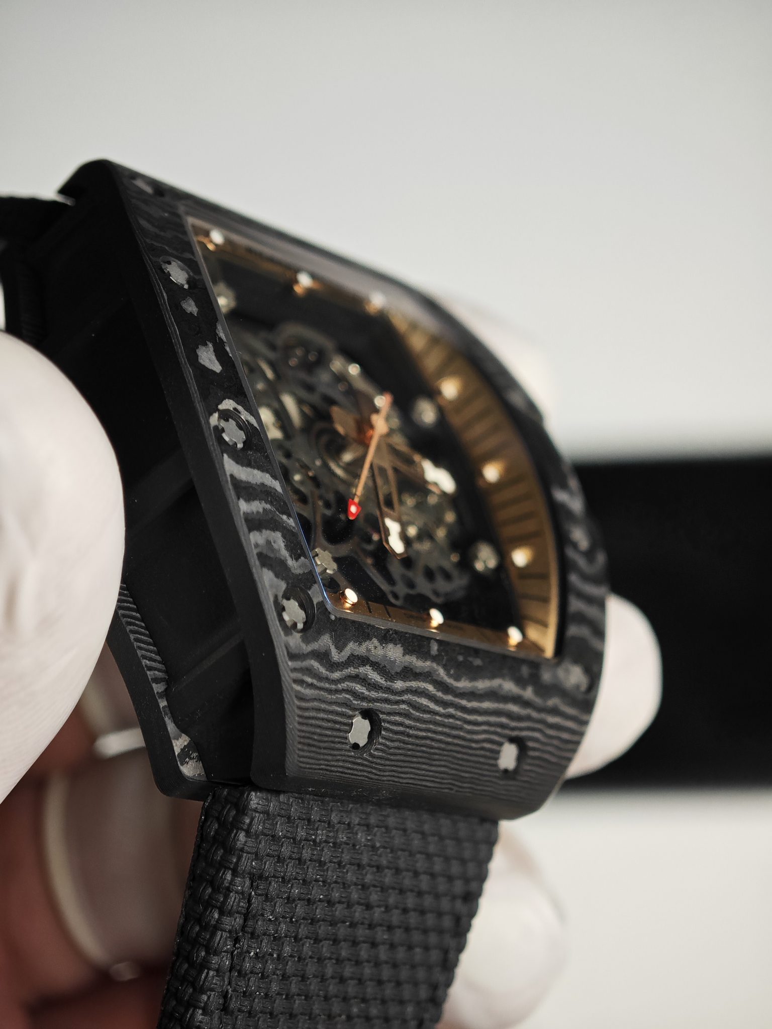 Encased in NTPT (North Thin Ply Technology) carbon fiber, this watch boasts a distinctive layered texture, providing both aerodynamic efficiency and extreme resilience. The ultra-lightweight yet highly robust structure ensures unparalleled shock resistance while exuding a refined, high-tech aesthetic. Designed for those who seek both performance and prestige, this material reinforces the watch’s dynamic and luxurious appeal.