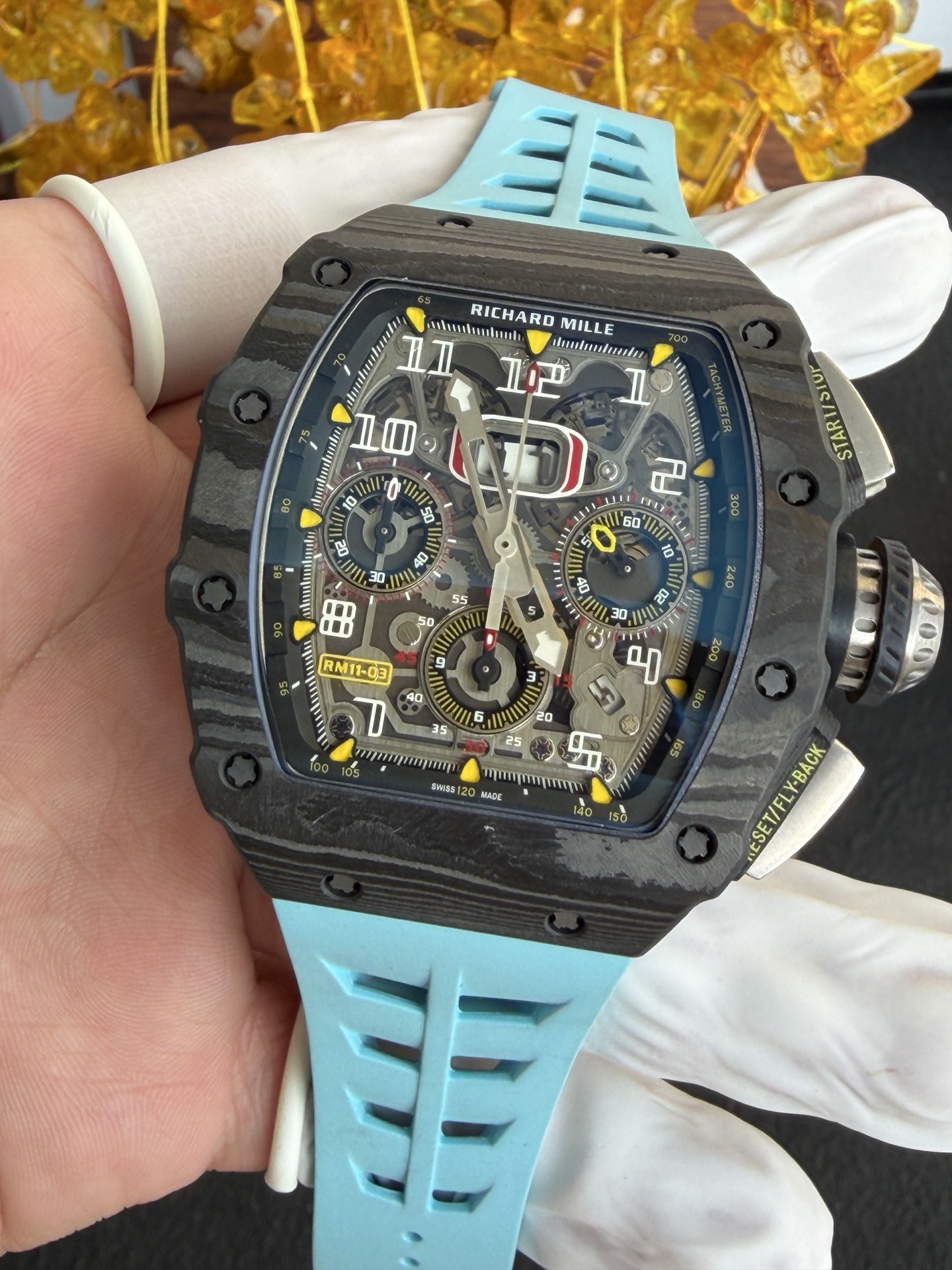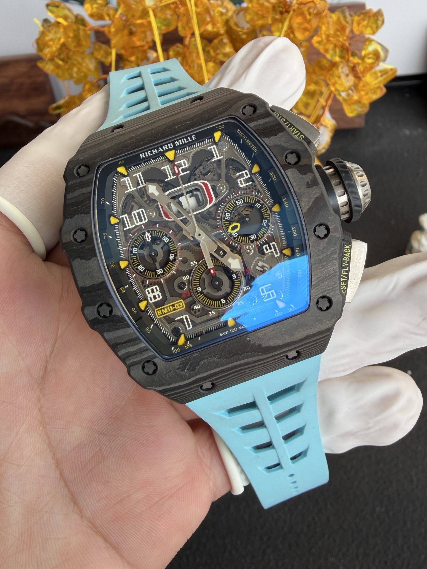 Video of the Richard Mille RM11-03 Black Carbon TPT Automatic Chronograph 1:1 Super Clone 49.94×44.5mm at Py-Luxury:
