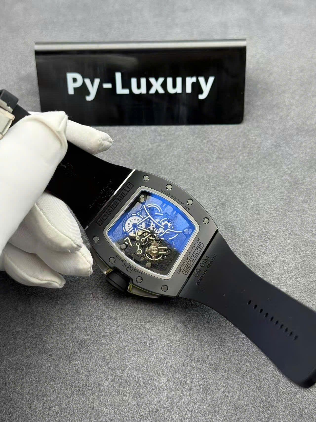 Video of the Richard Mille RM61-01 Yohan Blake All Black 1:1 Custom Made Vaucher Movement Exclusive Quality at Py-Luxury: