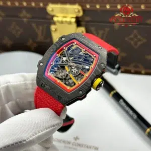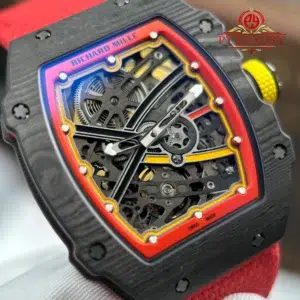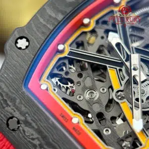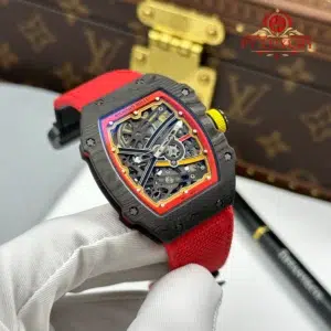 With a case size of 38.7mm x 47.52mm and a thickness of only 7.8mm, the RM67-02 offers an exceptionally lightweight and comfortable feel on the wrist. The black case gives the watch a strong, sporty, and modern appearance, perfect for active individuals.